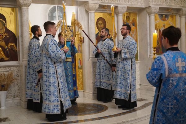 По случаю праздника за богослужением читались ветхозаветные паремии из книг Бытия, пророка Иезекииля и Притчей Соломоновых, прообразующие Пресвятую Богородицу. На литии освящались хлебы, пшеница, вино и елей.