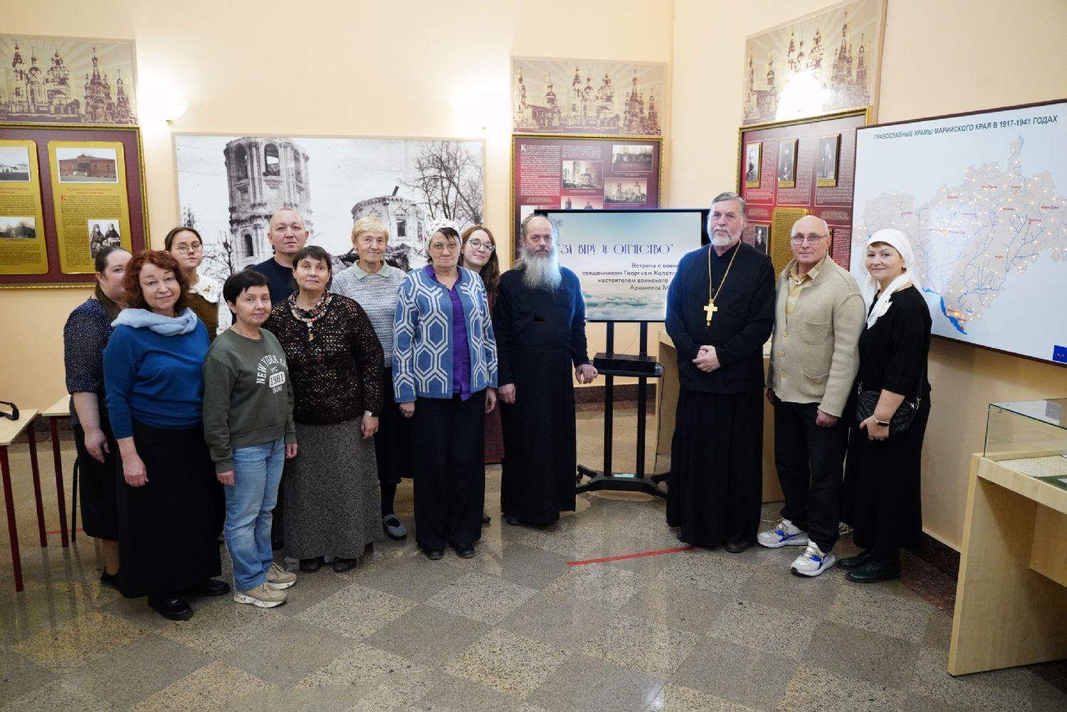 "За веру и Отечество!" — под таким девизом 4 ноября в рамках культурной акции "Ночь искусств" в Музее истории Православия г. Йошкар-Олы прошла встреча с военным священником, настоятелем воинского храма Архангела Михаила иереем Георгием Колотовым.