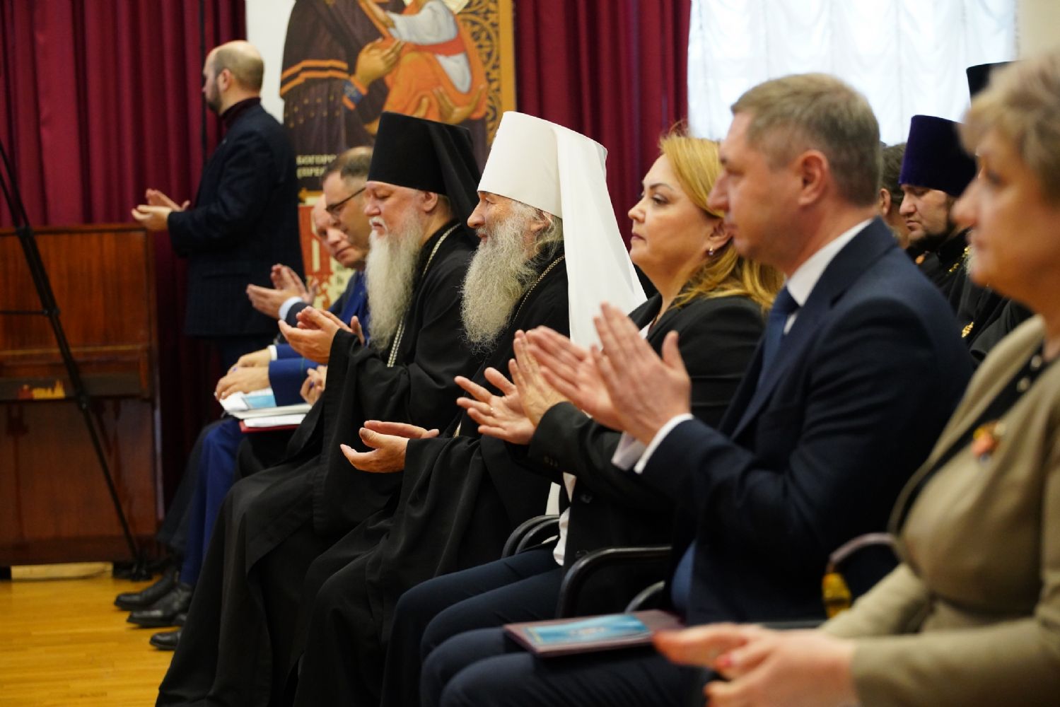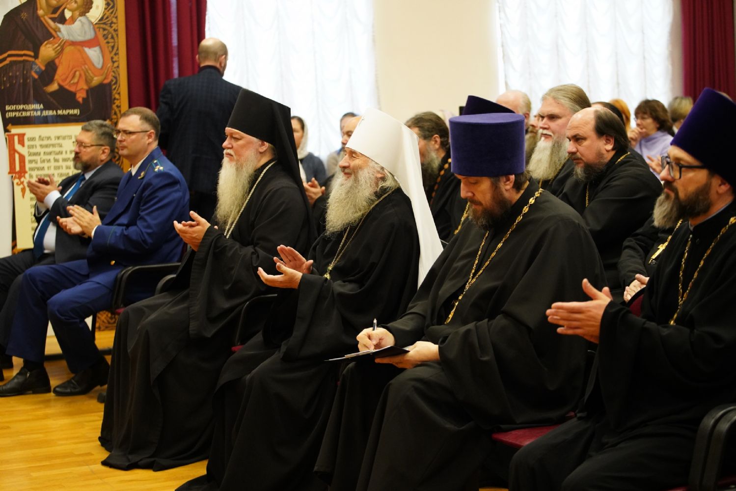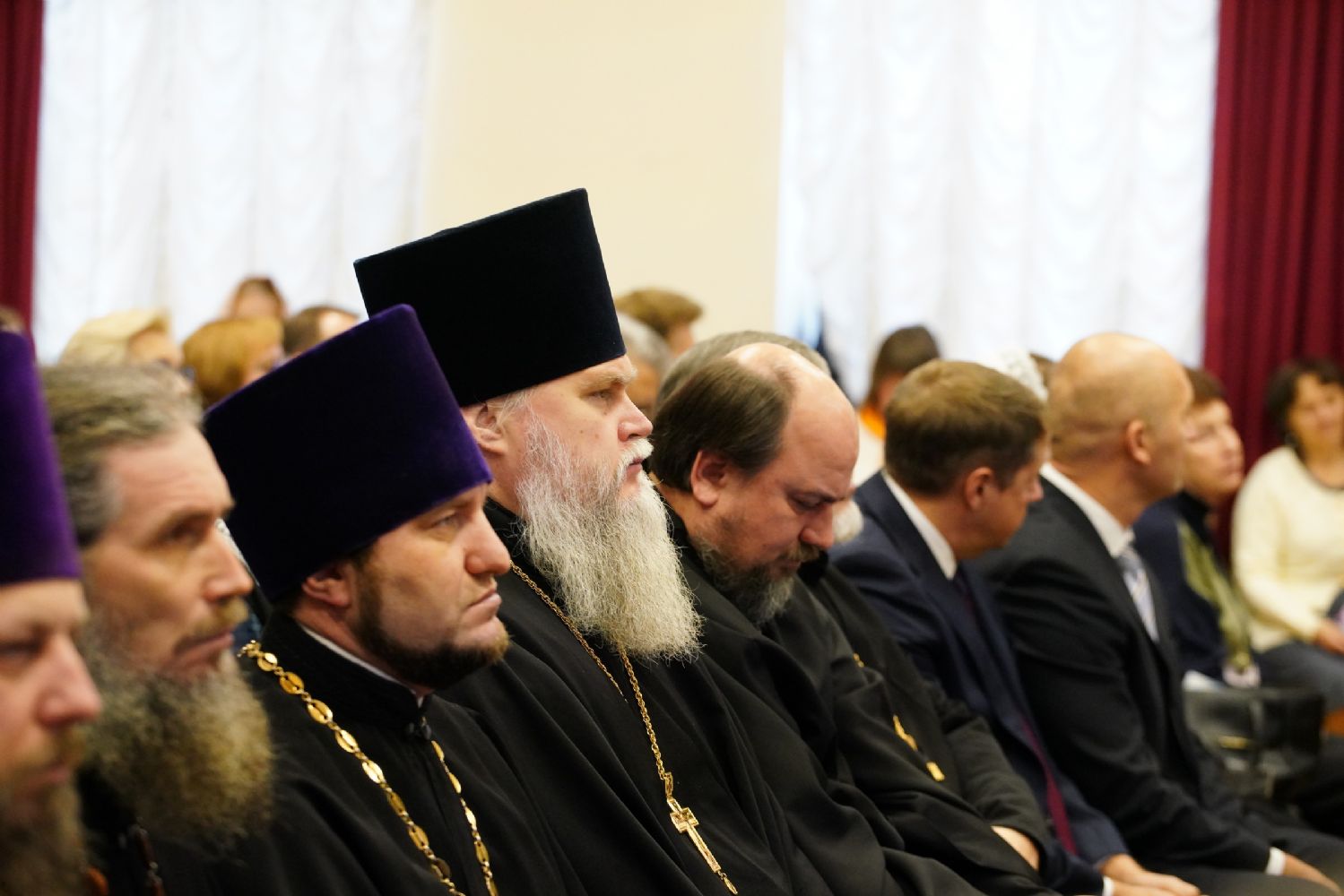 Участие в пленарном заседании приняли митрополит Йошкар-Олинский и Марийский Иоанн, епископ Волжский и Сернурский Феофан, Глава Марий Эл Юрий Зайцев, Председатель Госсобрания РМЭ Михаил Васютин, представители органов государственной власти, воинских подразделений, священнослужители Йошкар-Олинской и Волжской епархий, сотрудники епархиальных структур, работники культуры, педагоги и студенты.