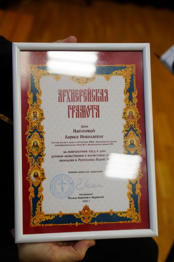 Также владыка Иоанн вручил дипломы победителям регионального этапа Всероссийского конкурса «За нравственный подвиг учителя».