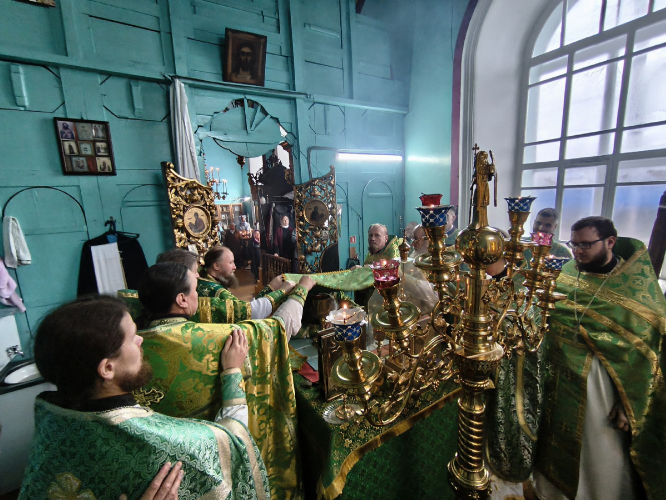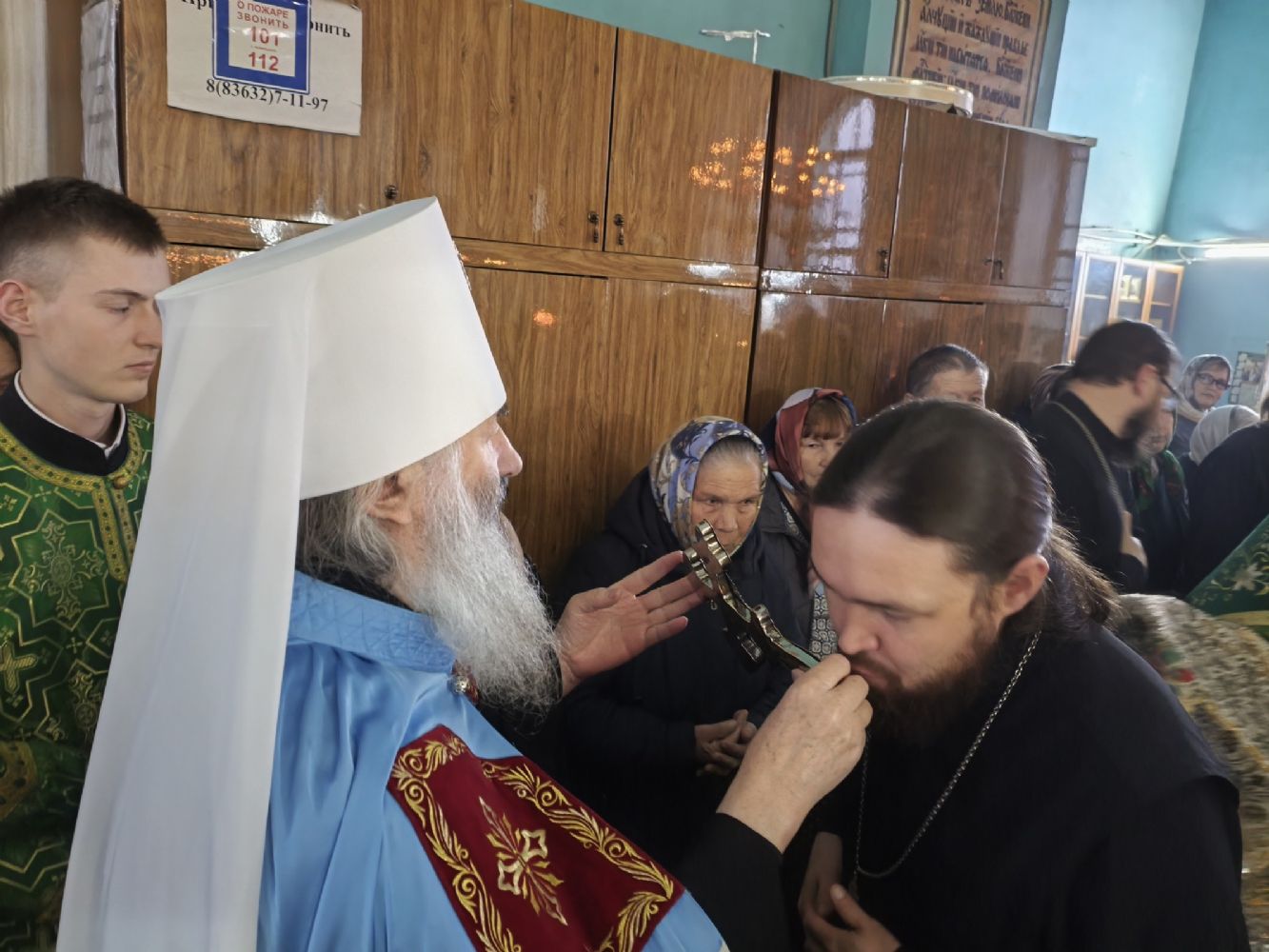 Архипастырю сослужили настоятель храма иерей Алексий Васюткин, духовенство Козьмодемьянского и Горномарийского благочиний, а также протодиакон Михаил Козловский. Песнопения исполнял хор храма.