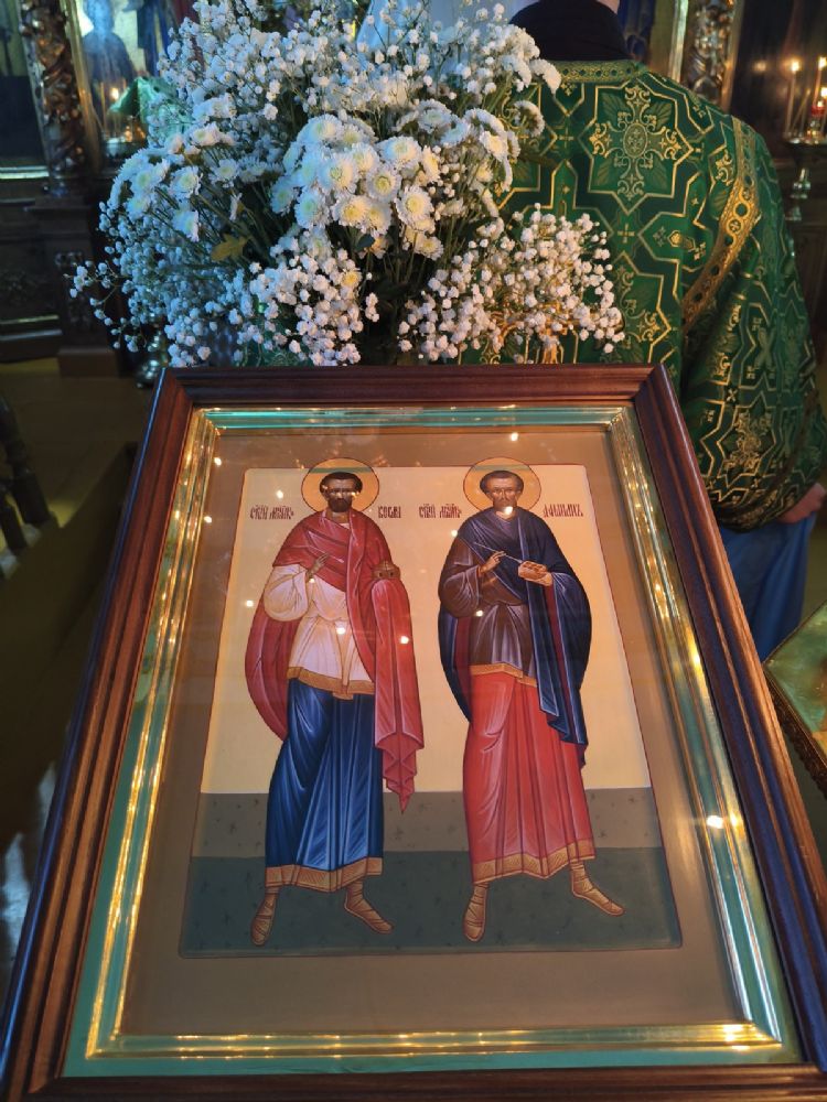 После Литургии был отслужен молебен святым Косме и Дамиану, затем владыка Иоанн обратился к верующим с проповедью, поздравив всех с престольным праздником и напомнив житие празднуемых братьев-бессребреников.
