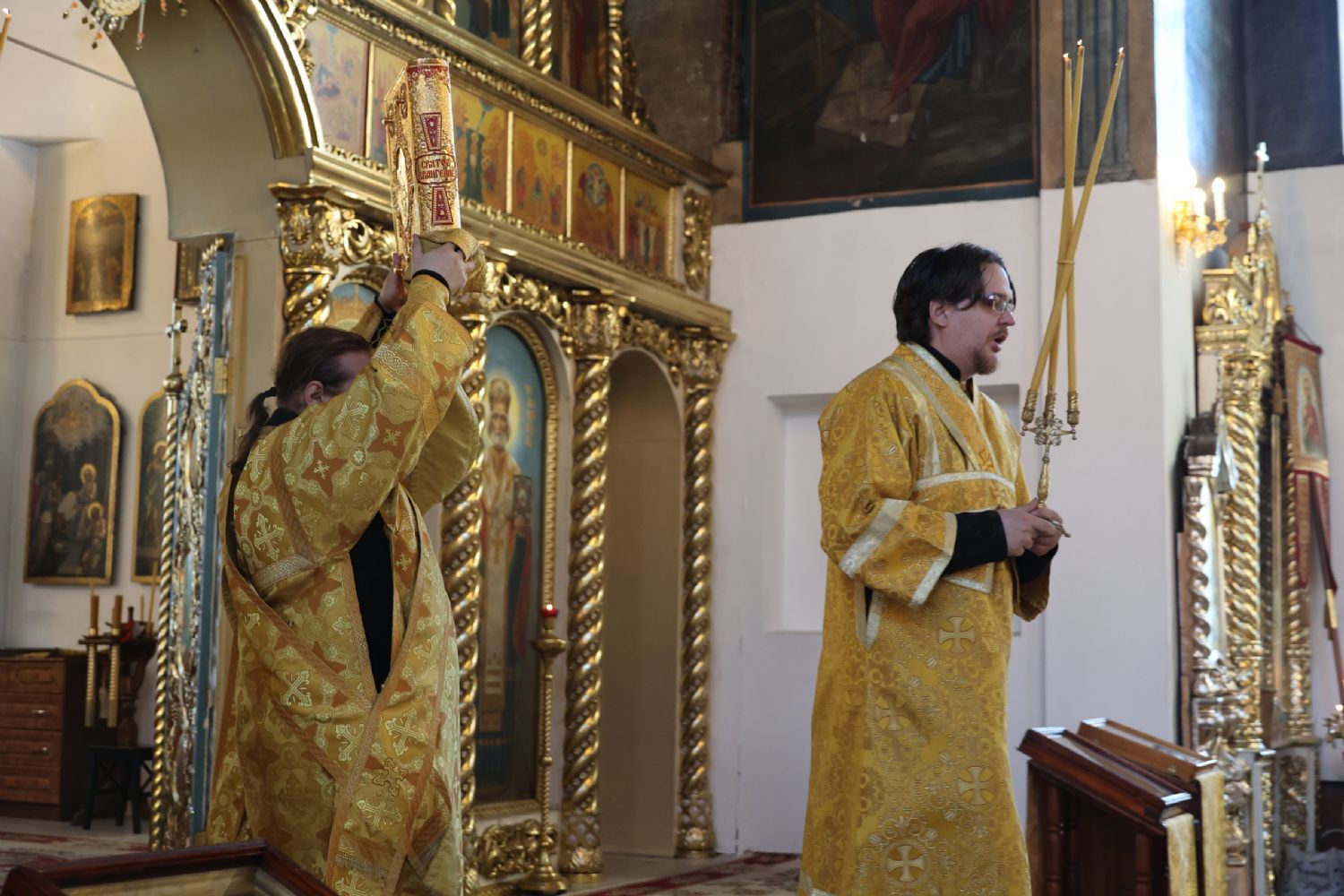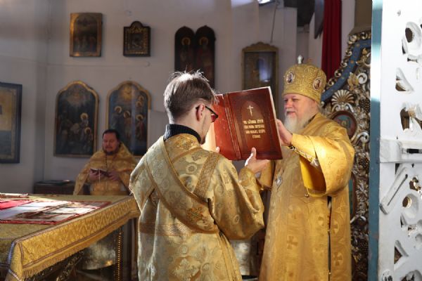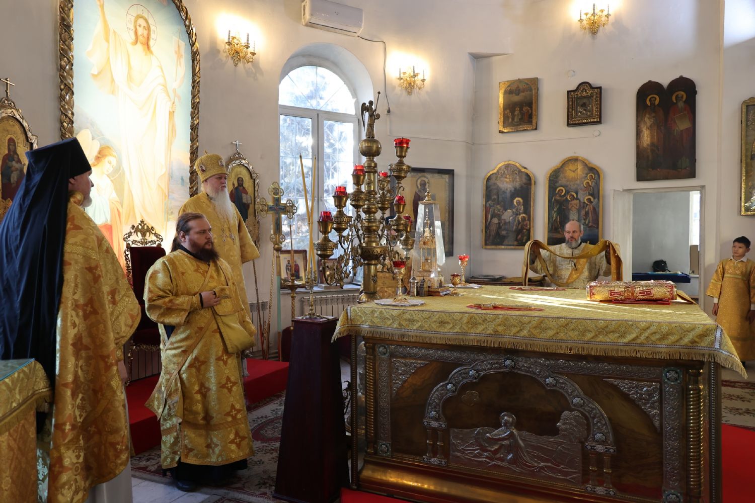 Архипастырю сослужили клирики собора иерей Николай Аникин, иеромонах Александр (Чеборов), диакон Иоанн Захаров, диакон Александр Викторов и иеродиакон Питирим (Мосякин). Песнопения исполнял народный хор под управлением Евгения Чигарова.