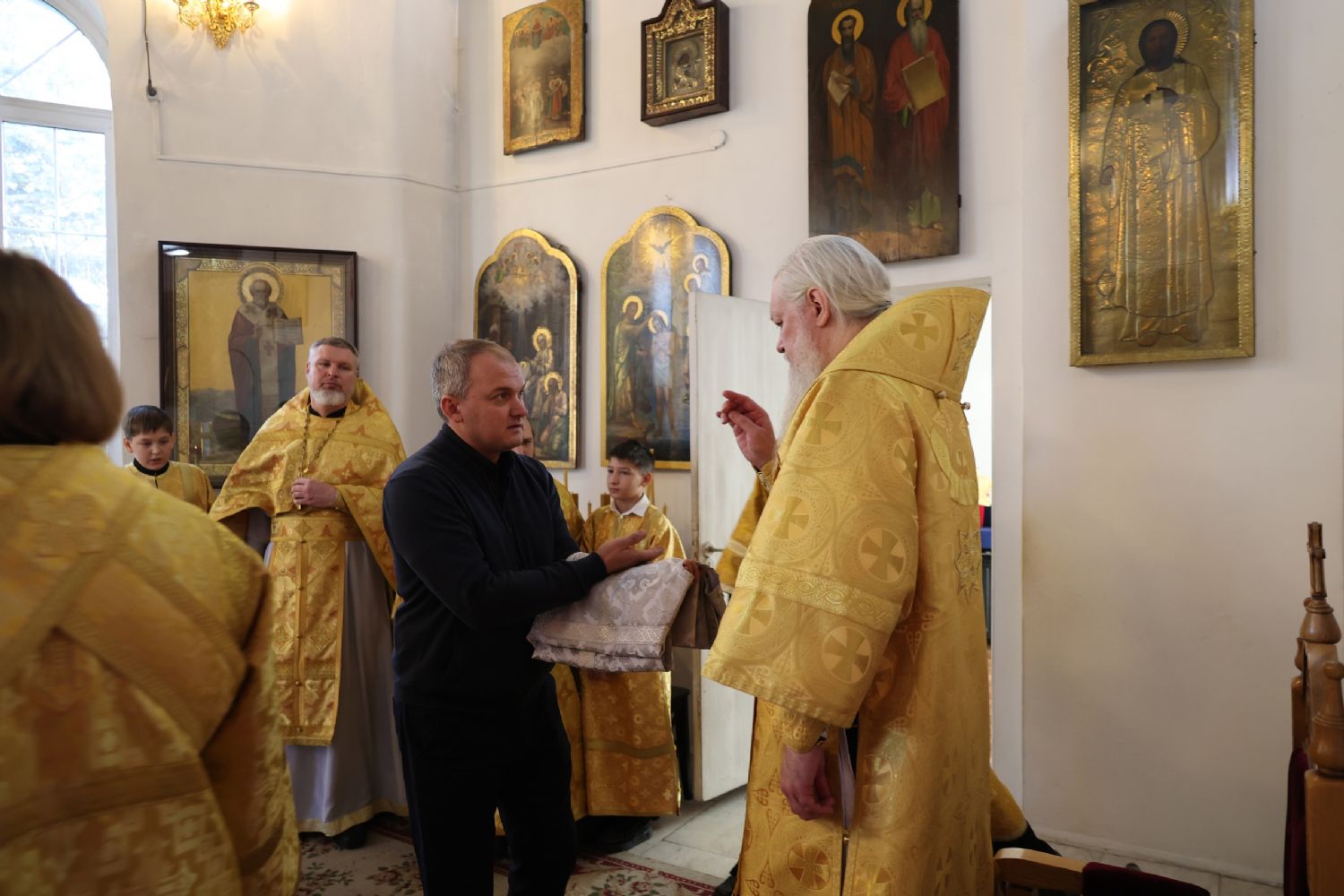 В завершение епископ Феофан обратился к верующим с архипастырским словом, напомнив, что 16 ноября Церковь воспоминает Обновление храма в честь святого великомученика и победоносца Георгия в городе Лидде на Святой Земле. Владыка рассказал о житии великомученика Георгия, его твердой вере в Господа.