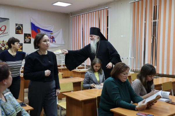 В рамках круглого стола обсуждались вопросы планирования совместной работы между епархиальным отделом религиозного образования и катехизации и педагогическим коллективом данного учебного заведения.