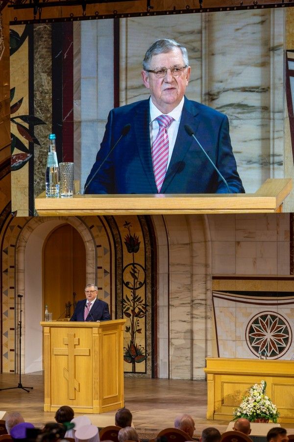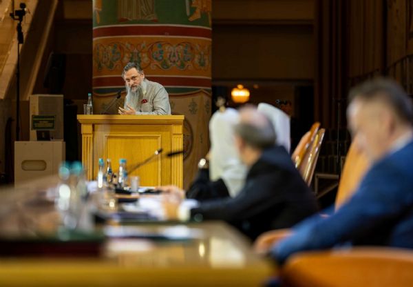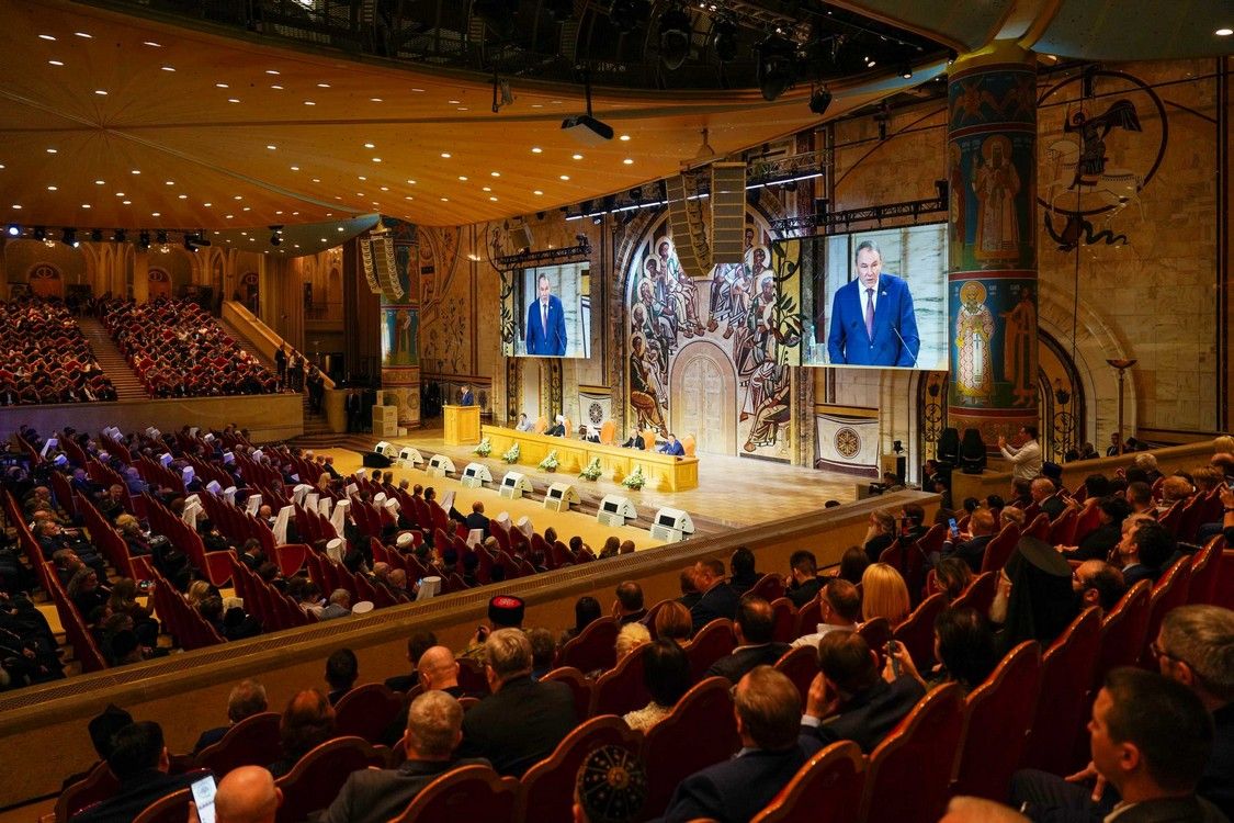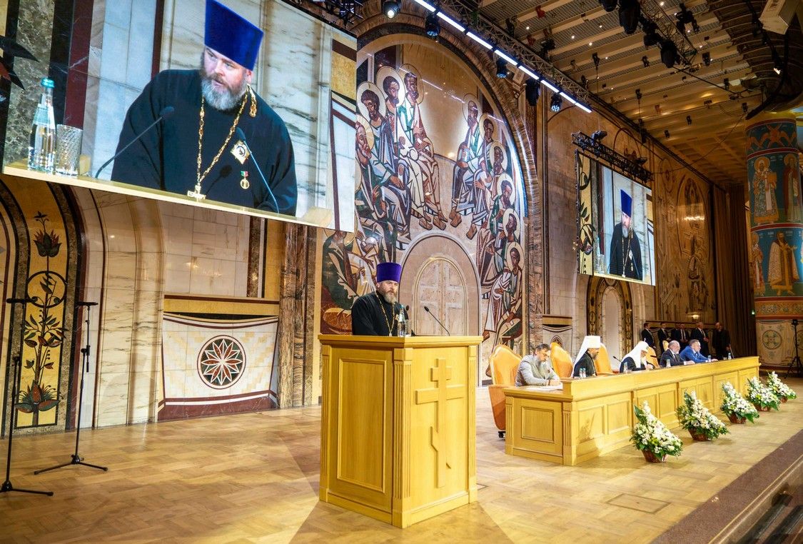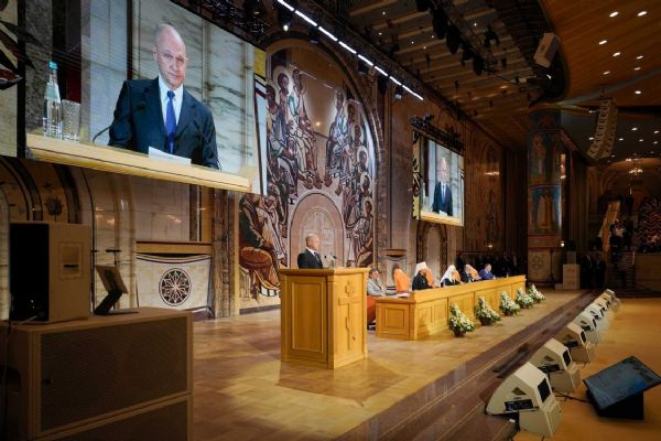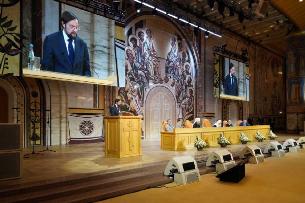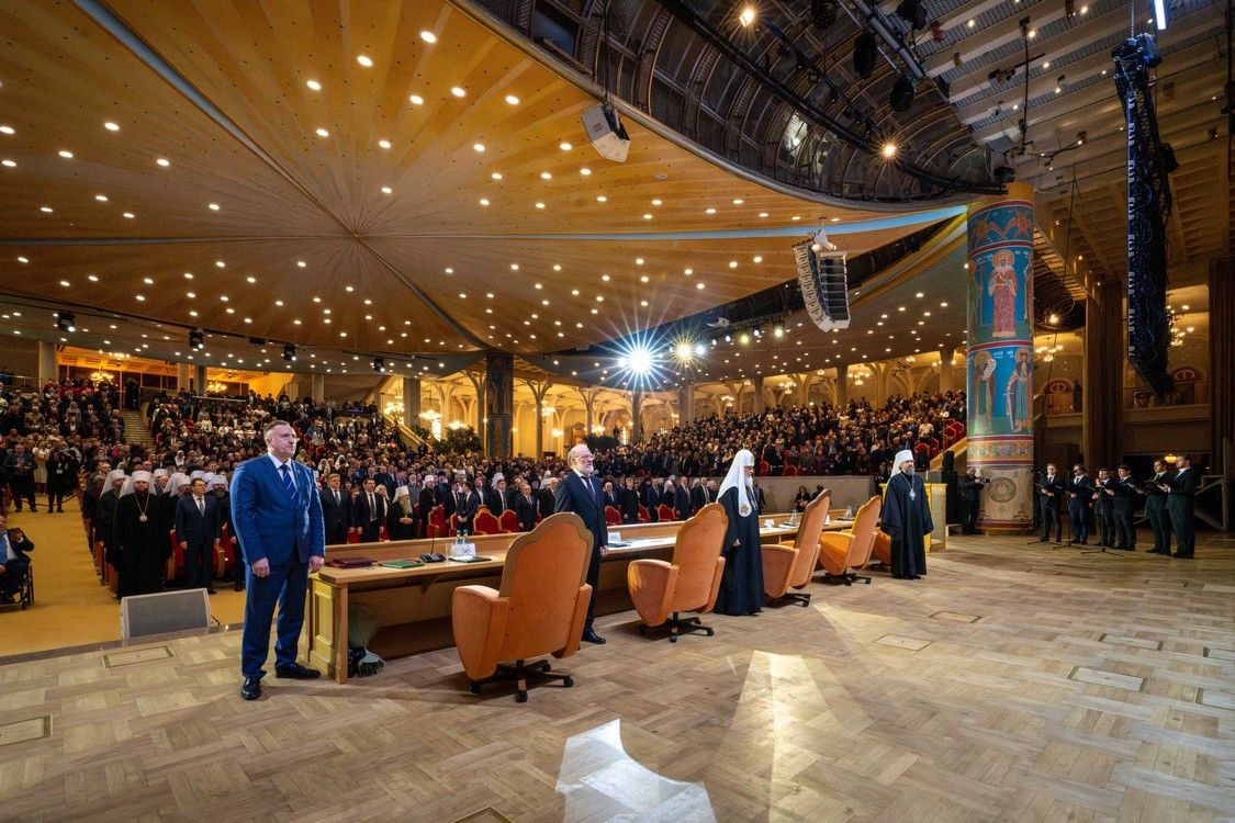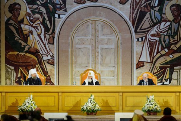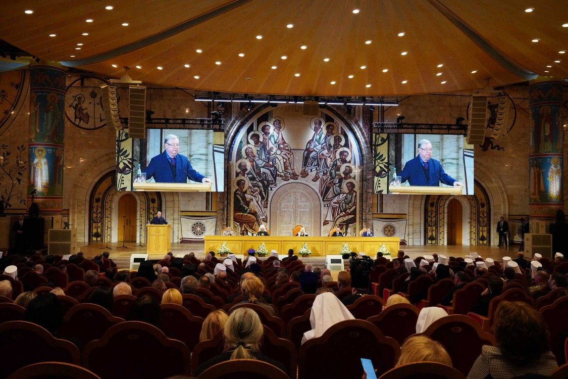 Предстоятель Русской Православной Церкви выступил с основным докладом.