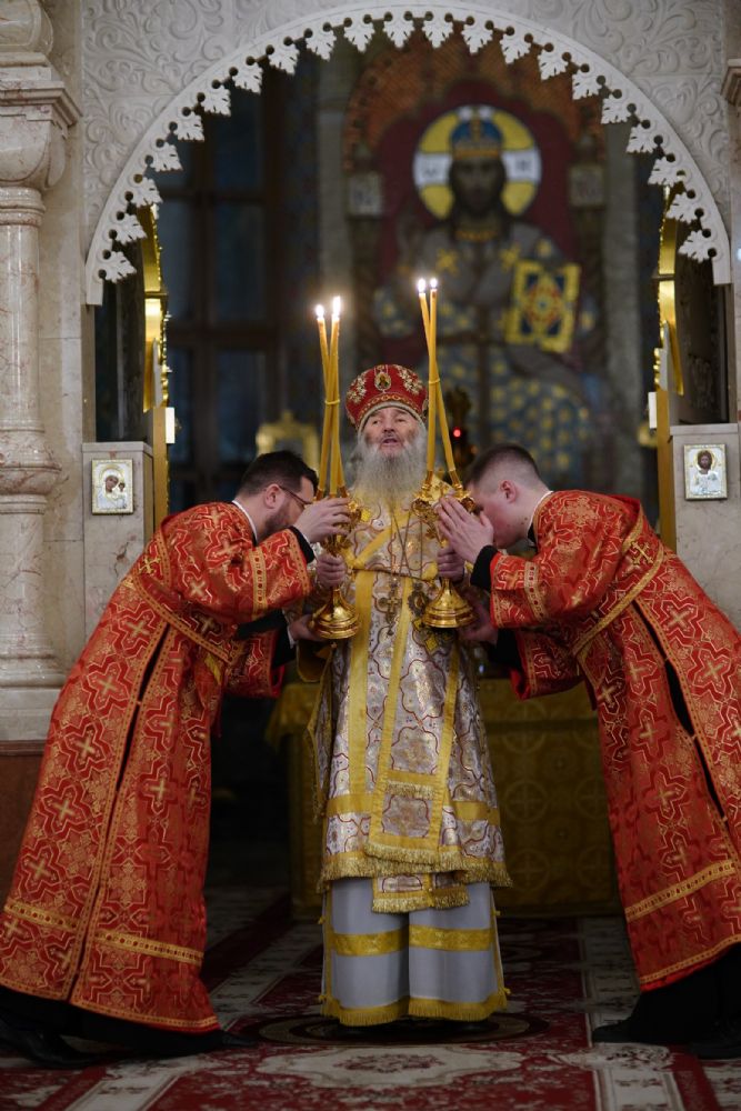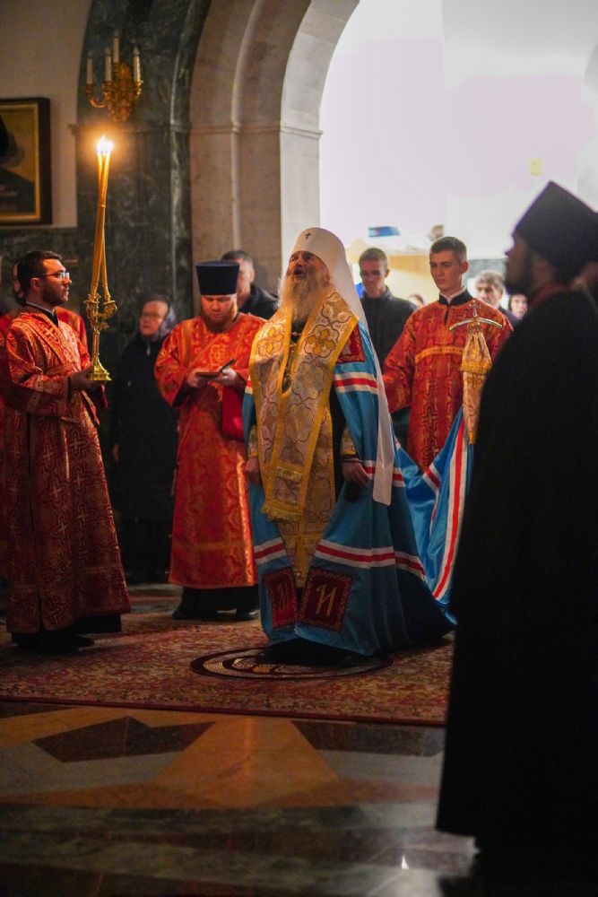 Всенощное бдение в канун праздника Собора Архистратига Божия Михаила в Благовещенском кафедральном соборе возглавил митрополит Йошкар-Олинский и Марийский Иоанн. Владыке сослужили секретарь Йошкар-Олинского епархиального управления иерей Димитрий Дьяков, ключарь кафедрального собора протоиерей Сергий Поглазов, клирики собора и руководитель молодежного отдела Йошкар-Олинской епархии иерей Никита Иванов.
