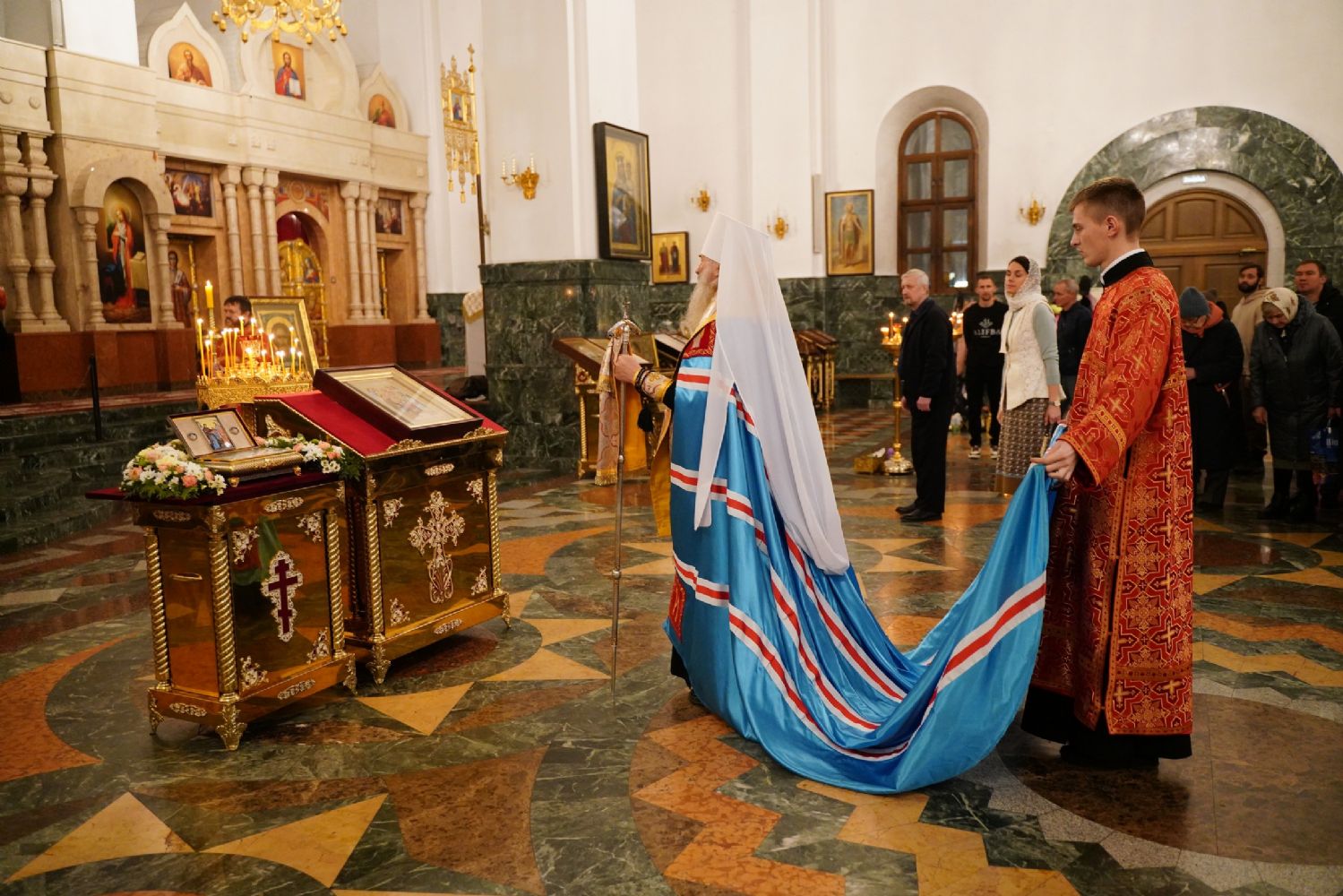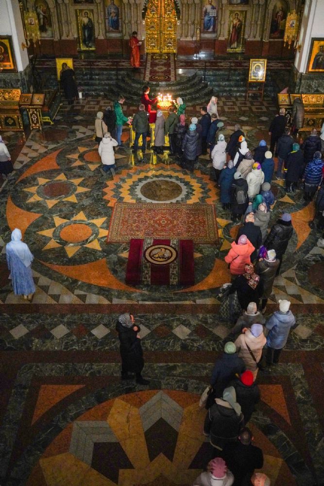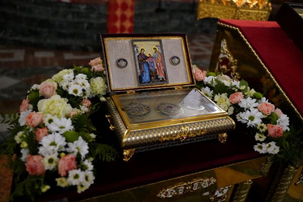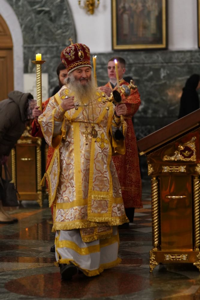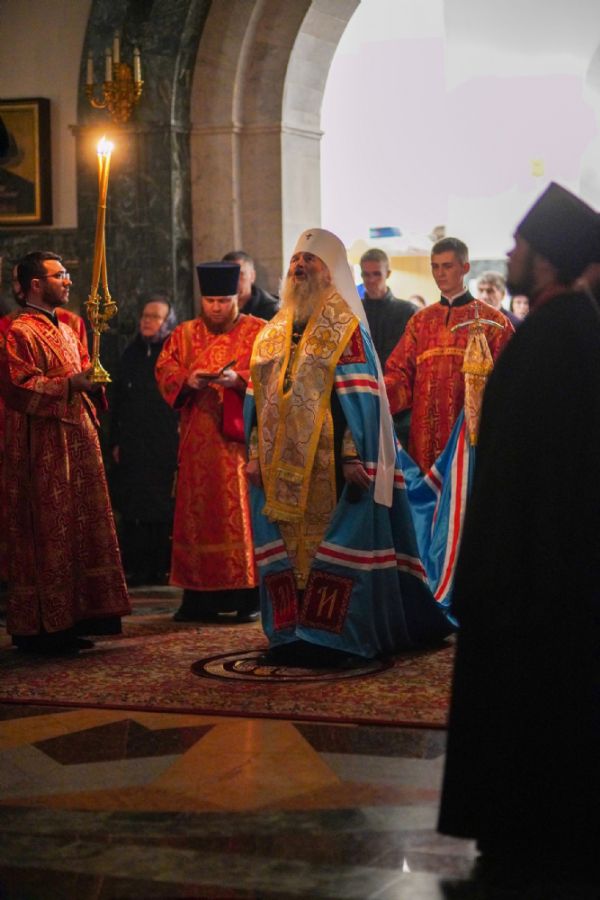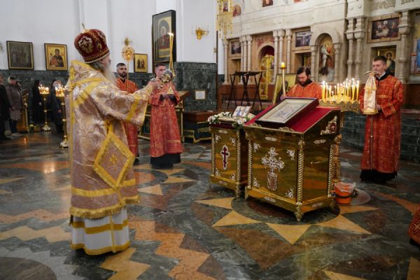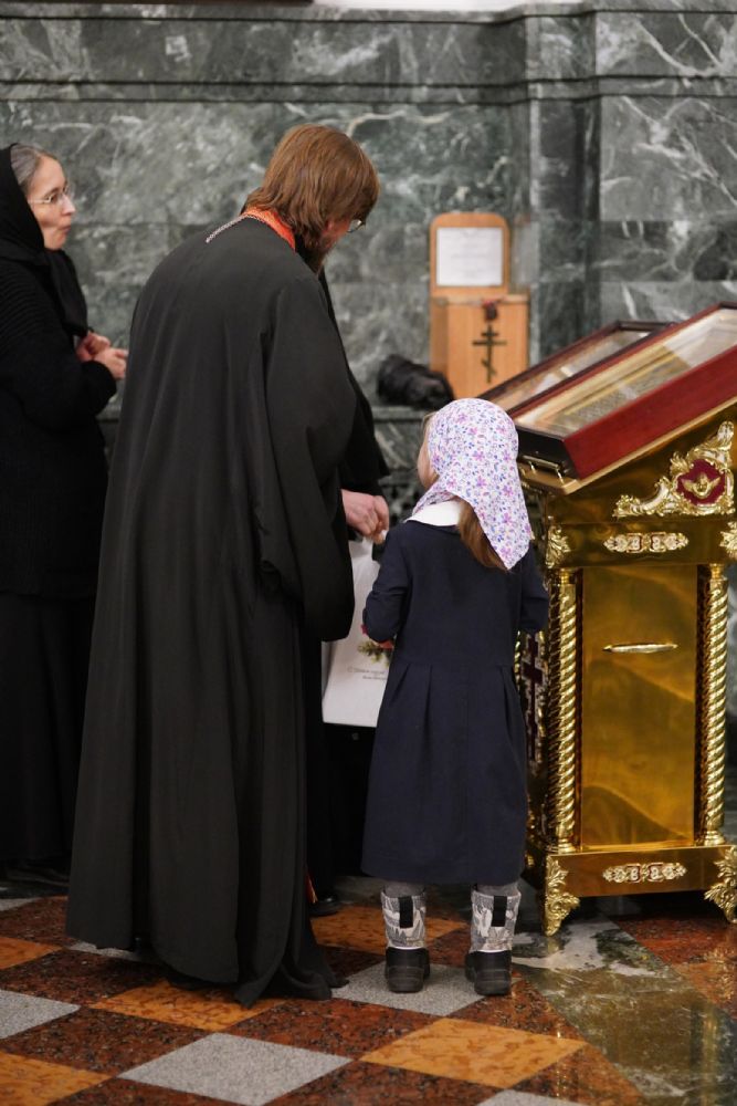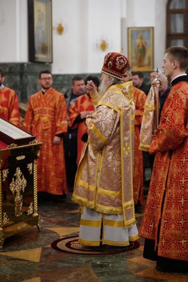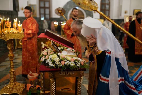 Во время литии, на которой освящались хлебы, пшеница, вино и елей, священство и прихожане во главе с митрополитом Иоанном вышли из собора встречать ковчег со святынями, прибывший спецрейсом в Йошкар-Олу. Ковчег был установлен в центре храма для поклонения верующим, после чего всенощное бдение продолжилось своим чередом.