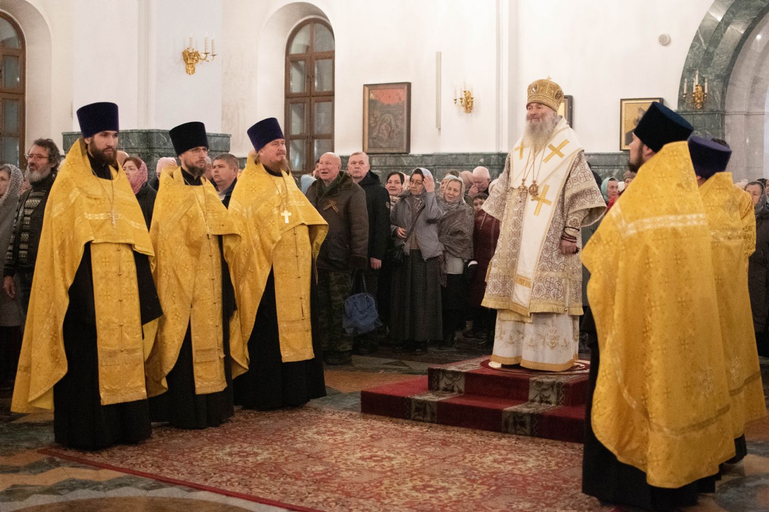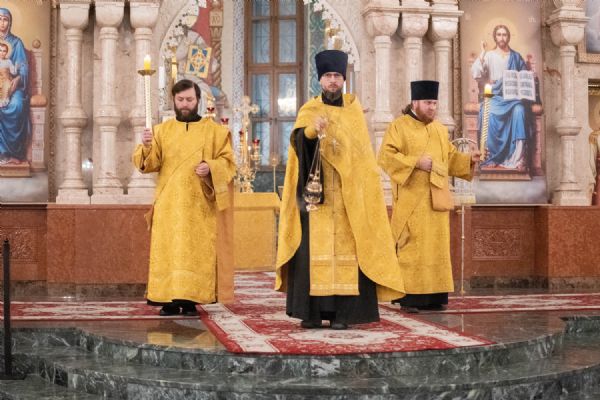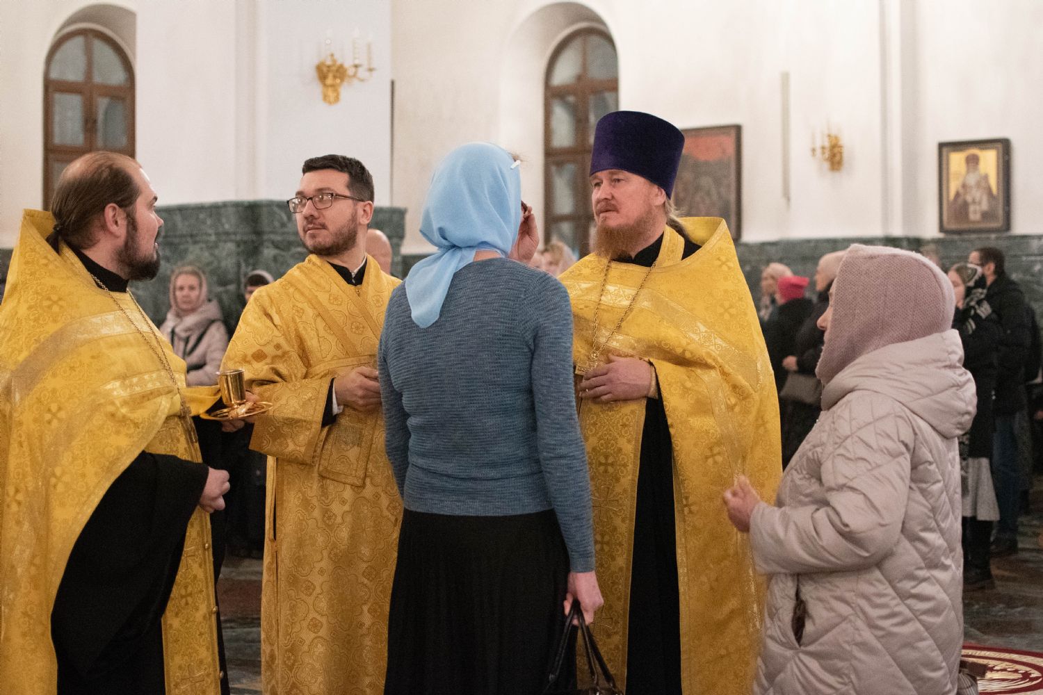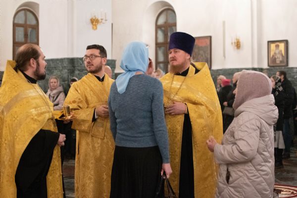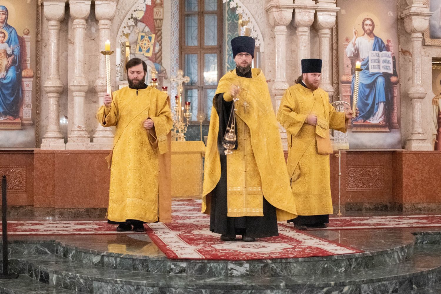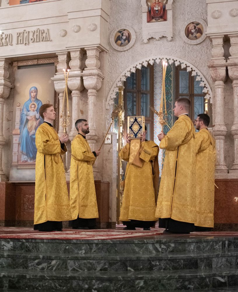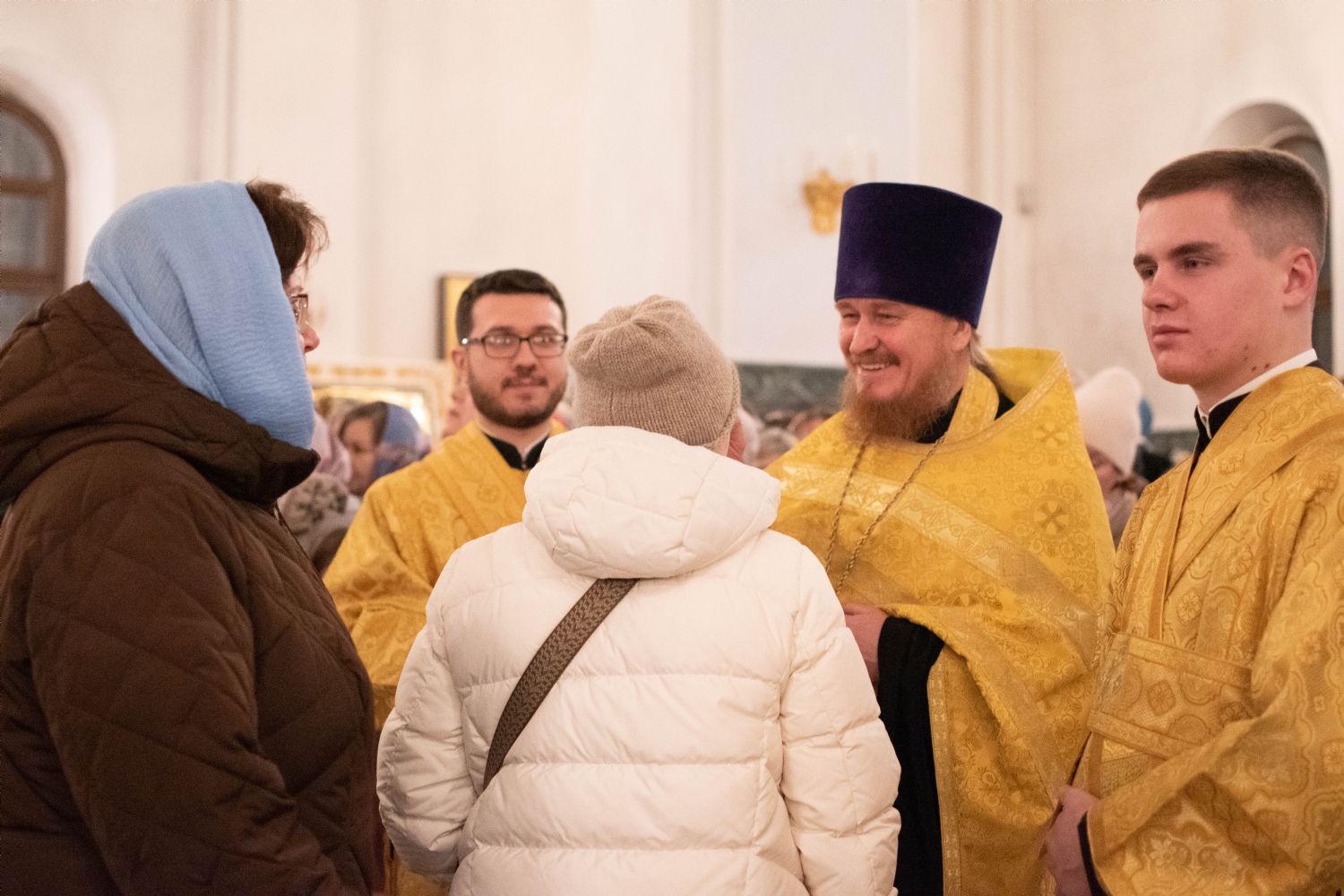 Владыке сослужили ключарь собора протоиерей Сергий Поглазов, клирики собора клирики собора иереи Никифор Захаров, Евгений Самойлов, Александр Староверов, Иоанн Милютин, диаконы Андрей Дружинин и Артемий Бобоч. Песнопения исполняли старший и младший составы архиерейского детско-юношеского хора «Благовест» под управлением регентов Татьяны Черновой и Надежды Поздеевой.