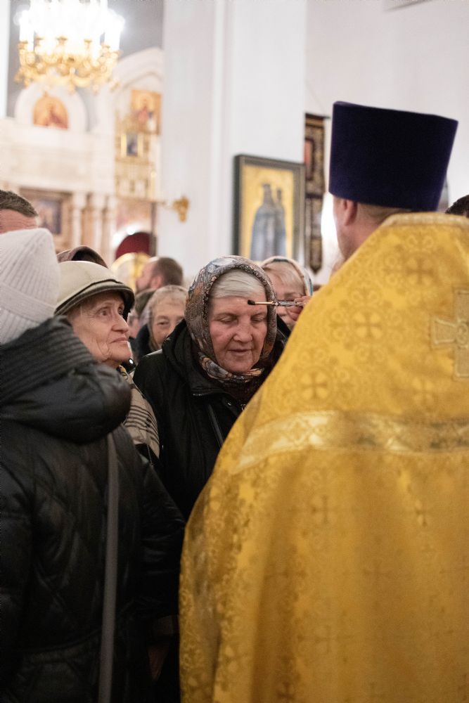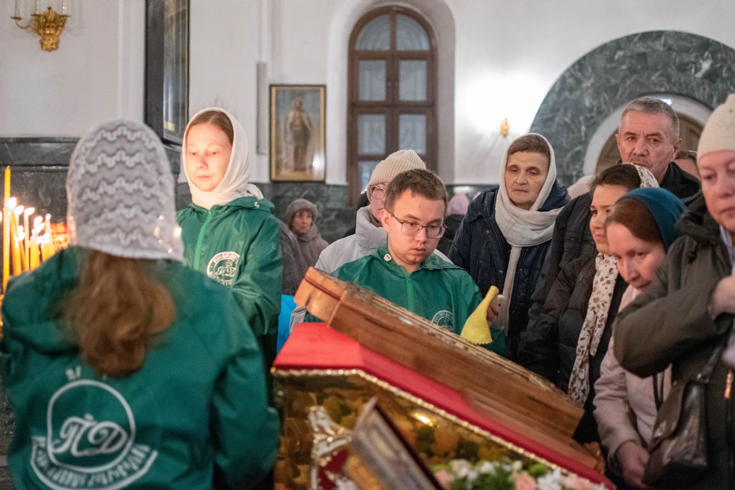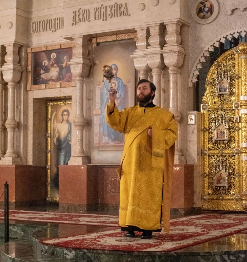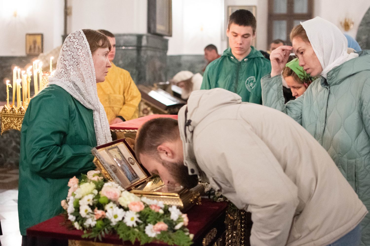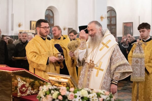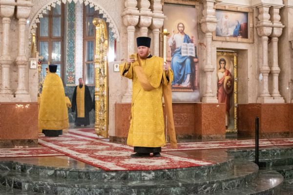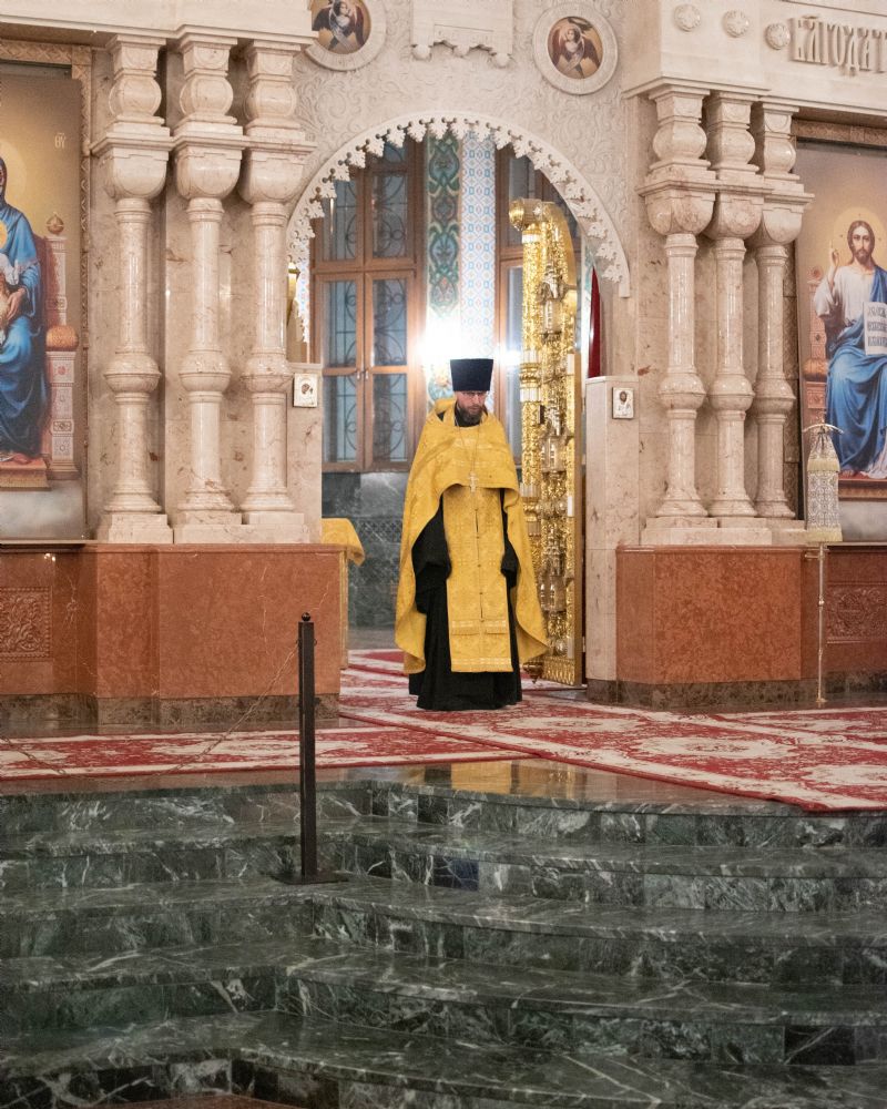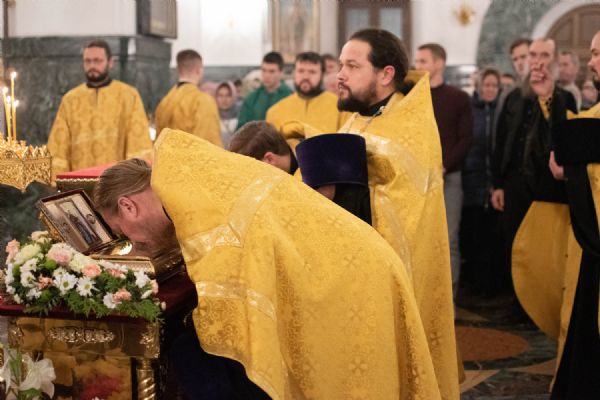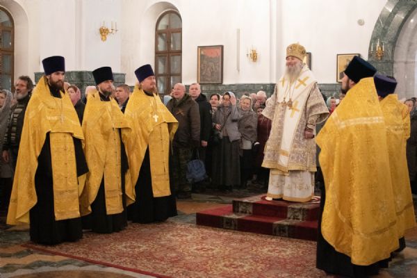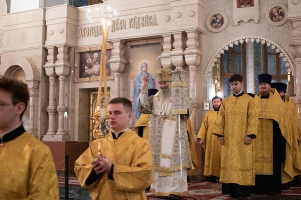 Владыке сослужили ключарь собора протоиерей Сергий Поглазов, клирики собора клирики собора иереи Никифор Захаров, Евгений Самойлов, Александр Староверов, Иоанн Милютин, диаконы Андрей Дружинин и Артемий Бобоч. Песнопения исполняли старший и младший составы архиерейского детско-юношеского хора «Благовест» под управлением регентов Татьяны Черновой и Надежды Поздеевой.