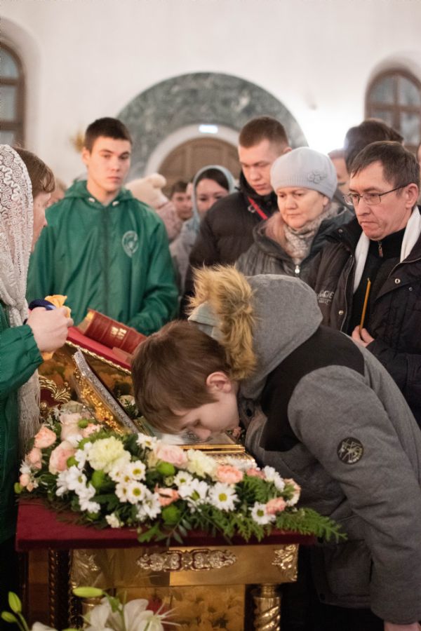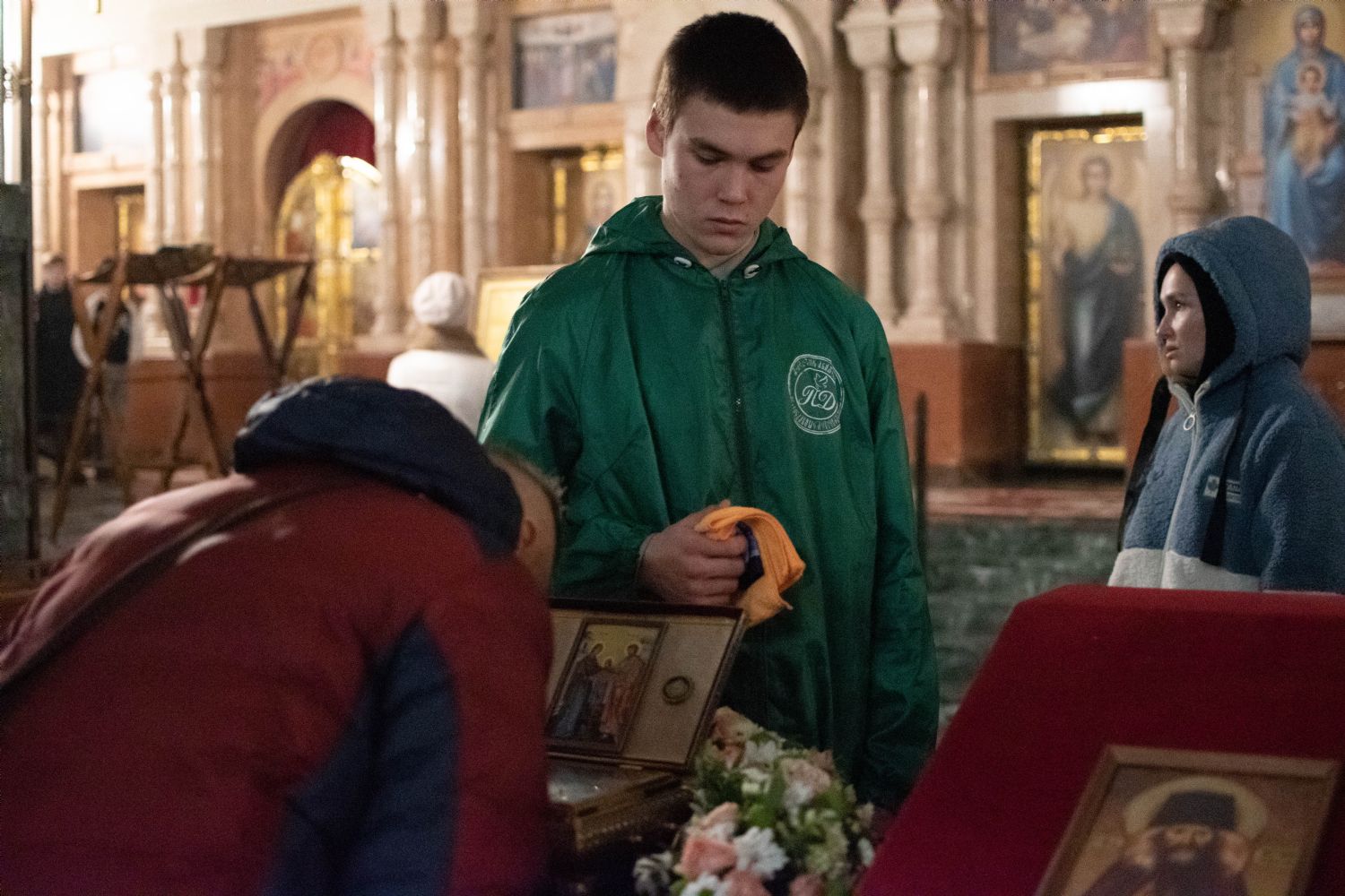 22 ноября вечером, в канун Недели 24-й по Пятидесятнице, дня памяти преподобного Матфея Яранского, митрополит Йошкар-Олинский и Марийский Иоанн возглавил всенощное бдение в Благовещенском кафедральном соборе. В это время в соборе пребывал ковчег с частью пояса Пресвятой Богородицы, а также частицами мощей Ее святых родителей Иоакима и Анны.