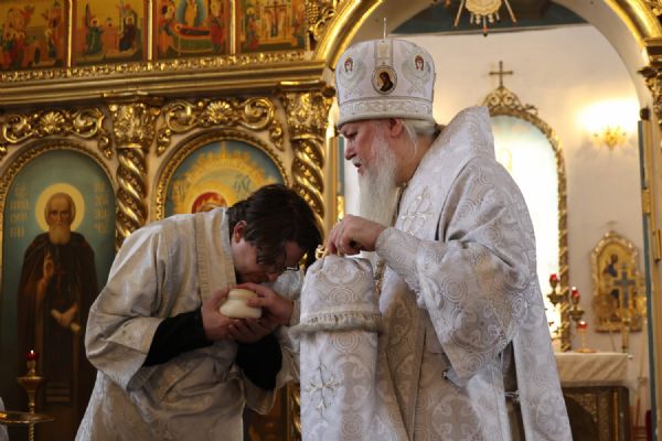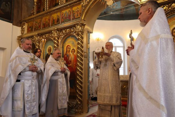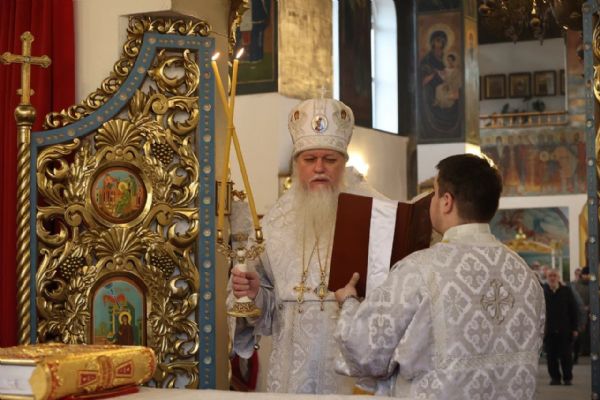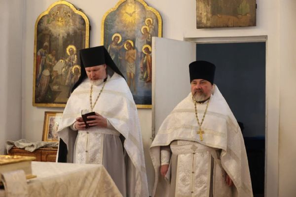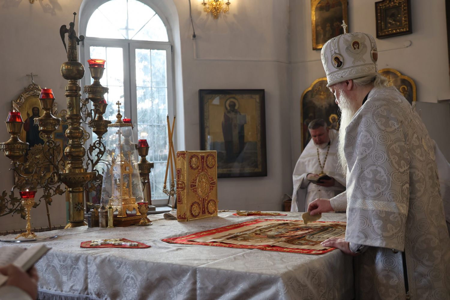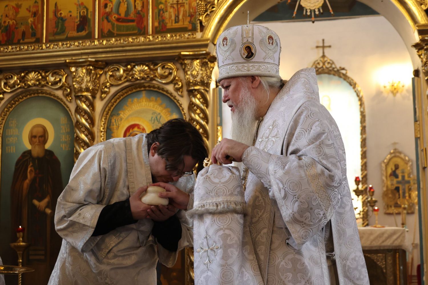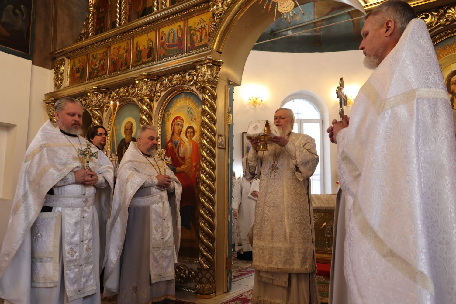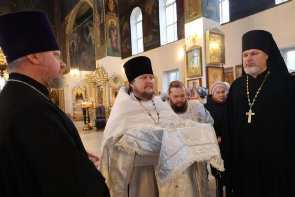 Его Преосвященству сослужили клирики собора протоиерей Виталий Михеев, иерей Николай Аникин, иерей Сергий Першаков, иеромонах Александр (Чеборов), диакон Иоанн Захаров, диакон Александр Викторов и иеродиакон Питирим (Мосякин). Песнопения исполнял хор под управлением Елены Васильевой.