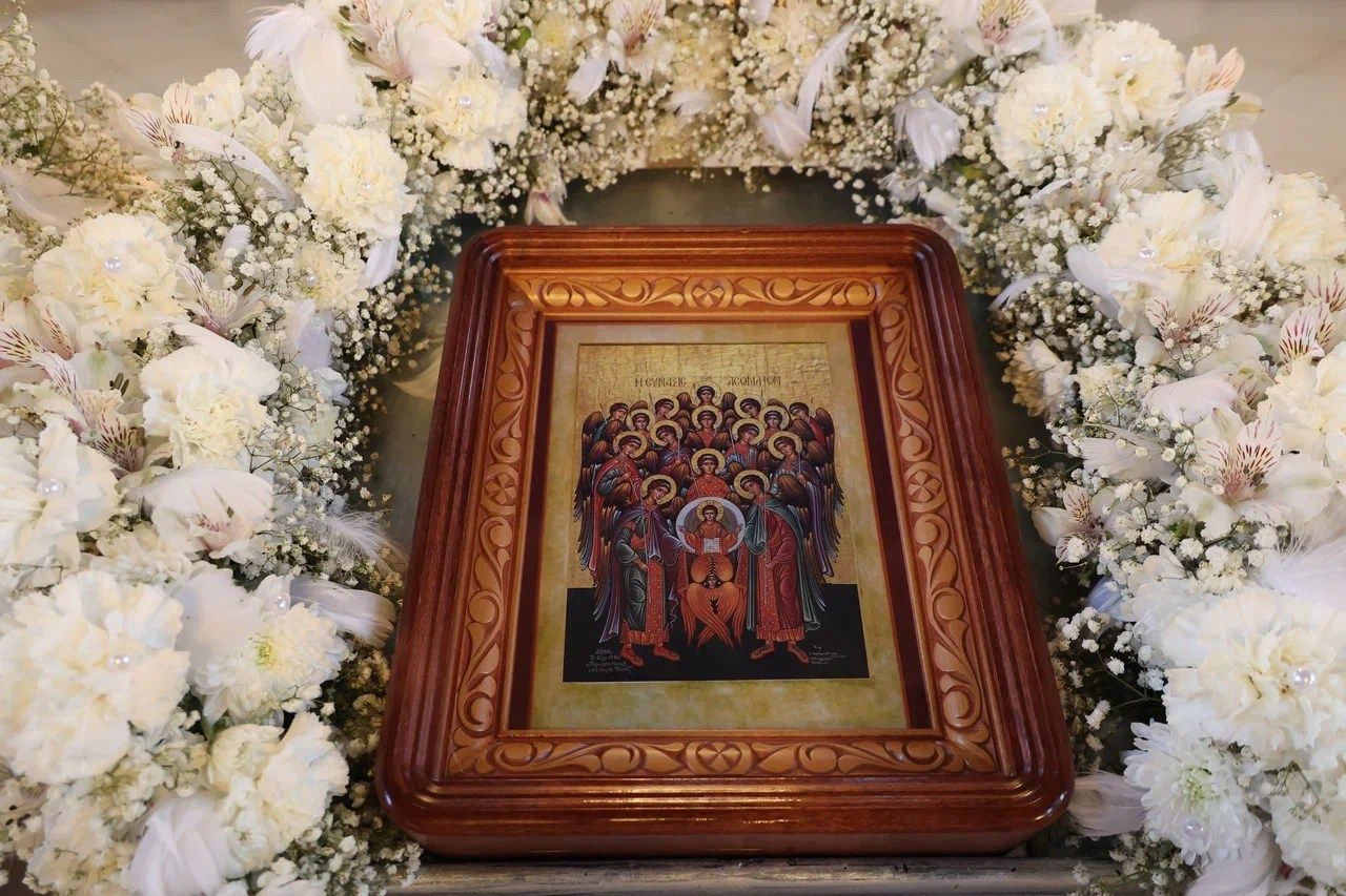 По окончании Литургии духовенством было совершено славление у иконы праздника. Затем владыка Феофан обратился к верующим с проповедью, рассказав об истории возникновения праздника Архистратига Божьего Михаила и прочих Небесных Сил Бесплотных. На Поместном Соборе в Лаодикии в 364 году было утверждено учение о Небесной иерархии, изложенное учеником апостола Павла Дионисием Ареопагитом, установлено должное почитание ангелов и определена дата празднования Небесным Силам. На Соборе было осуждено лжеучение, будто бы небожители-ангелы одной природы с Богом, отчего среди людей возникало множество языческих суеверий.