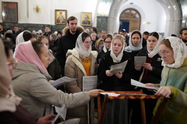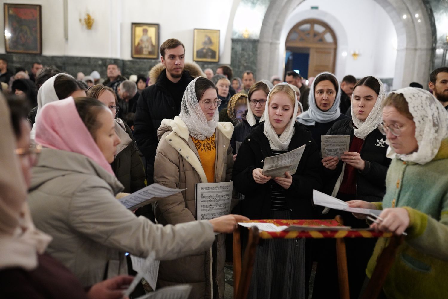 Традиционно, акафист, прославляя Пресвятую Богородицу, вместе со священством и хором пели все прихожане.