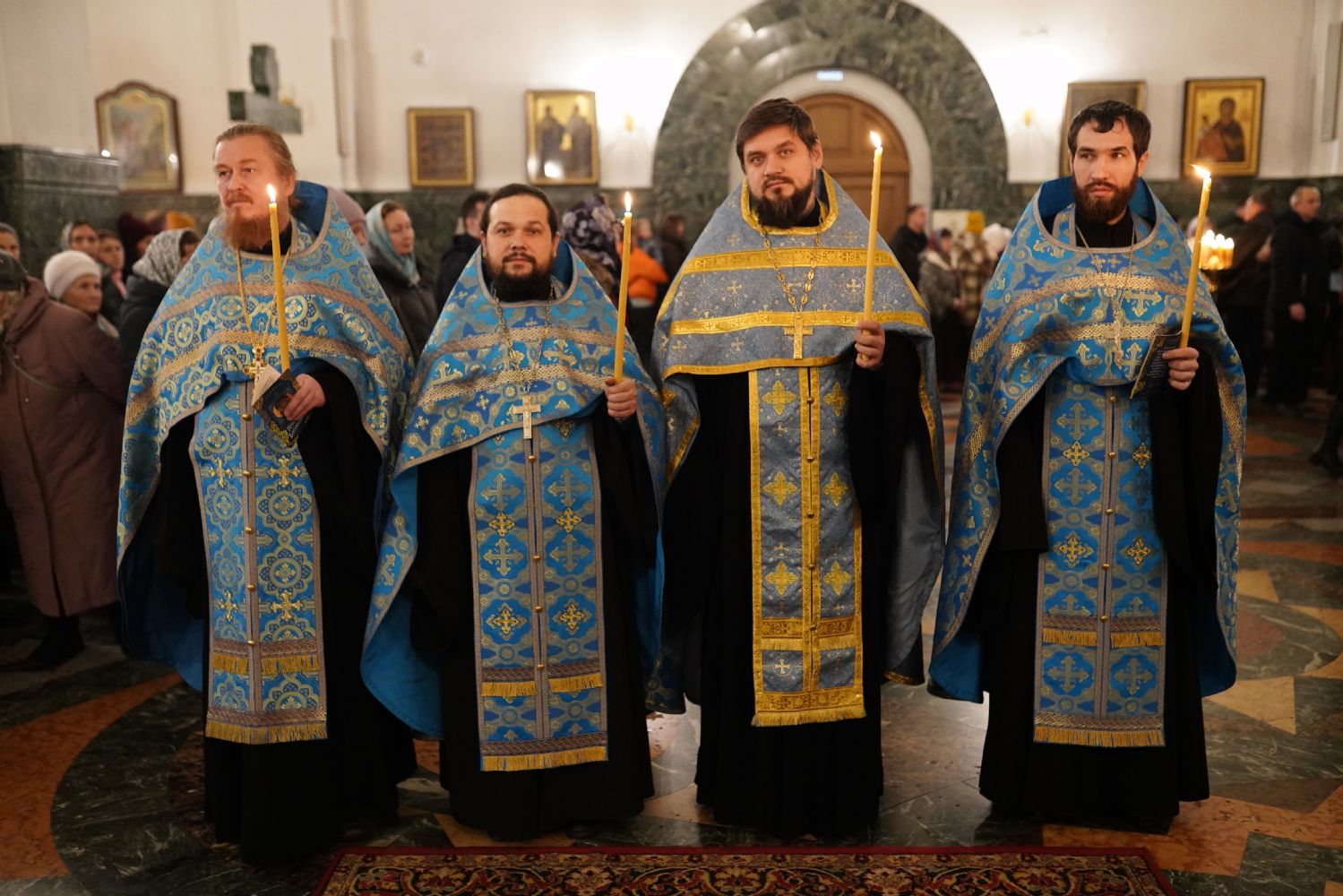 Его Высокопреосвященству сослужили секретарь Йошкар-Олинского епархиального управления иерей Димитрий Дьяков, ключарь кафедрального собора протоиерей Сергий Поглазов, настоятель Покровского храма с. Марисола протоиерей Сергий Сильдушкин, руководитель молодежного отдела Йошкар-Олинской епархии иерей Никита Иванов, а также клирики кафедрального собора иереи Никифор Захаров, Евгений Самойлов, Александр Староверов, Иоанн Милютин, диаконы Андрей Дружинин и Артемий Бобоч. Песнопения исполнял детско-юношеский хор «Благовест» под управлением Татьяны Черновой.