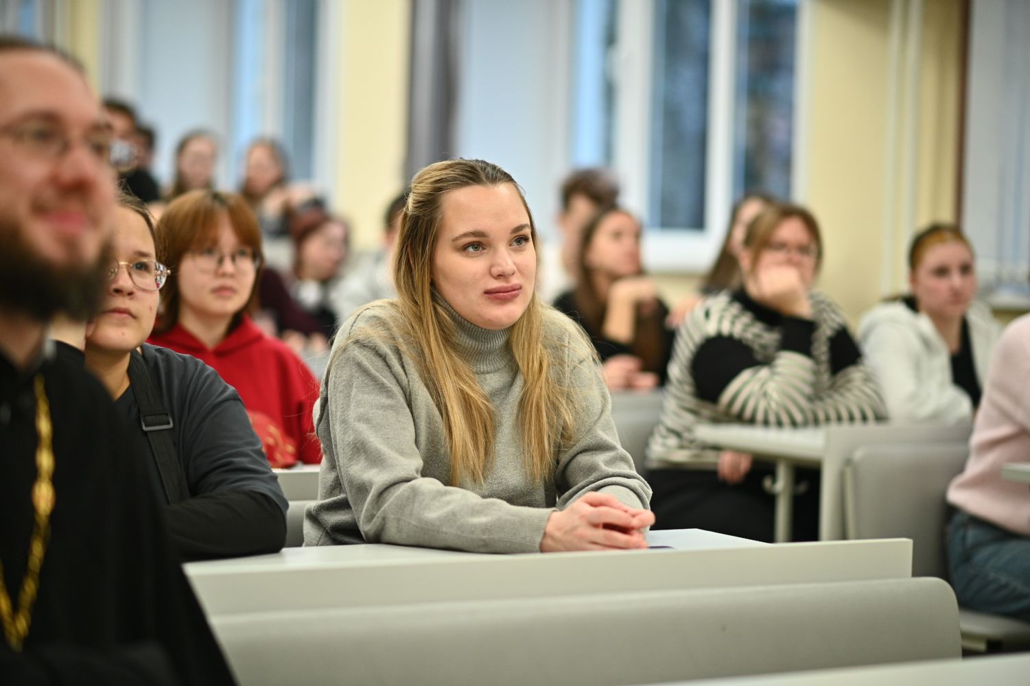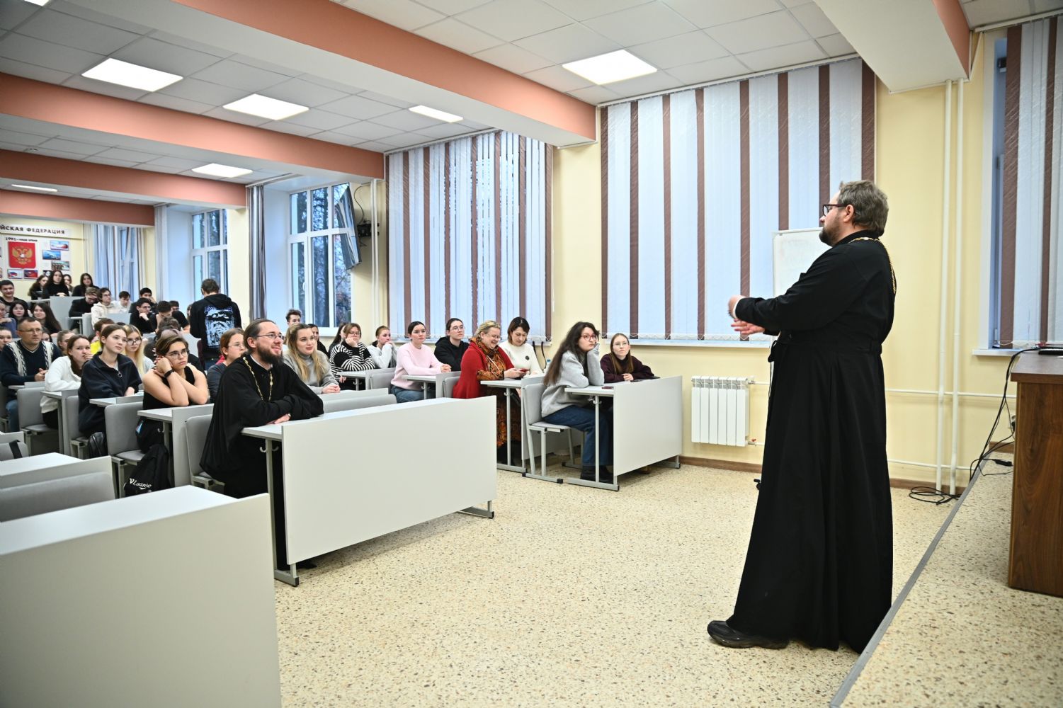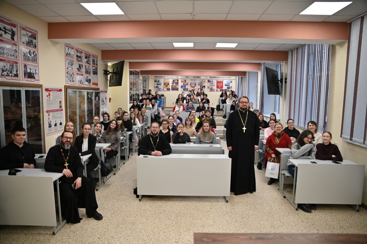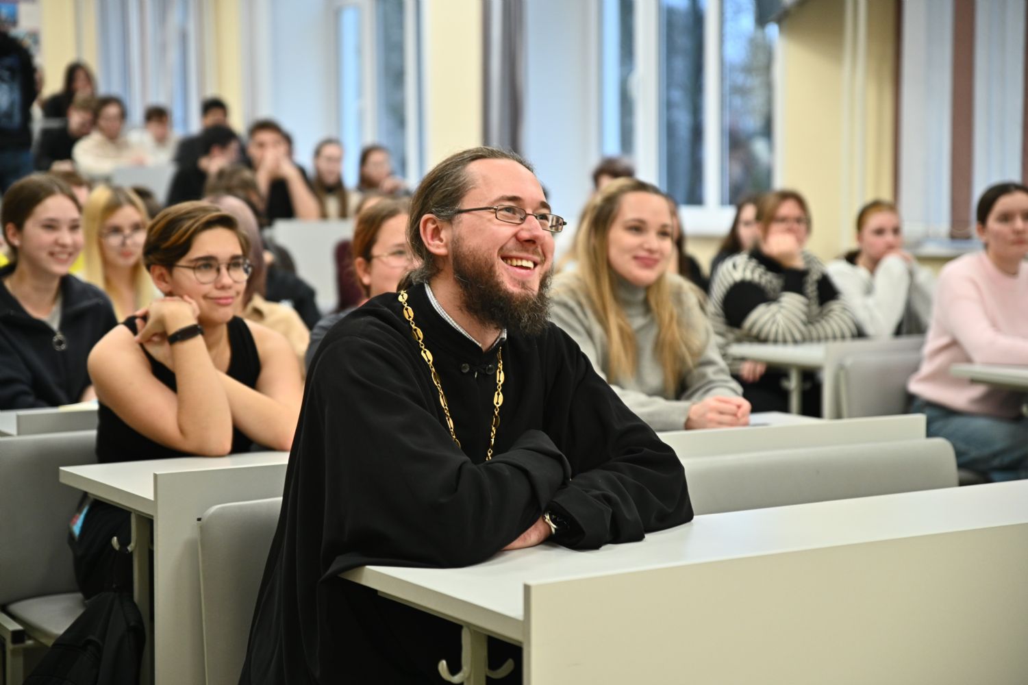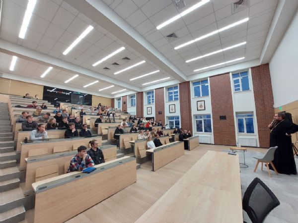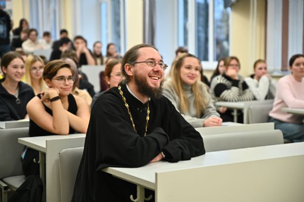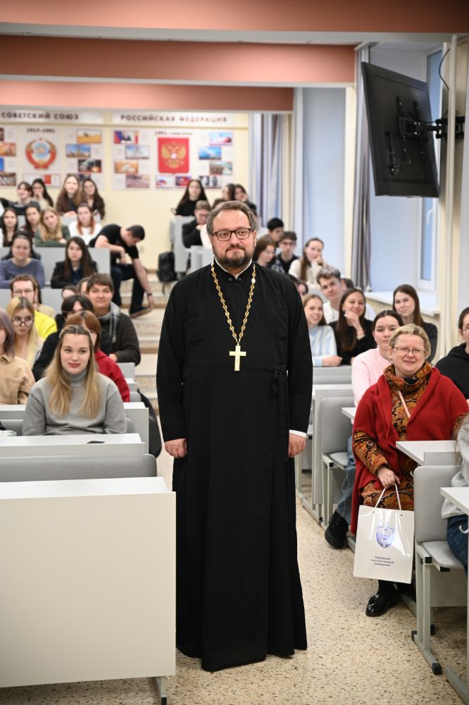 Также в этот день священник Владислав Береговой побеседовал со студентами со студентами и преподавателями факультетов и институтов МарГУ, участниками и наставником Клуба православной молодежи "Пока горит свеча" на тему «Семья, дети, работа. Строим жизнь по-христиански» и со студентами Института iSpring, обсудив вопрос: «Искусственный Интеллект. Христианский взгляд».