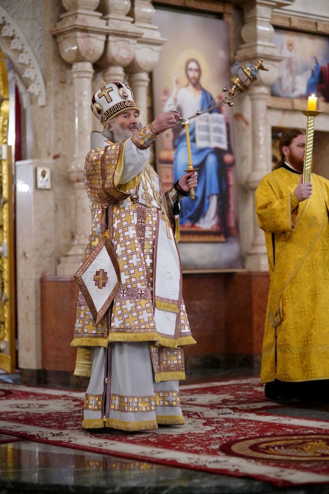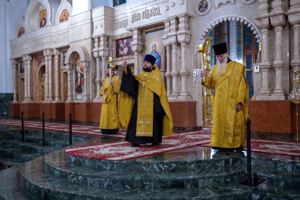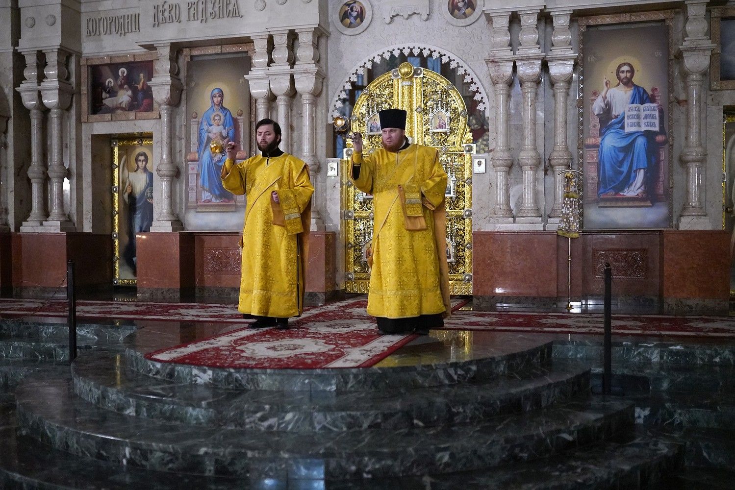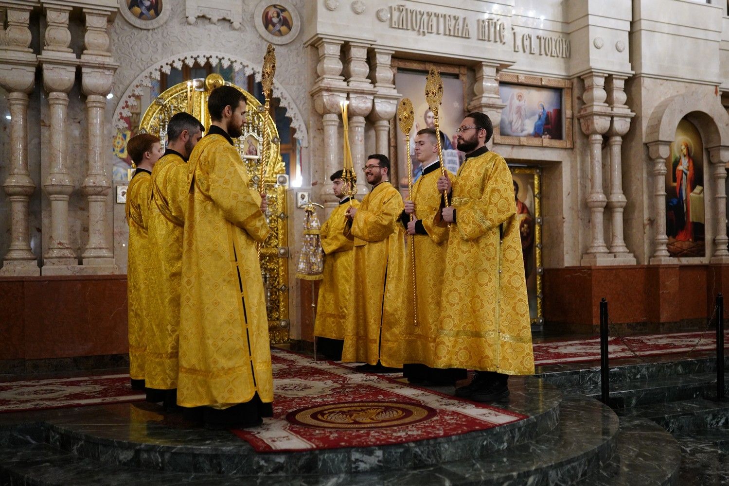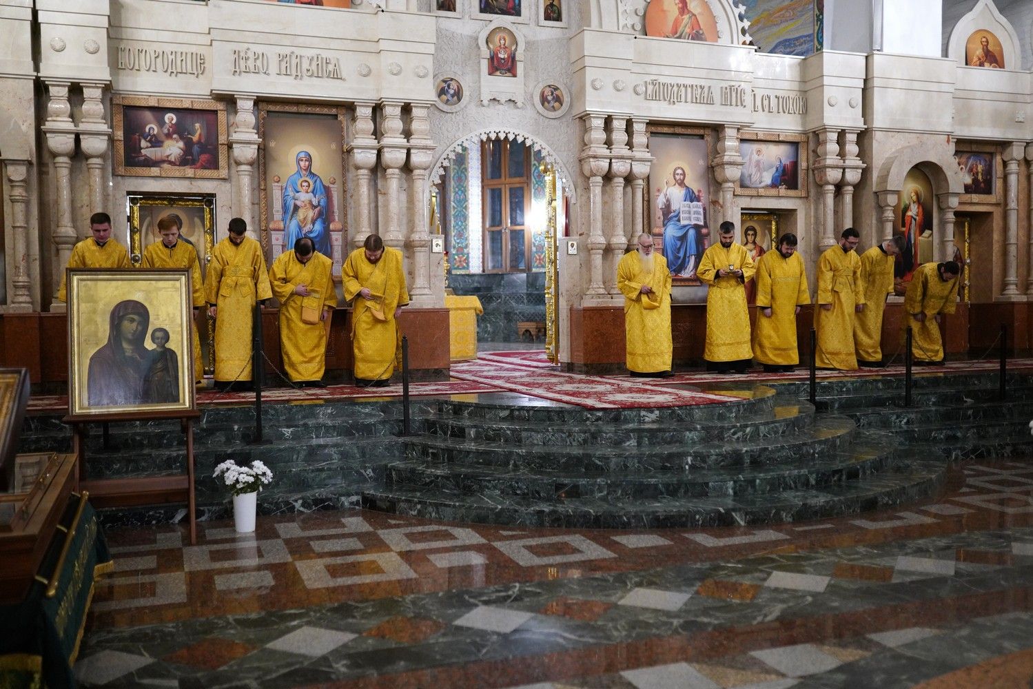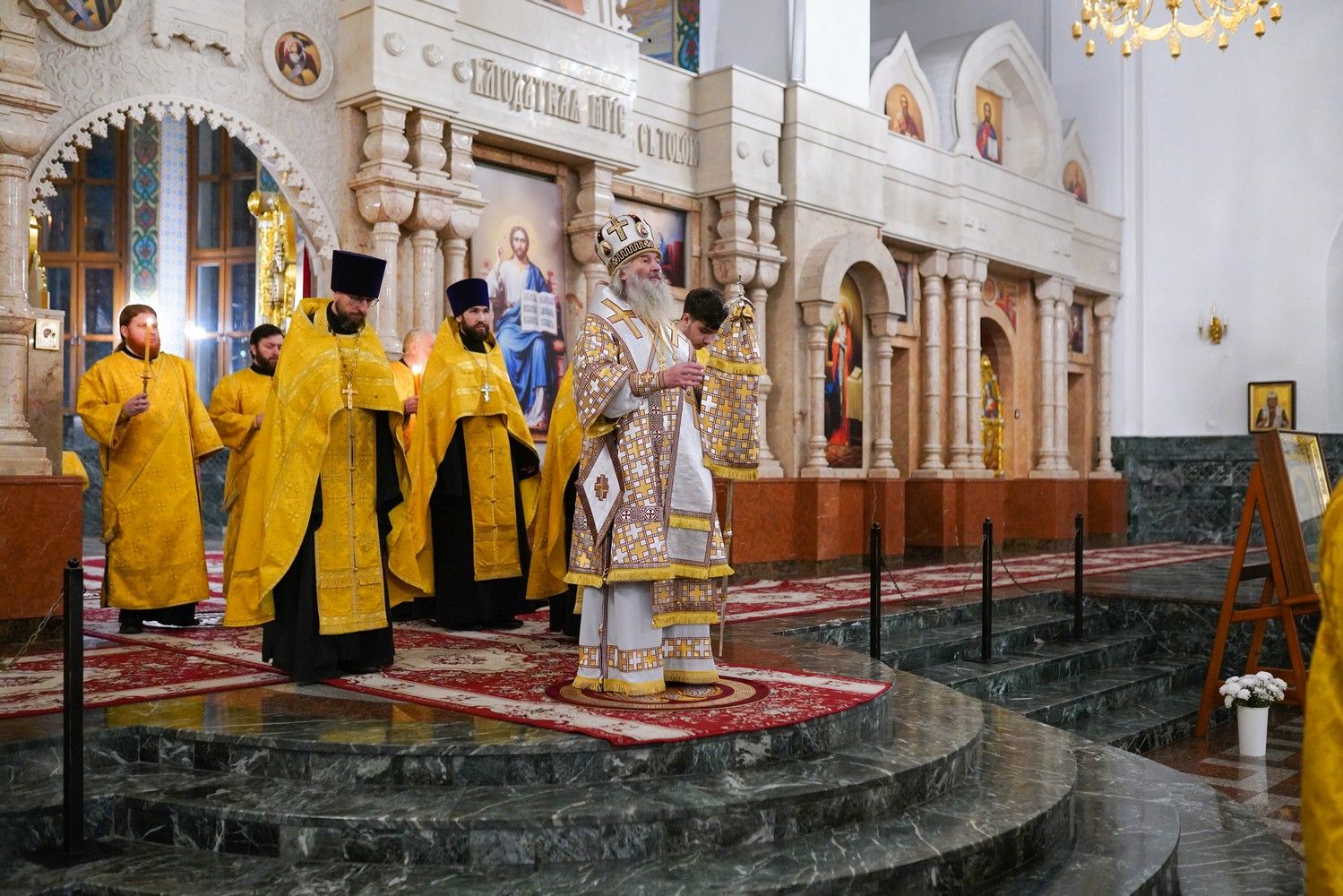 Владыке сослужили клирики собора клирики собора иереи Никифор Захаров, Евгений Самойлов, Иоанн Милютин, диаконы Андрей Дружинин и Артемий Бобоч, а также протодиакон Михаил Козловский. Песнопения исполнял младший состав архиерейского детско-юношеского хора «Благовест» под управлением регента Надежды Поздеевой.