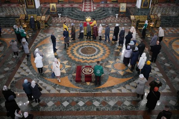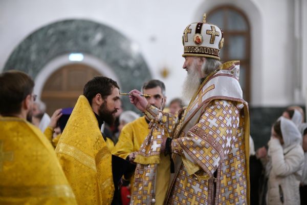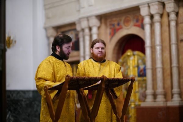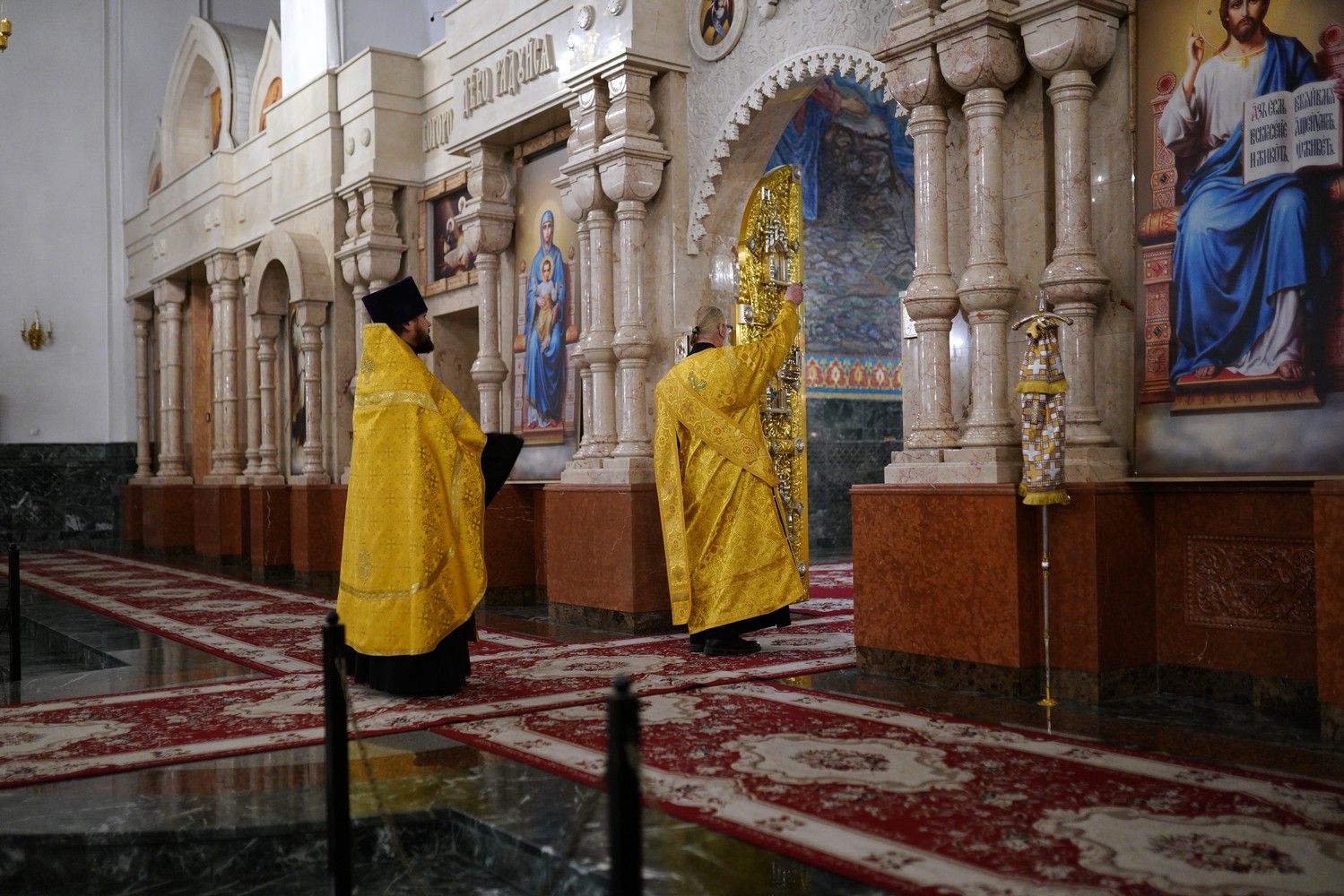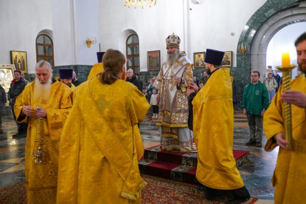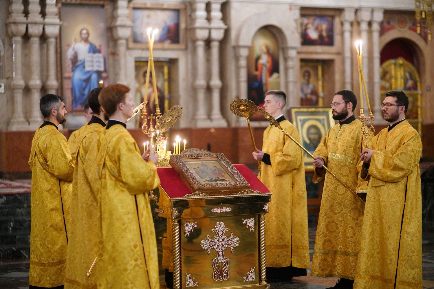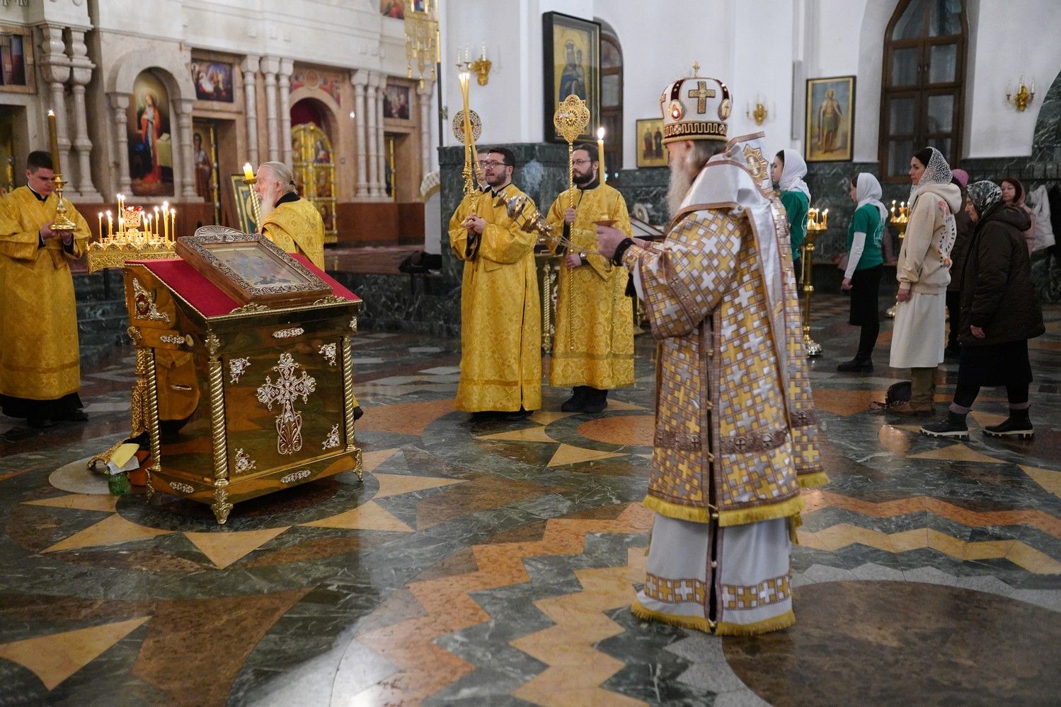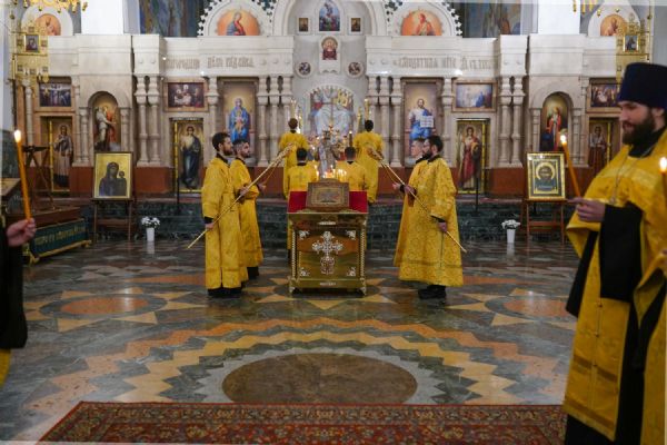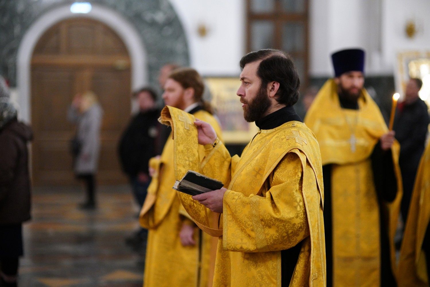 Владыке сослужили клирики собора клирики собора иереи Никифор Захаров, Евгений Самойлов, Иоанн Милютин, диаконы Андрей Дружинин и Артемий Бобоч, а также протодиакон Михаил Козловский. Песнопения исполнял младший состав архиерейского детско-юношеского хора «Благовест» под управлением регента Надежды Поздеевой.