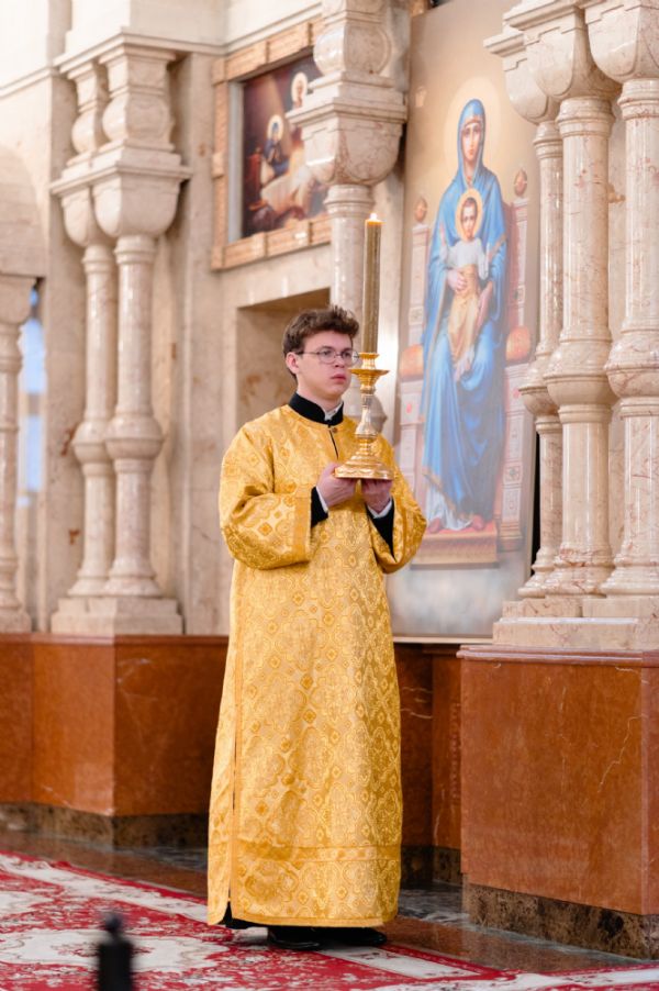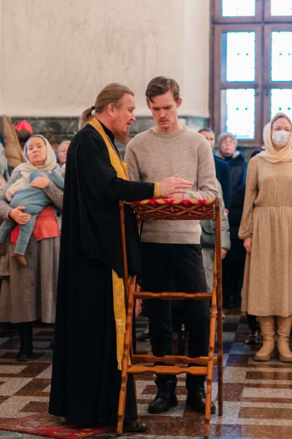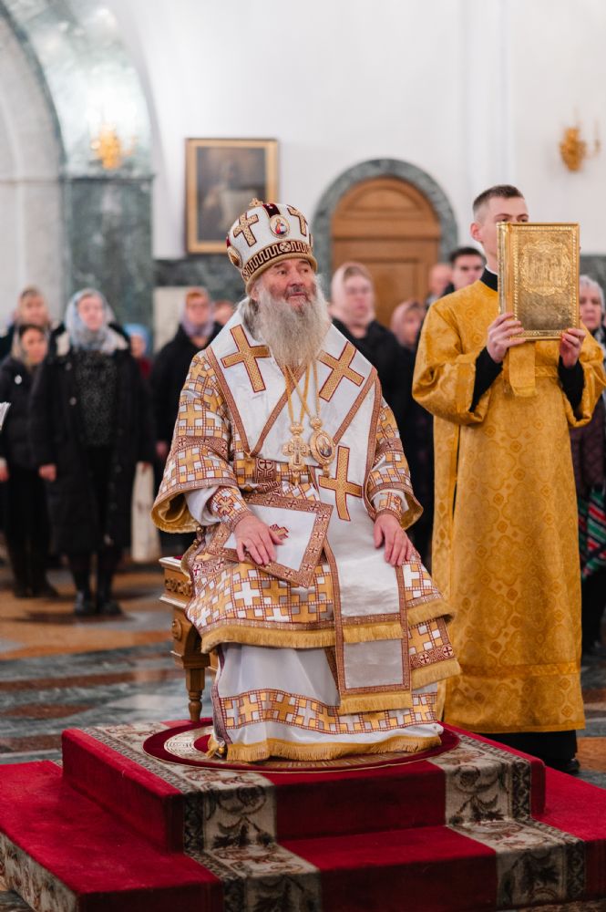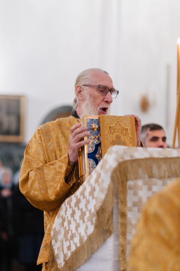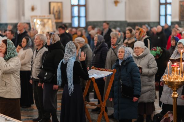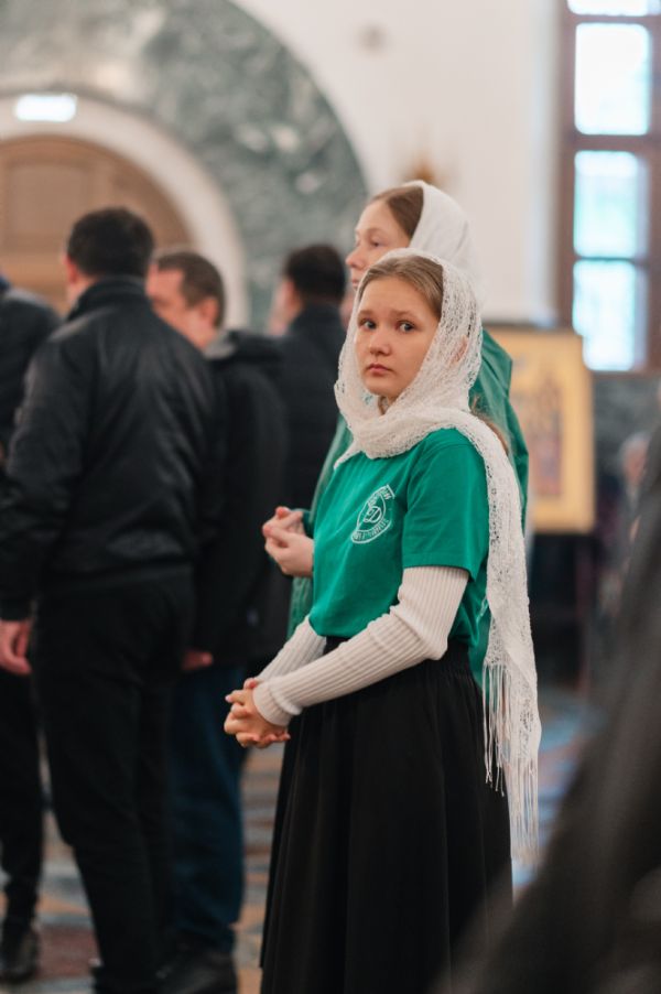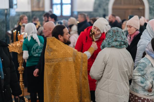 Владыке сослужили клирики собора иерей Никифор Захаров, диаконы Андрей Дружинин и Артемий Бобоч, а также протодиакон Михаил Козловский. Песнопения исполняли старший и младший составы архиерейского детско-юношеского хора «Благовест» под управлением регентов Татьяны Черновой и Надежды Поздеевой. Исповедь у многочисленных прихожан принимали протоиерей Сергий Поглазов и иерей Евгений Самойлов.