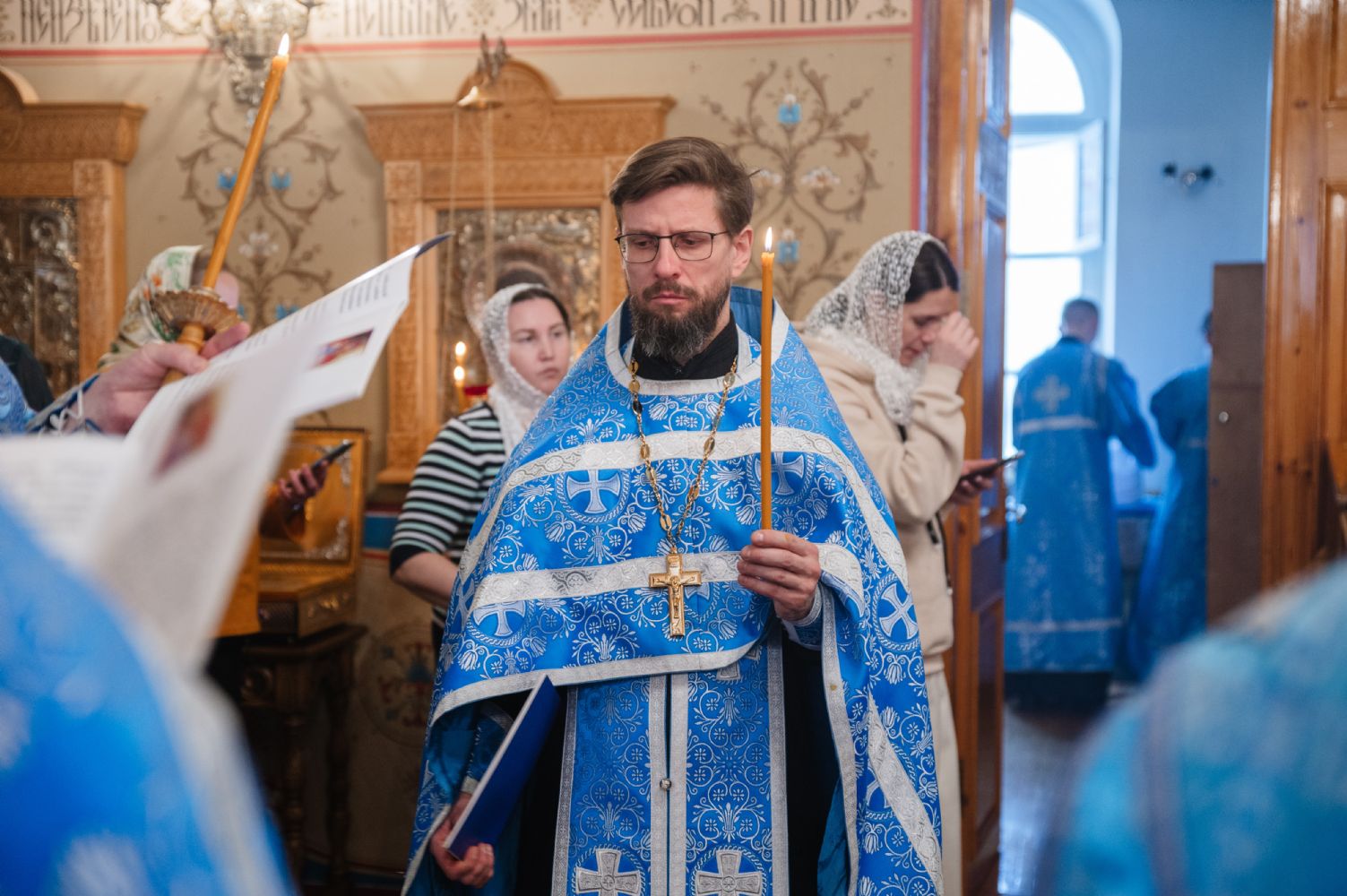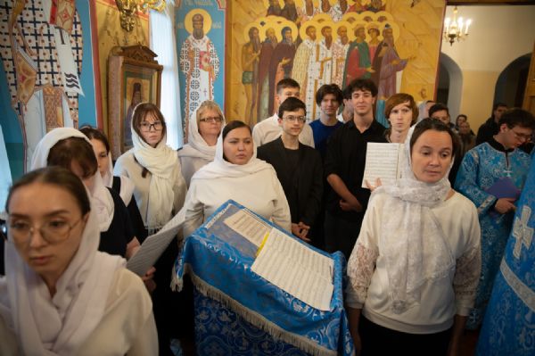 День начался с Божественной литургии в Благовещенском кафедральном соборе, где хористы несут свое послушание – поют за богослужениями. А после обеда митрополит Йошкар-Олинский и Марийский Иоанн в домовом храме епархиального управления возглавил традиционный молебен с акафистом Пречистой Богоматери перед Ее иконой «Троеручица».