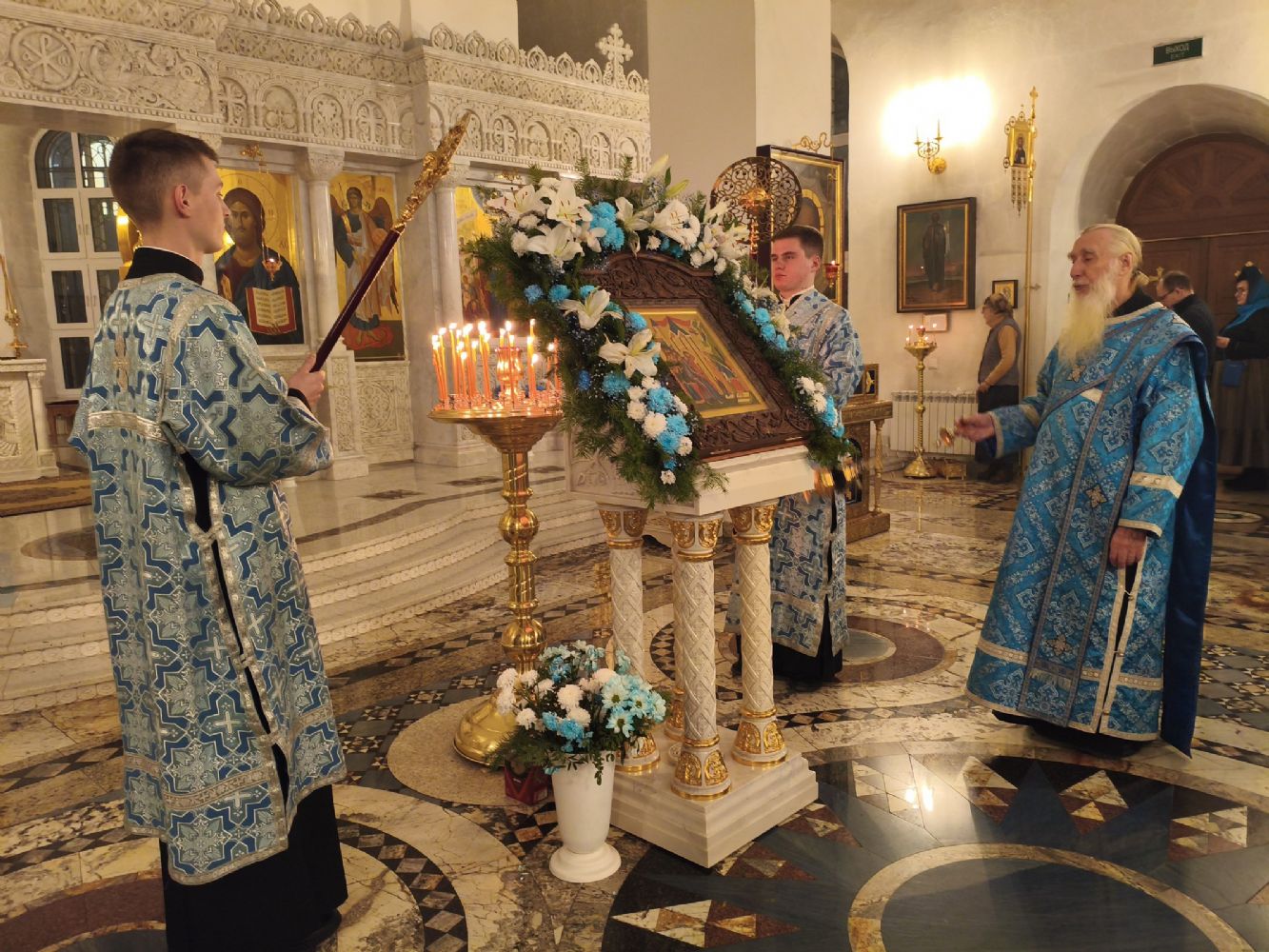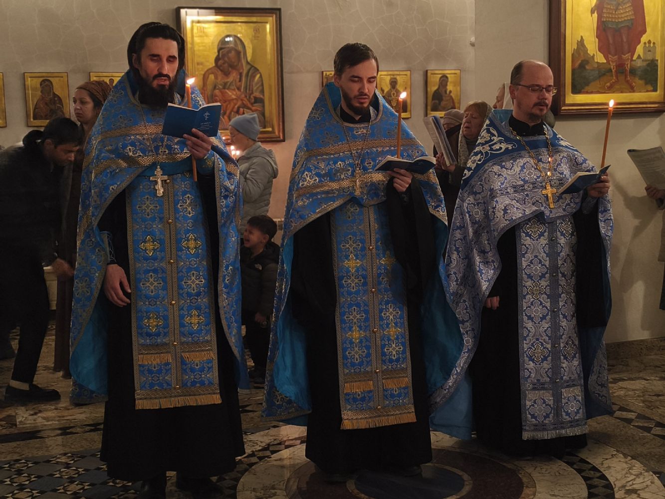 Традиционно, акафист, прославляя Пресвятую Богородицу, вместе со священством и хором пели все прихожане.