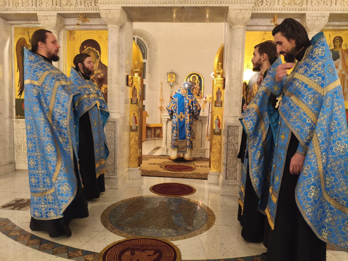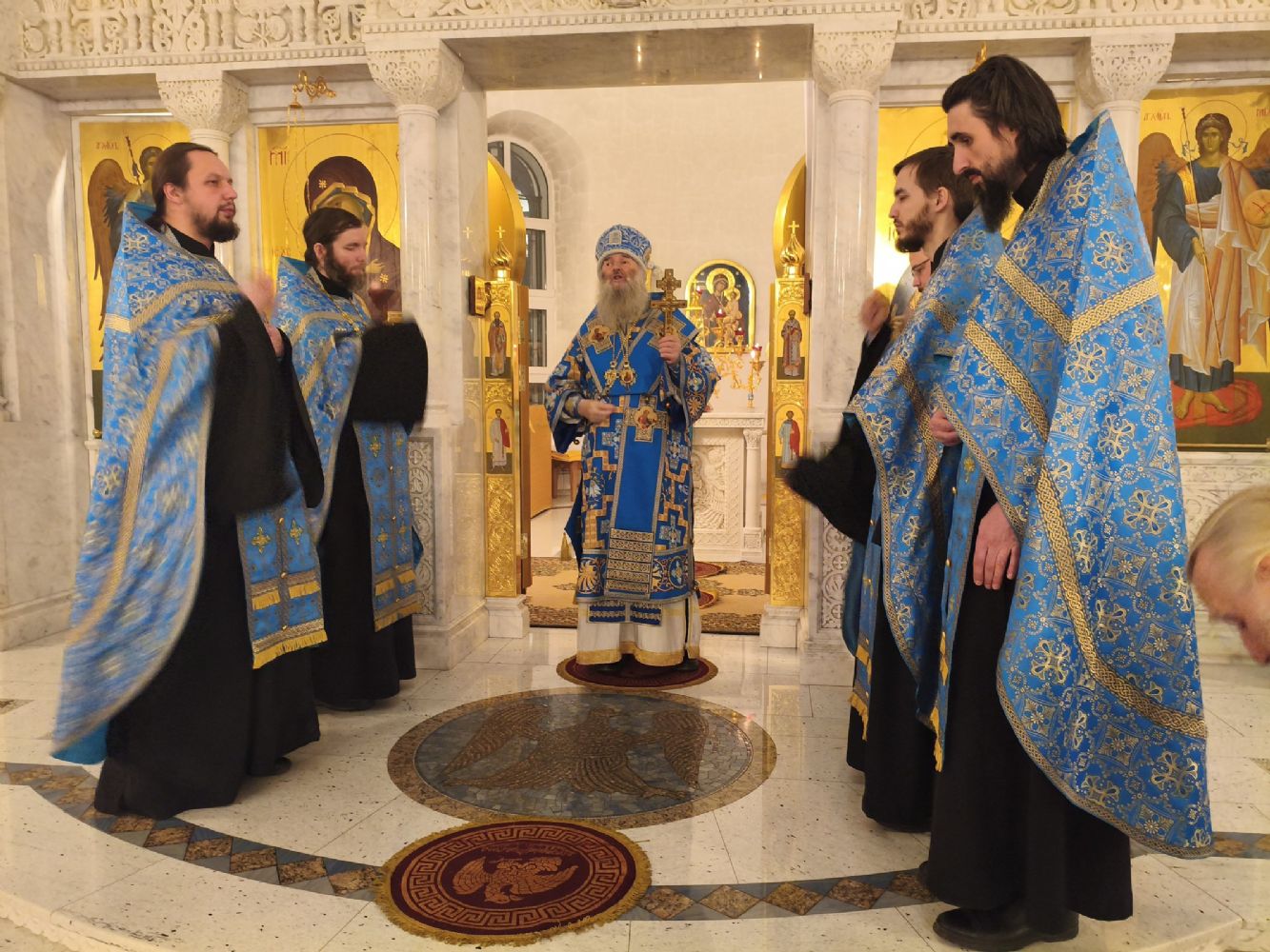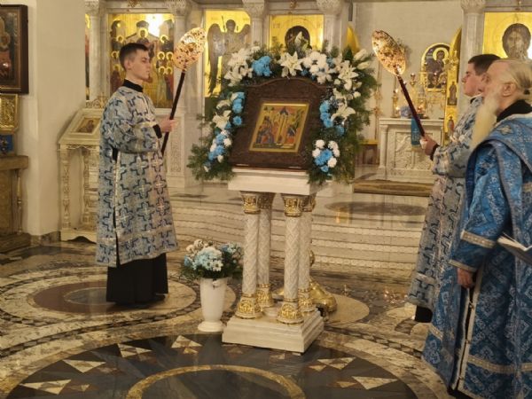 Владыке сослужили настоятель храма иерей Алексий Михеев, клирики храма иереи Алексий Кирюшкин, Игорь Коваль, Сергий Пуртов и Василий Пряморуков, а также протодиакон Михаил Козловский. Песнопения исполнял хор храма под управлением Александры Ивановой.