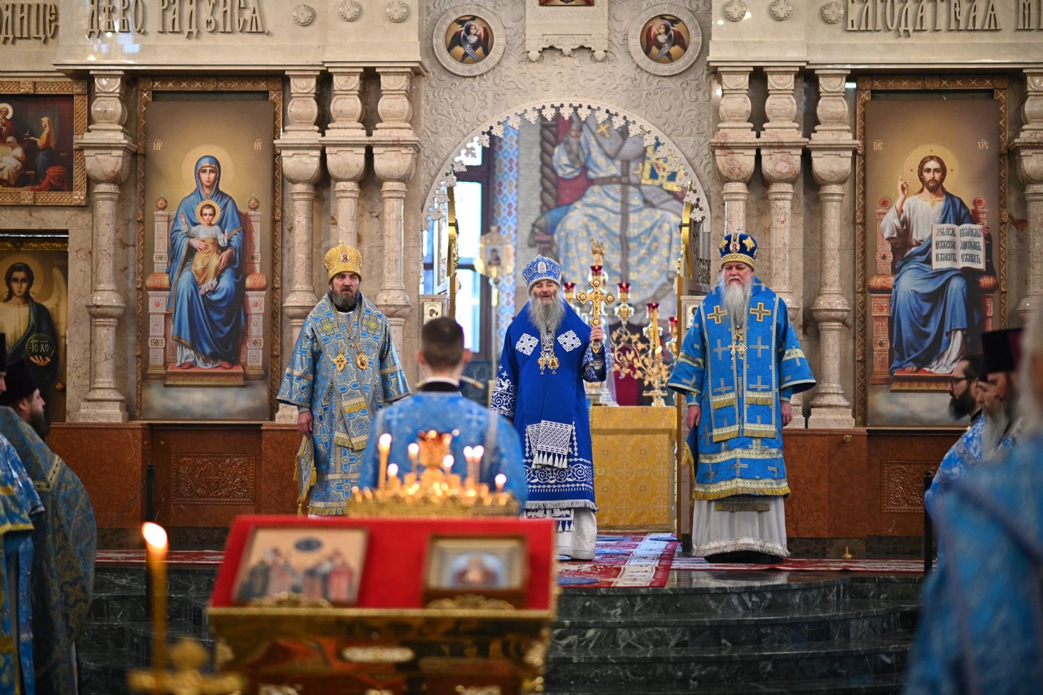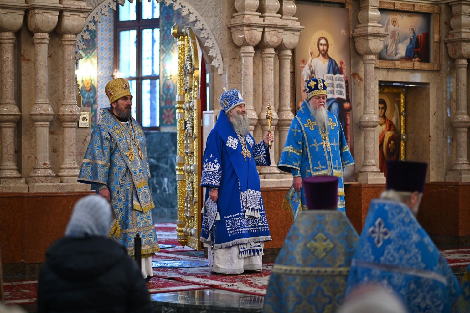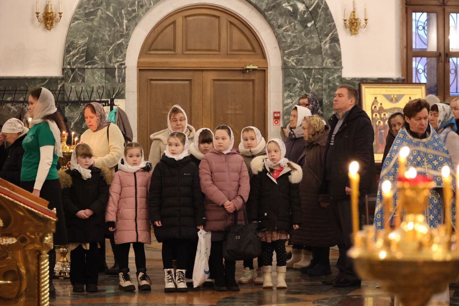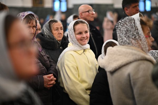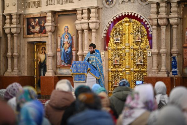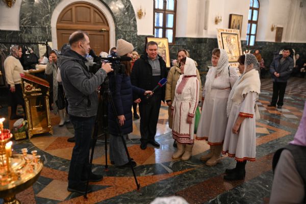 Тексты апостольских посланий и Евангелия звучали на двух языках – церковнославянском и марийском. Также на двух языках прихожане пели «Символ веры» и «Отче наш».