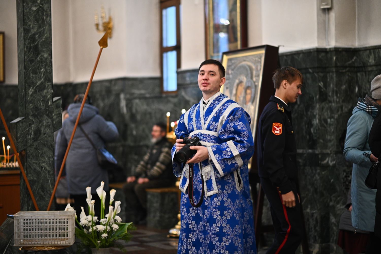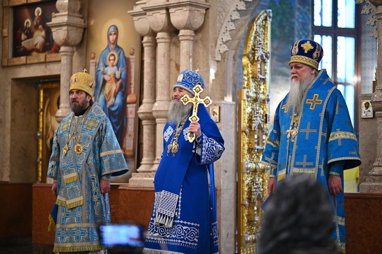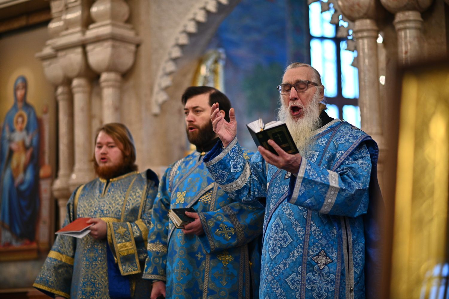 Тексты апостольских посланий и Евангелия звучали на двух языках – церковнославянском и марийском. Также на двух языках прихожане пели «Символ веры» и «Отче наш».