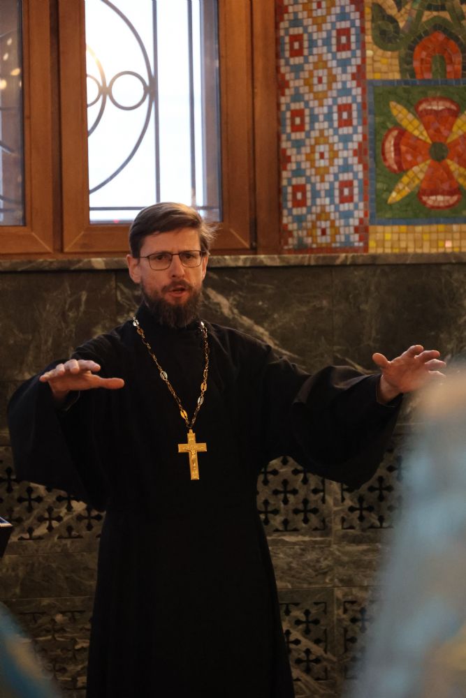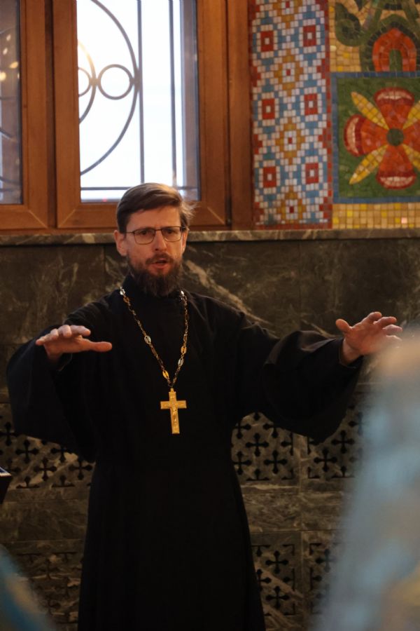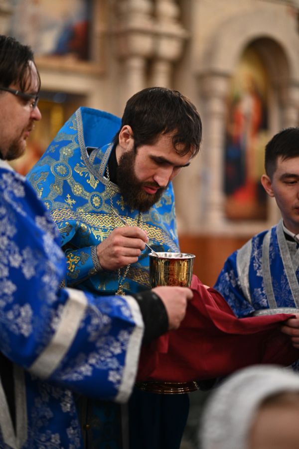 Проповедь по запричастном стихе произнес на марийском языке клирик Благовещенского кафедрального собора иерей Иоанн Милютин.