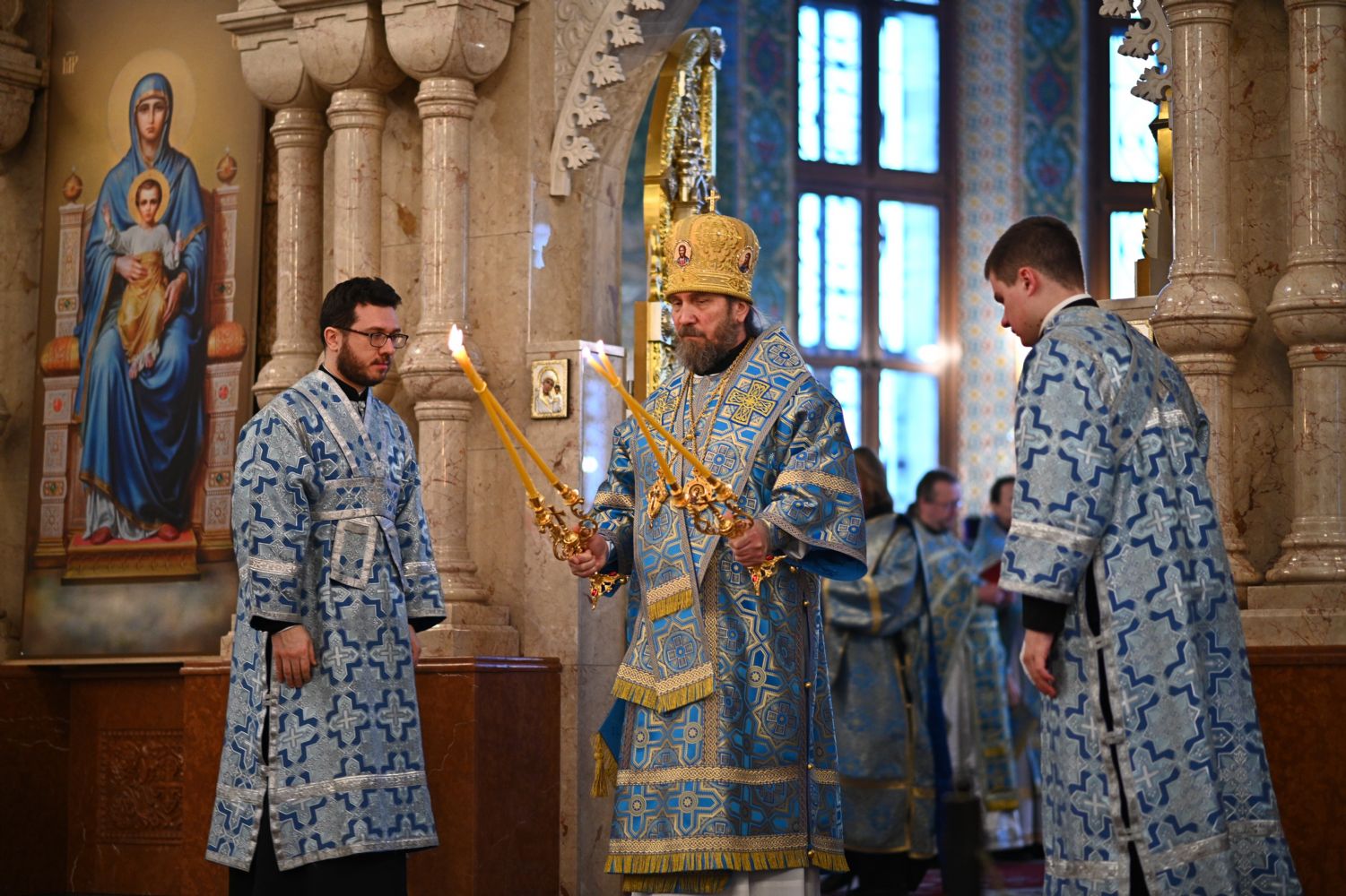 10 декабря, в День марийской письменности, в Благовещенском кафедральном соборе г. Йошкар-Олы состоялась Божественная литургия на марийском языке, возглавили которую митрополит Йошкар-Олинский и Марийский Иоанн, епископ Волжский и Сернурский Феофан и епископ Минусинский и Курагинский Серафим.