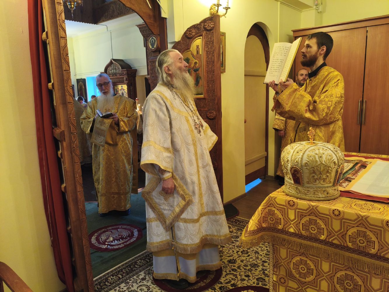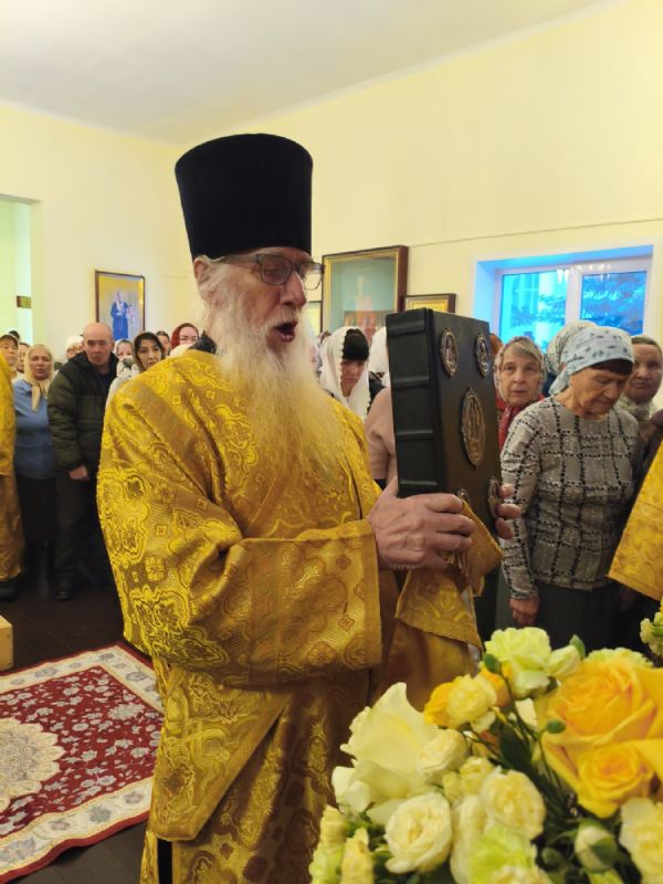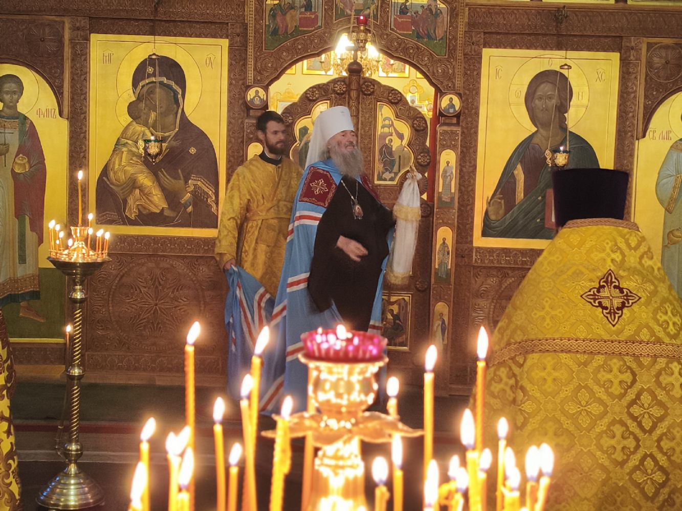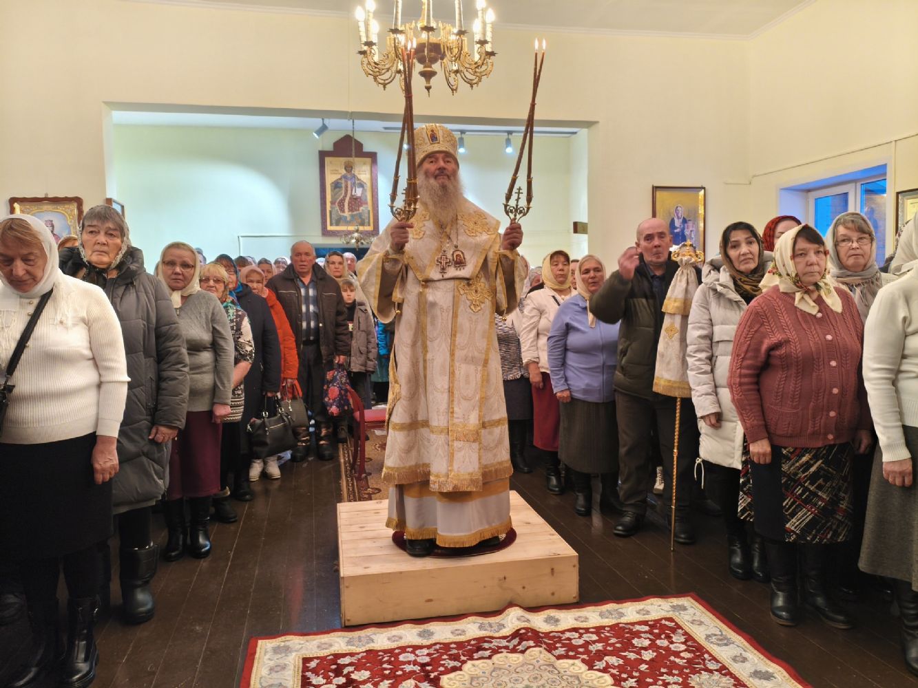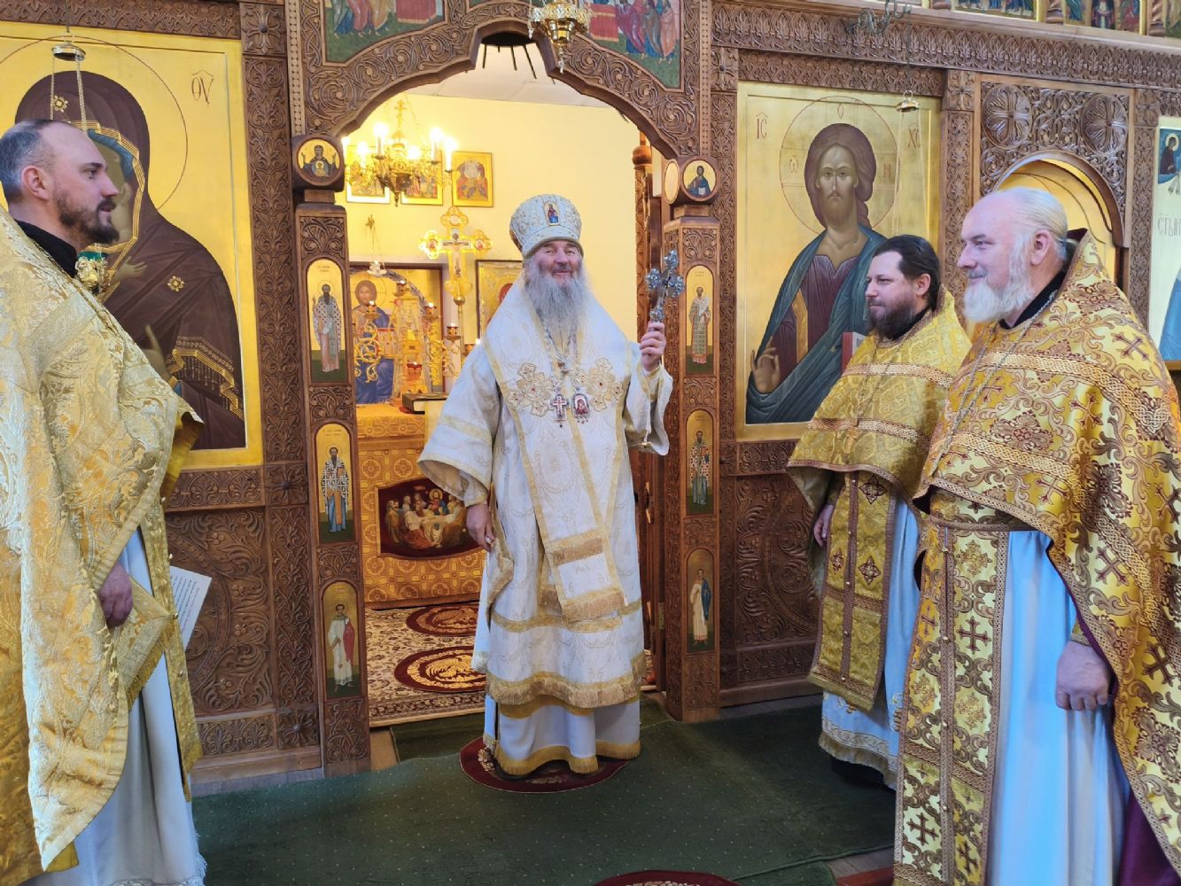 Его Высокопреосвященству сослужили благочинный Лугово-Марийского церковного округа протоиерей Алексий Никитин, настоятель храма иерей Антоний Блинов, клирик храма иерей Александр Сергунин и протодиакон Михаил Козловский. Песнопения исполнял хор храма.
