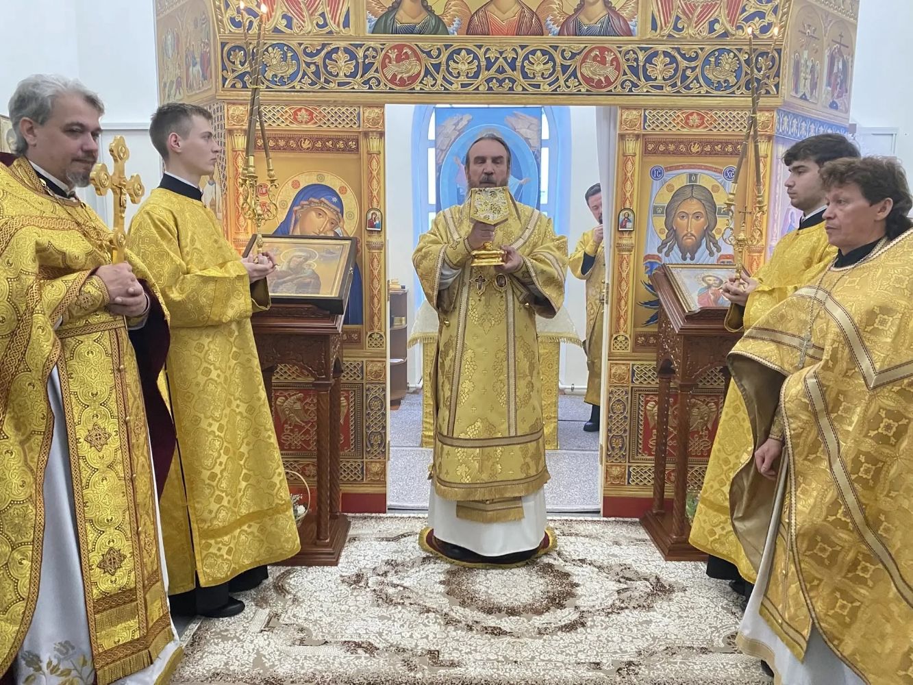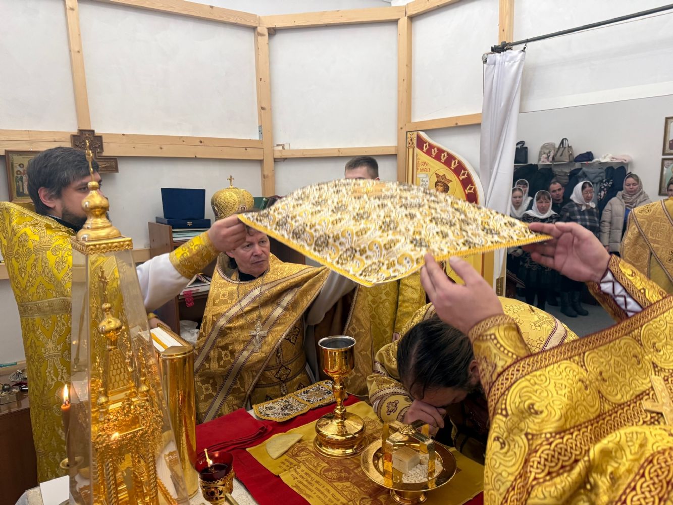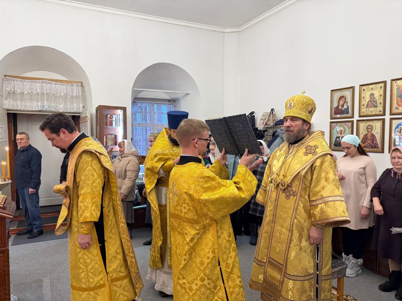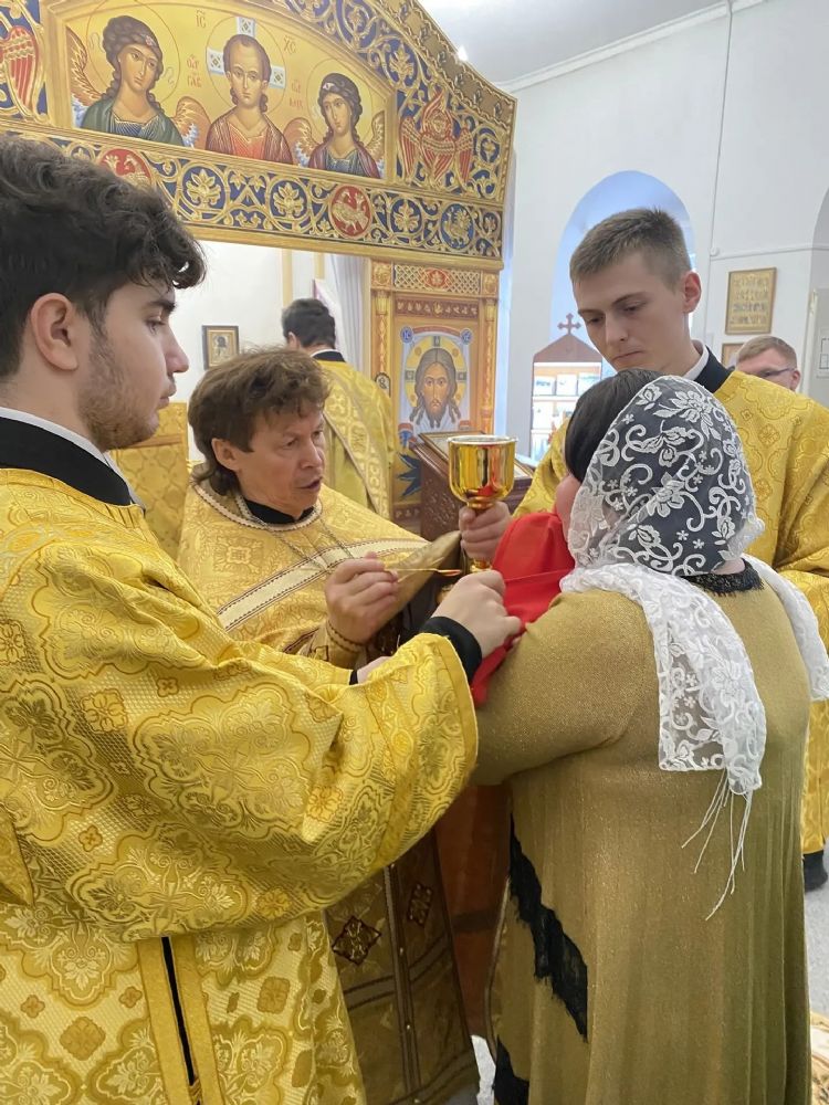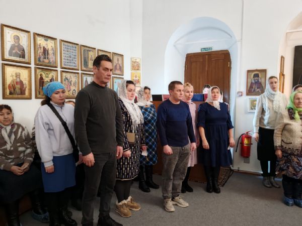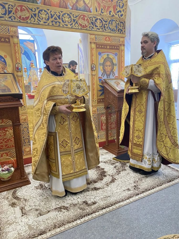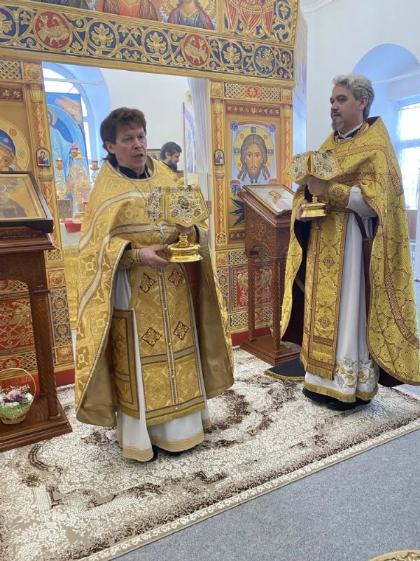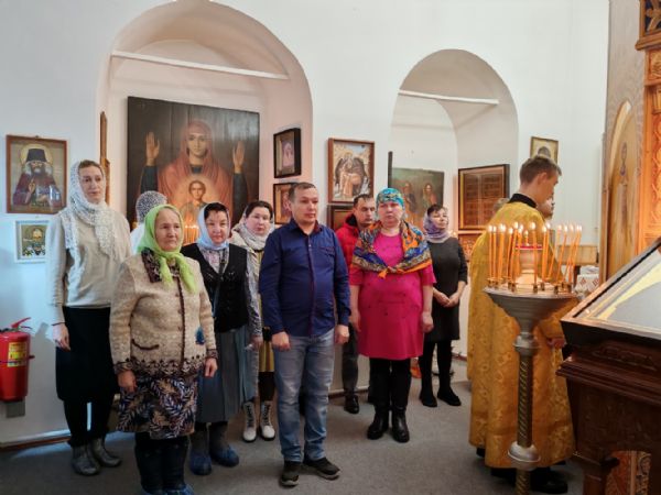 Его Преосвященству сослужили настоятель храма иерей Олег Михайлов, настоятель храма Рождества Христова г. Йошкар-Олы иерей Александр Лоскутов, клирик Успенского храма г. Йошкар-Олы иерей Никита Иванов и клирик Воскресенского собора г. Йошкар-Олы диакон Алексий Кузнецов.