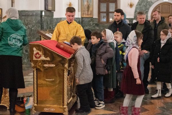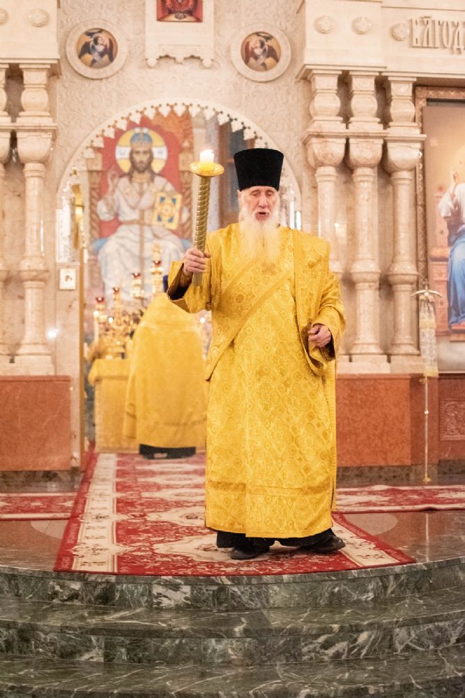 Владыке сослужили ключарь кафедрального собора протоиерей Сергий Поглазов, клирики собора иереи Никифор Захаров, Евгений Самойлов, Александр Староверов, Иоанн Милютин, диакон Артемий Бобоч, а также протодиакон Михаил Козловский. Песнопения исполняли старший и младший составы архиерейского детско-юношеского хора «Благовест» под управлением регентов Татьяны Черновой и Надежды Поздеевой.