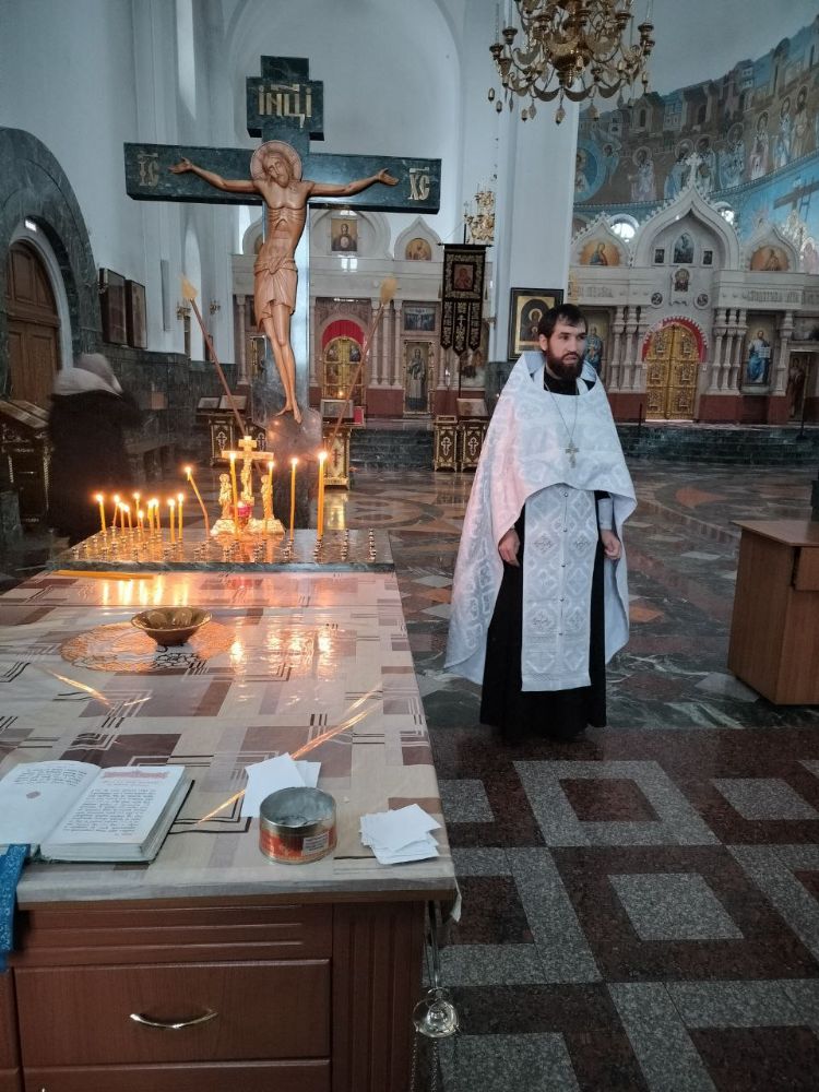 Совершил богослужение клирик кафедрального собора иерей Иоанн Милютин – ответственный по окормлению воинов СВО и их семей Йошкар-Олинской епархии.