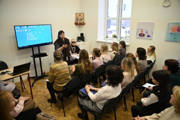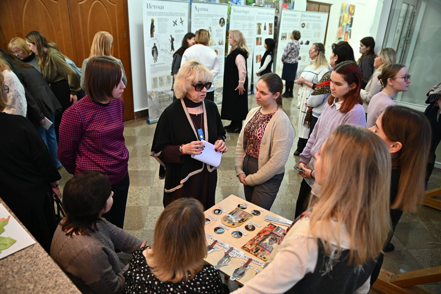 Сотрудник Музея Светлана Константиновна Каплунова представила участникам семинара передвижную выставку, посвящённую 30-летию Йошкар-Олинской епархии, а также провела для учителей программу «Путь к Свету» – педагоги с азартом разгадывали задания: собирали карту Марийской митрополии, разбирались в церковных терминах и выстраивали хронологию событий.