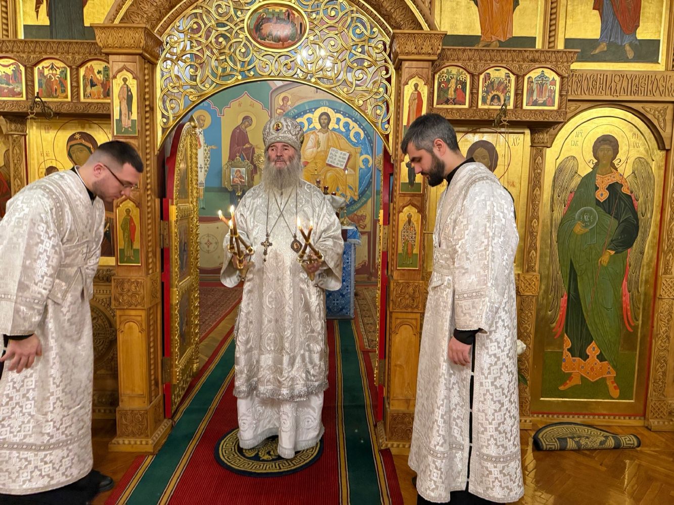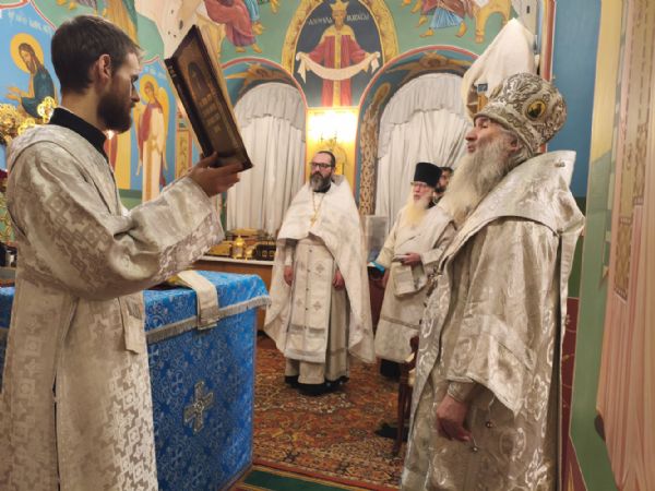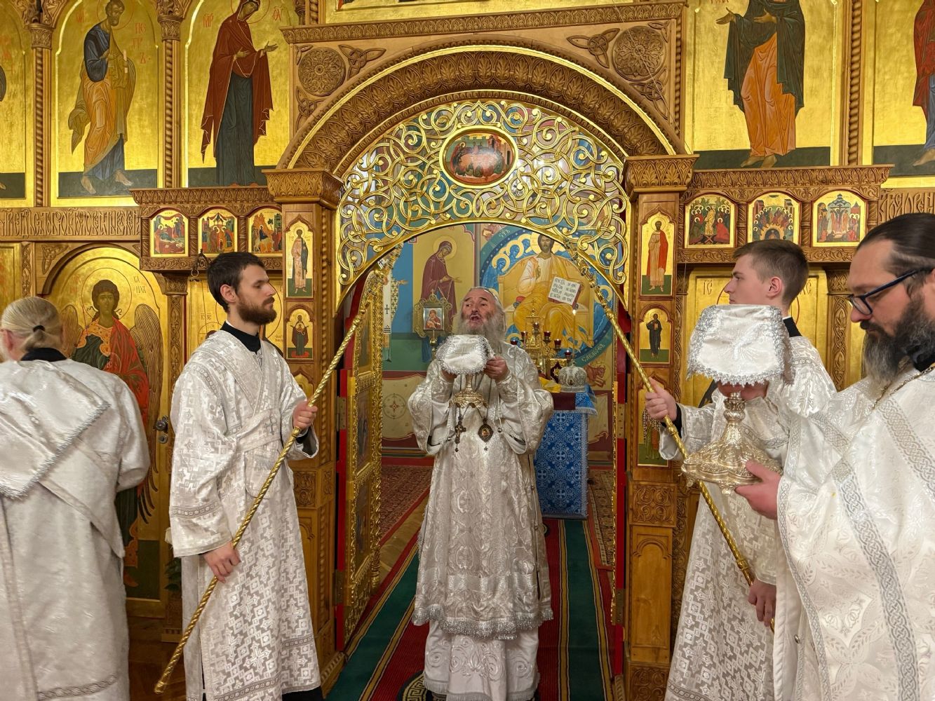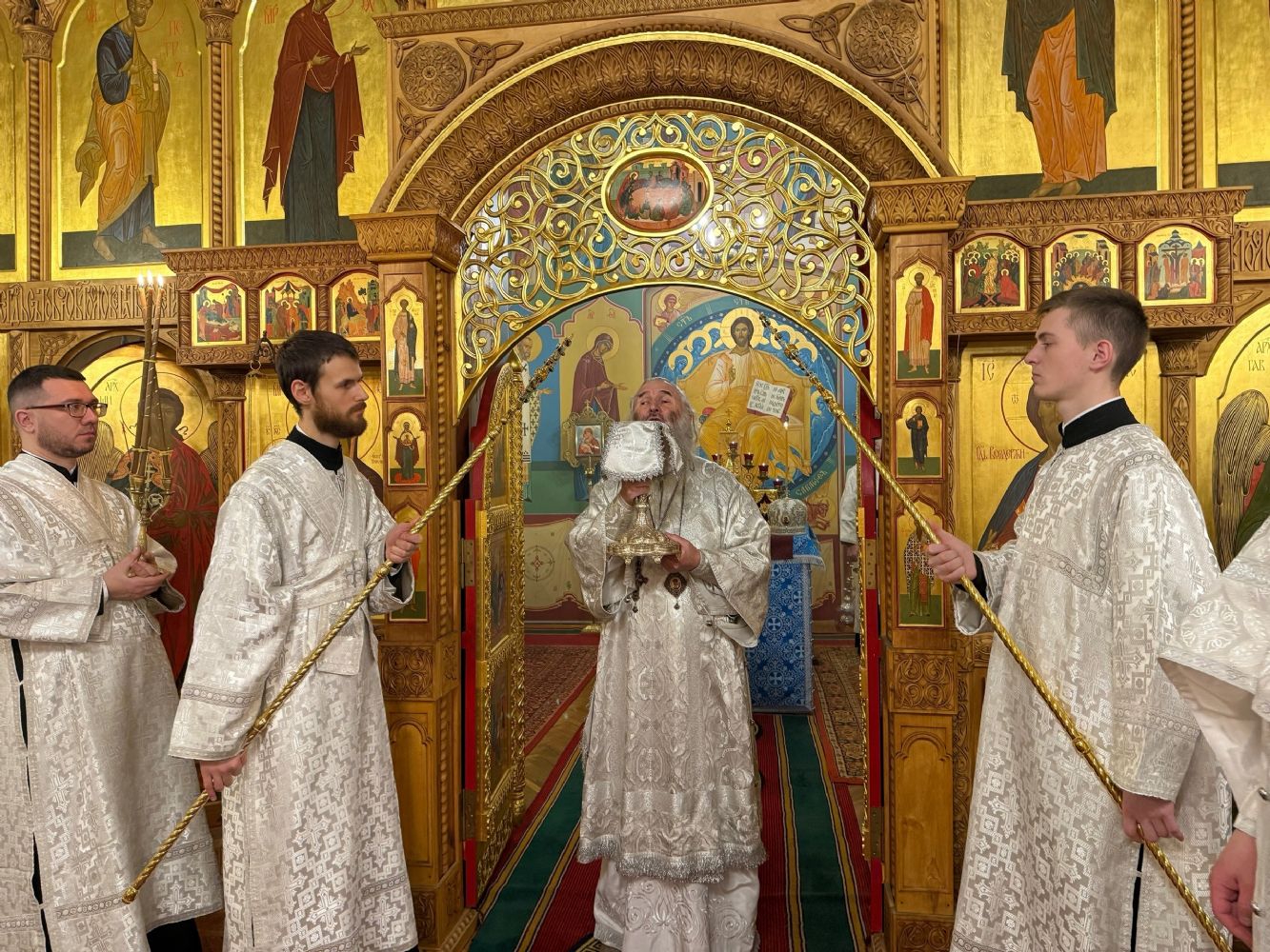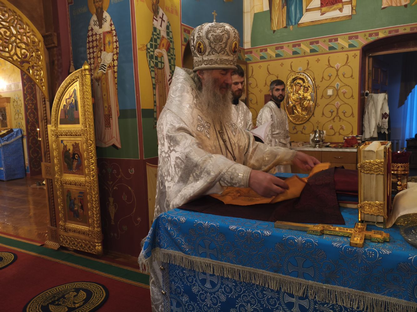 Владыке сослужили секретарь Йошкар-Олинского епархиального управления иерей Димитрий Дьяков, клирик Благовещенского кафедрального собора г. Йошкар-Олы иерей Никифор Захаров и протодиакон Михаил Козловский. Песнопения исполнял малый состав хора «Благовест» под управлением регента Татьяны Черновой.
