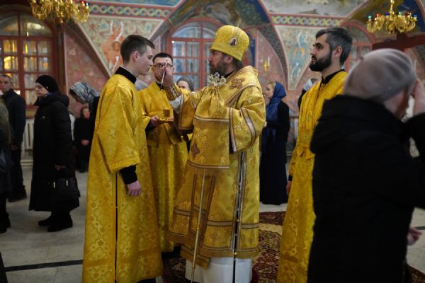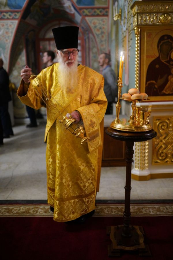 Его Высокопреосвященству сослужили настоятель Вознесенского собора г. Йошкар-Олы протоиерей Евгений Кутырев, клирики собора протоиерей Андрей Норкин, иерей Олег Большаков и диакон Владимир Лихачев, а также протодиакон Михаил Козловский. Песнопения исполнял хор Троицкого храма.