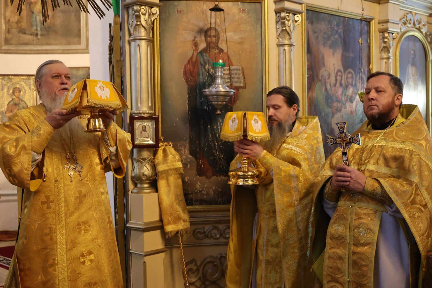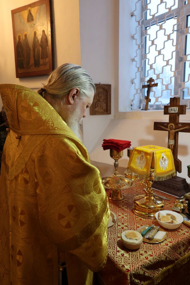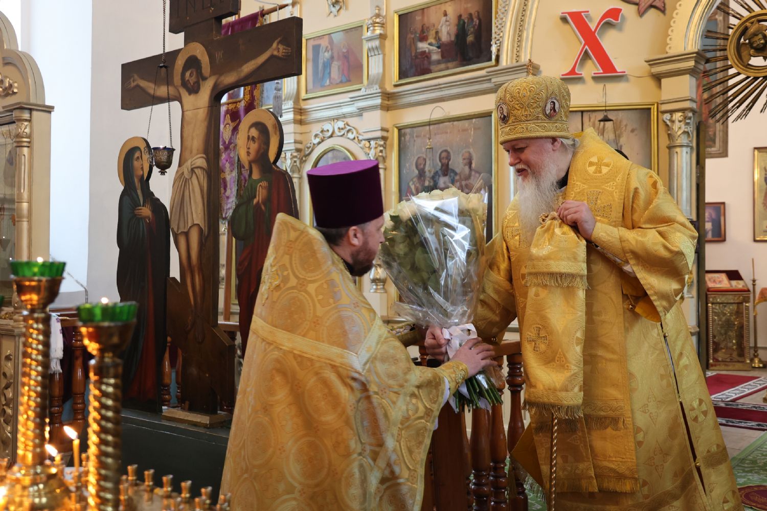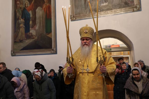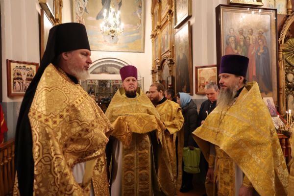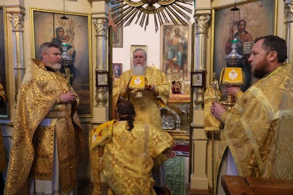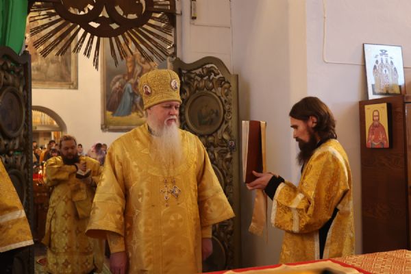 В завершение архипастырь тепло поздравил настоятеля храма протоиерея Евгения Бакутова с 35-летием начала его служения Богу и Его Святой Церкви – в этот день в 1990 году отец Евгений был рукоположен в диаконский сан. Владыка пожелал ему и далее многая лета своим образом жизни, служением, словом, приводить людей к познанию истинного Бога, даровать им утешение и пасхальную радость в сердце.