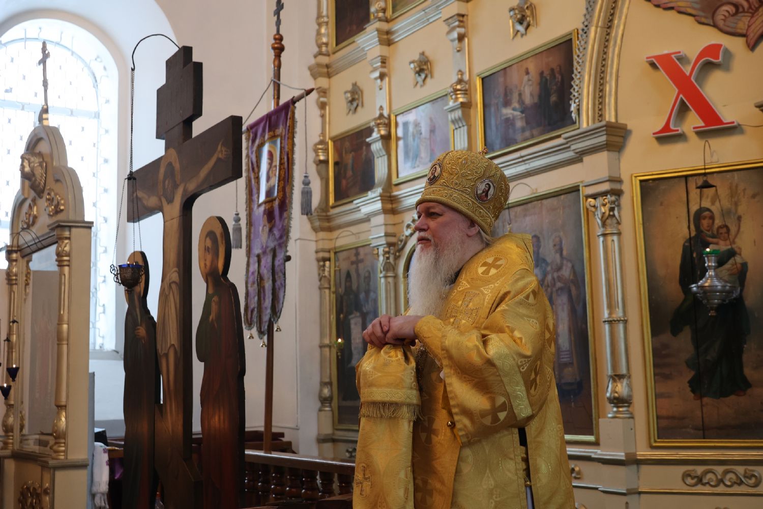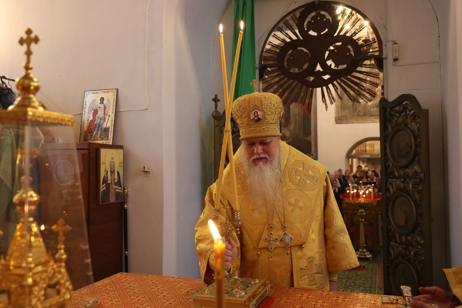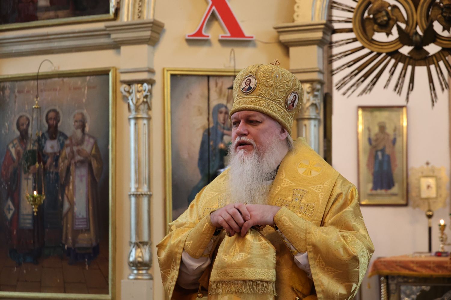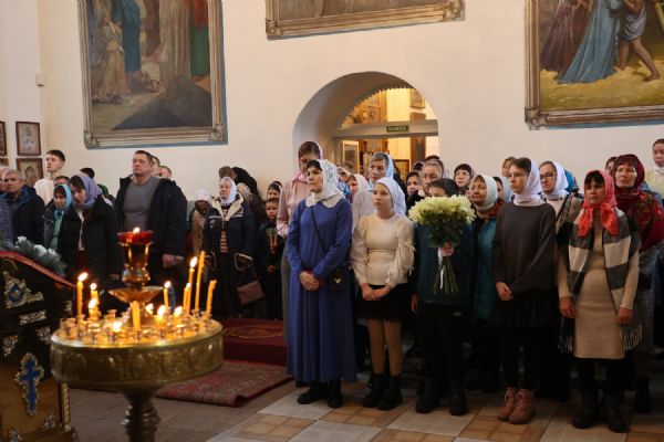 По окончании Литургии владыка Феофан обратился к верующим с проповедью, разъяснив, опираясь на учение святителя Феофана Затворника, духовный смысл прочитанного за богослужением евангельского зачала о том, как Господь исцелил десять прокаженных, а отблагодарить Его пришел только один из них.