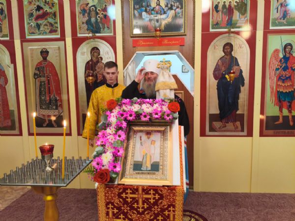 Перед отпустом Литургии пропели тропарь, величание и вознесли молитву святому Спиридону. Затем владыка обратился к собравшимся с проповедью, поздравив всех с праздником и рассказав об иконе святого Спиридона Тримифунтского. Он отметил, что «икона есть явление святого из вечности ко всем нам, являющее нам милость и поучающее своим житием каждого из нас. Мы видим, что в правой руке святитель держит святое Евангелие. Евангелие – это образ Самого Христа, Который через Слово обращается к каждому из нас и поучает жизни во Христе. Поэтому христианин и должен каждый день, хотя бы понемногу, читать Слово Божие.