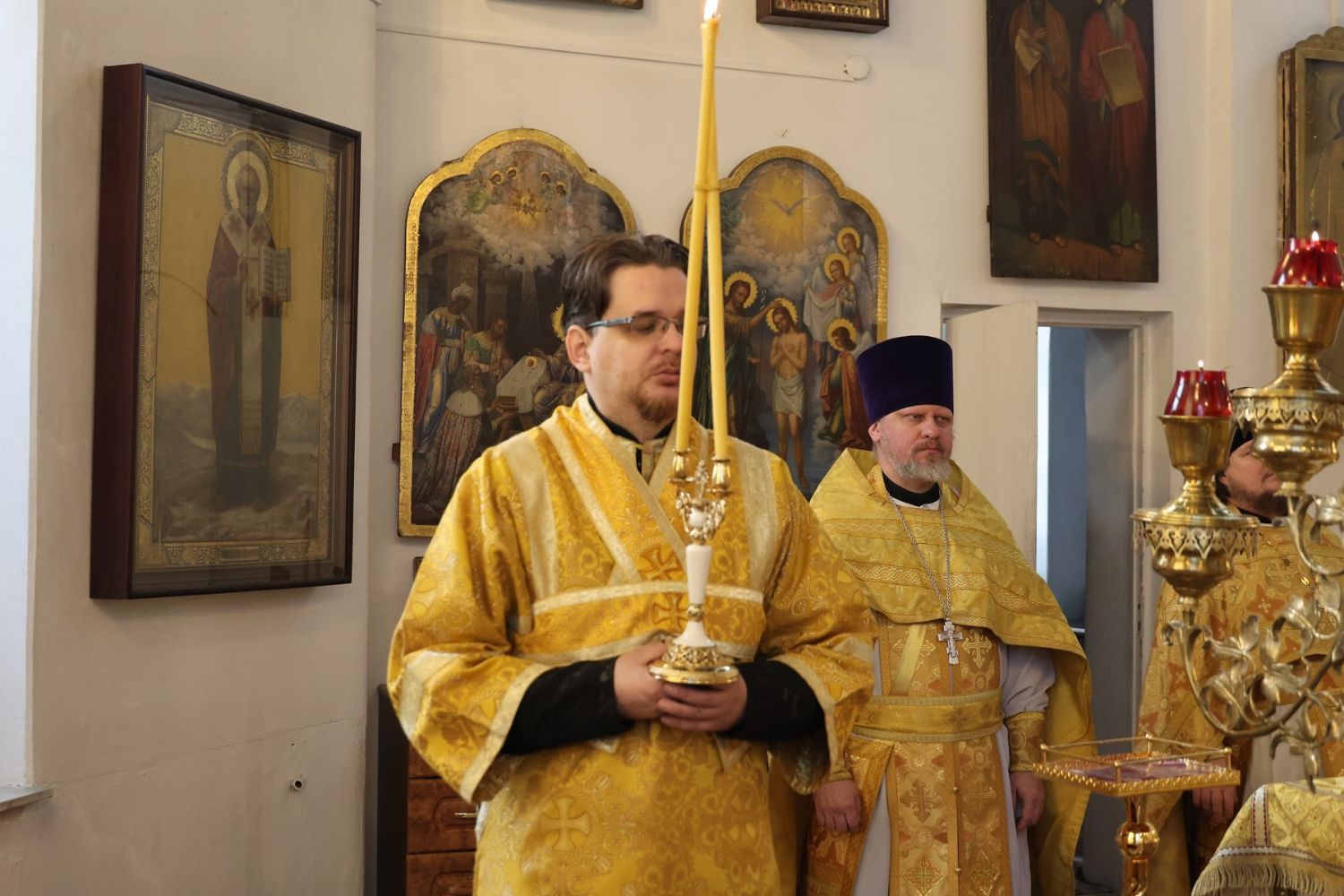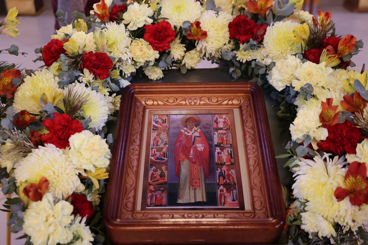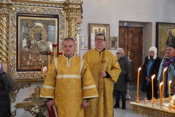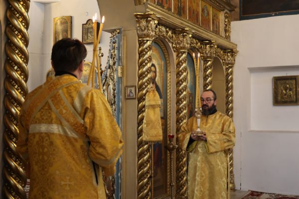 По окончании Литургии было совершено славление перед иконой святителя Спиридона Тримифунтского, затем епископ Феофан обратился к верующим с проповедью, рассказав о житии святителя Спиридона и о чудесах, совершавшихся по его святым молитвам.
