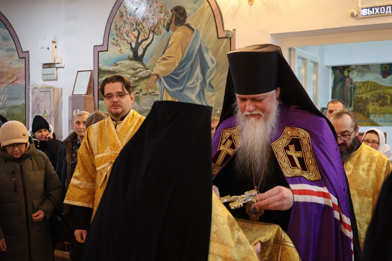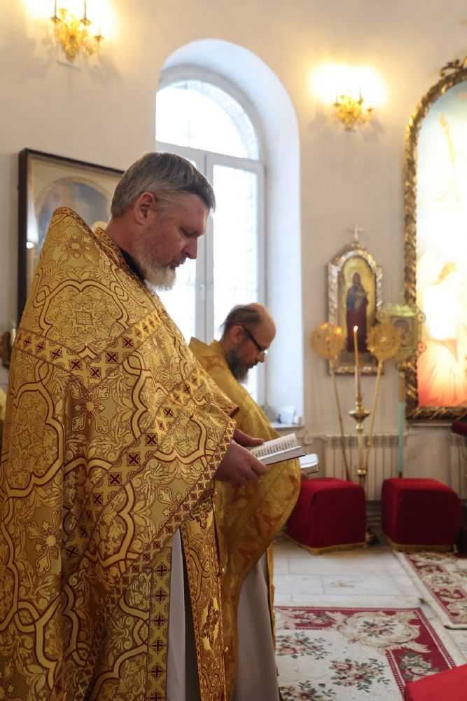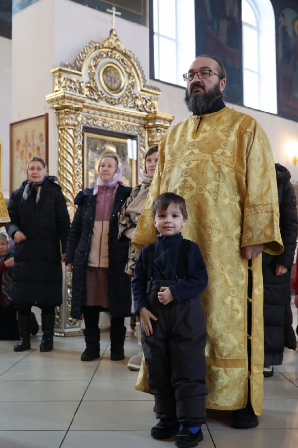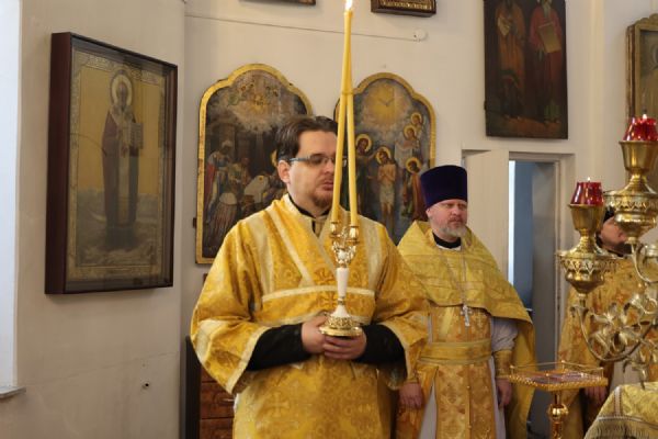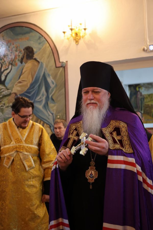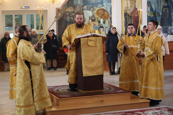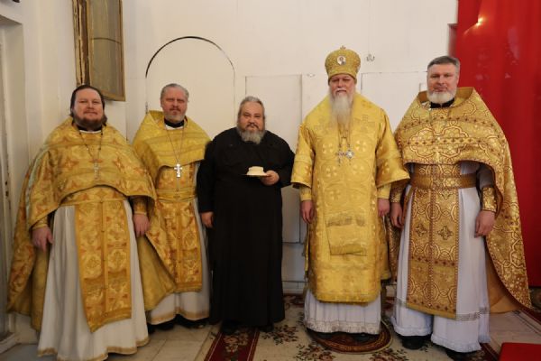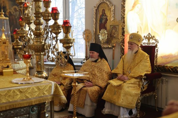 Его Преосвященству сослужили клирики собора иерей Николай Аникин, иеромонах Александр (Чеборов), иерей Сергий Першаков, иеромонах Питирим (Мосякин) и диакон Иоанн Захаров. Песнопения исполнял народный хор под управлением регента Евгения Чигарова.