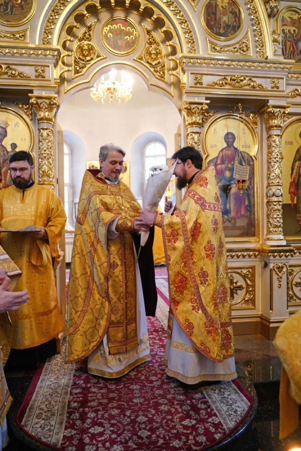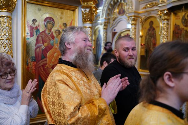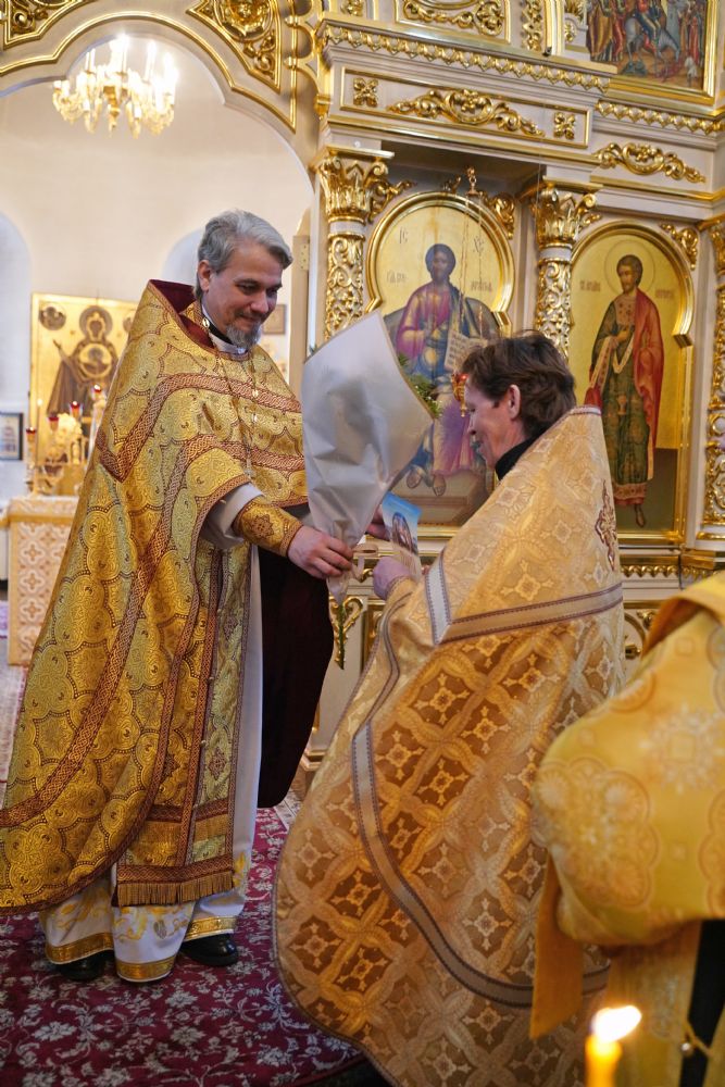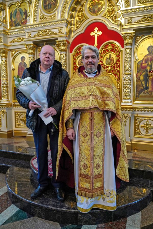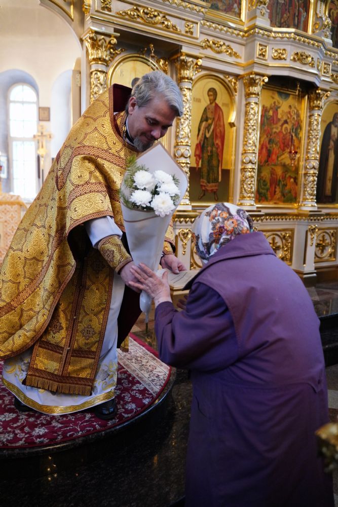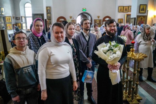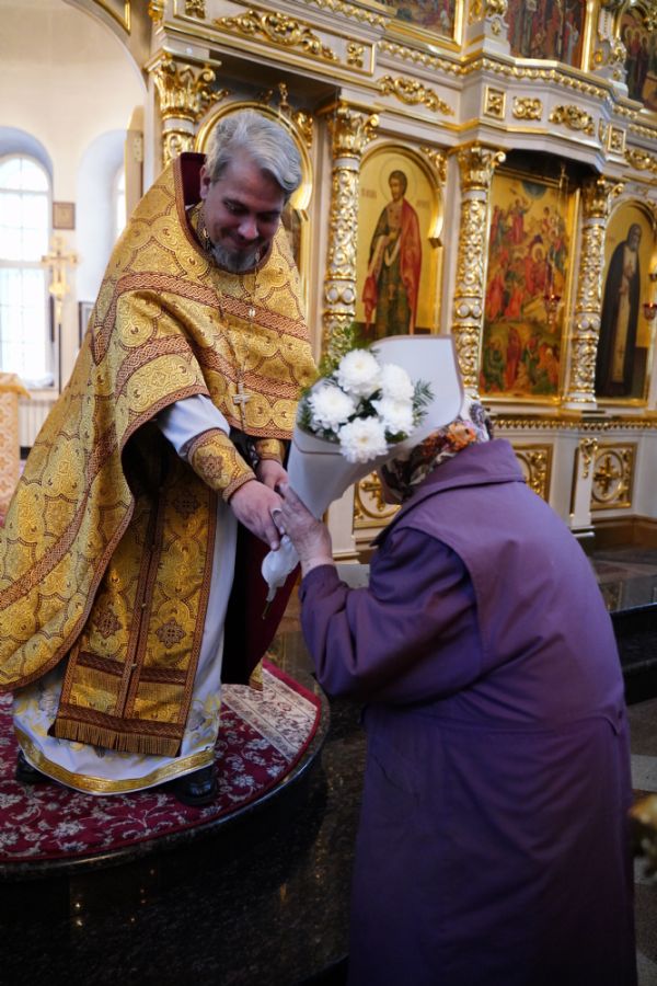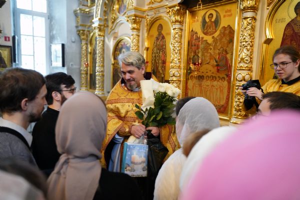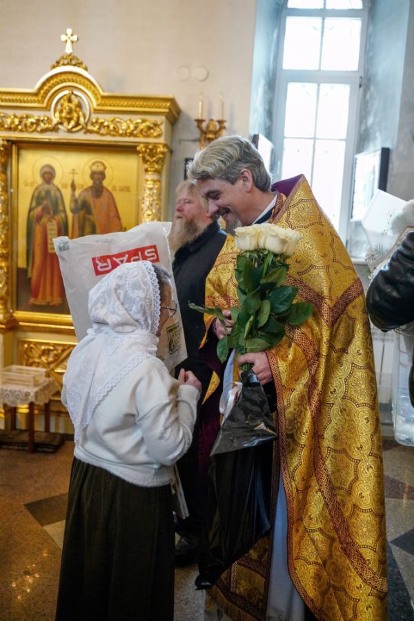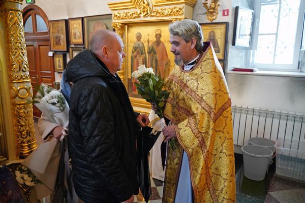 По окончании Литургии с 10-летием храма его настоятеля тепло поздравили собратья по алтарю, прихожане, православные добровольцы.