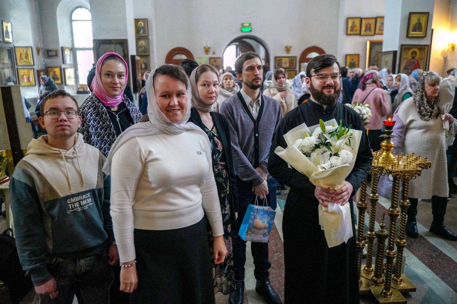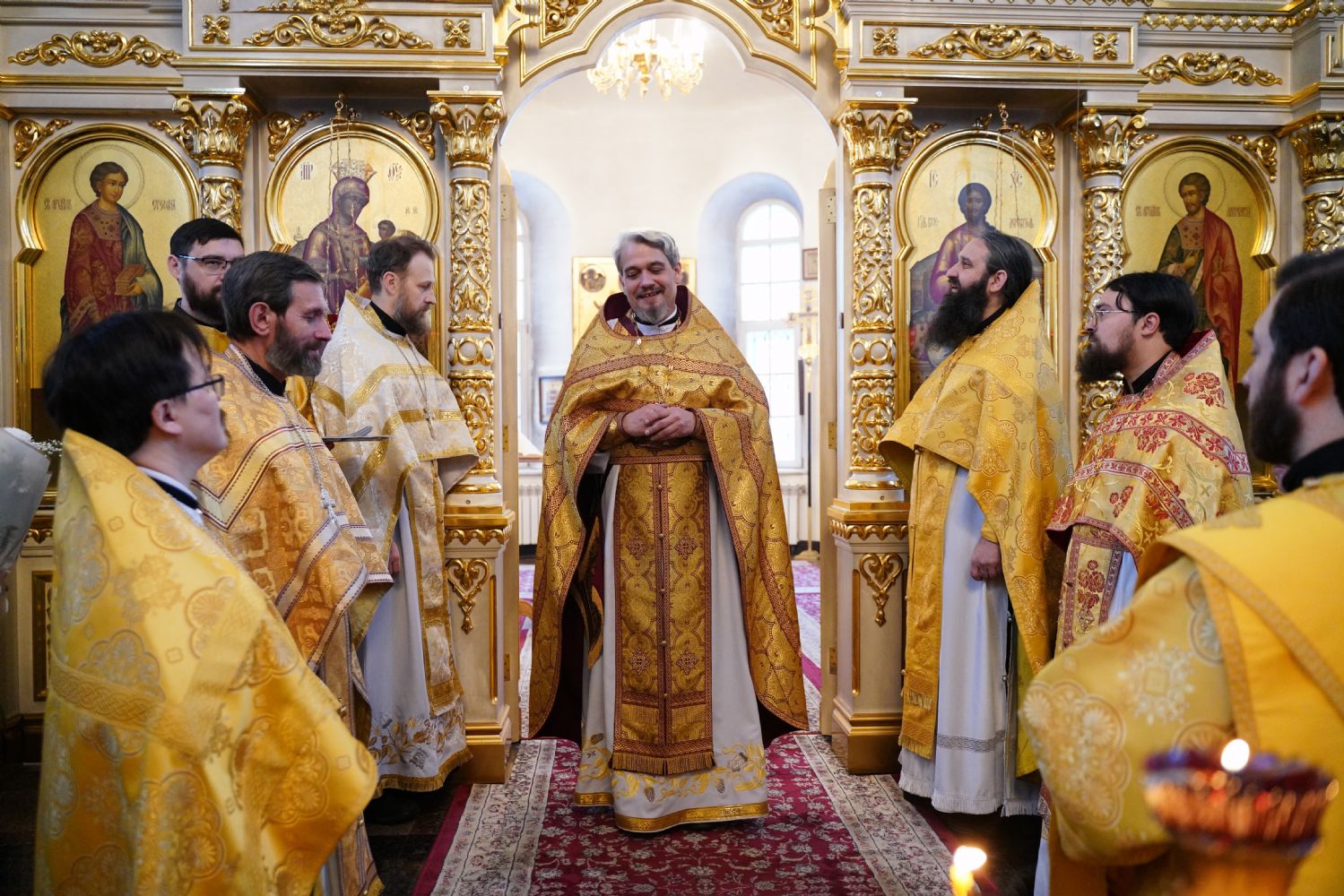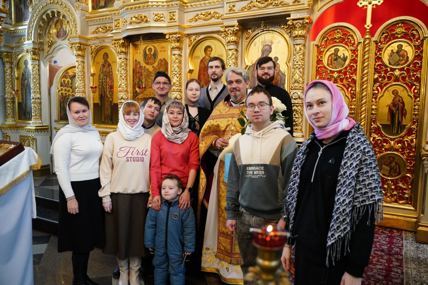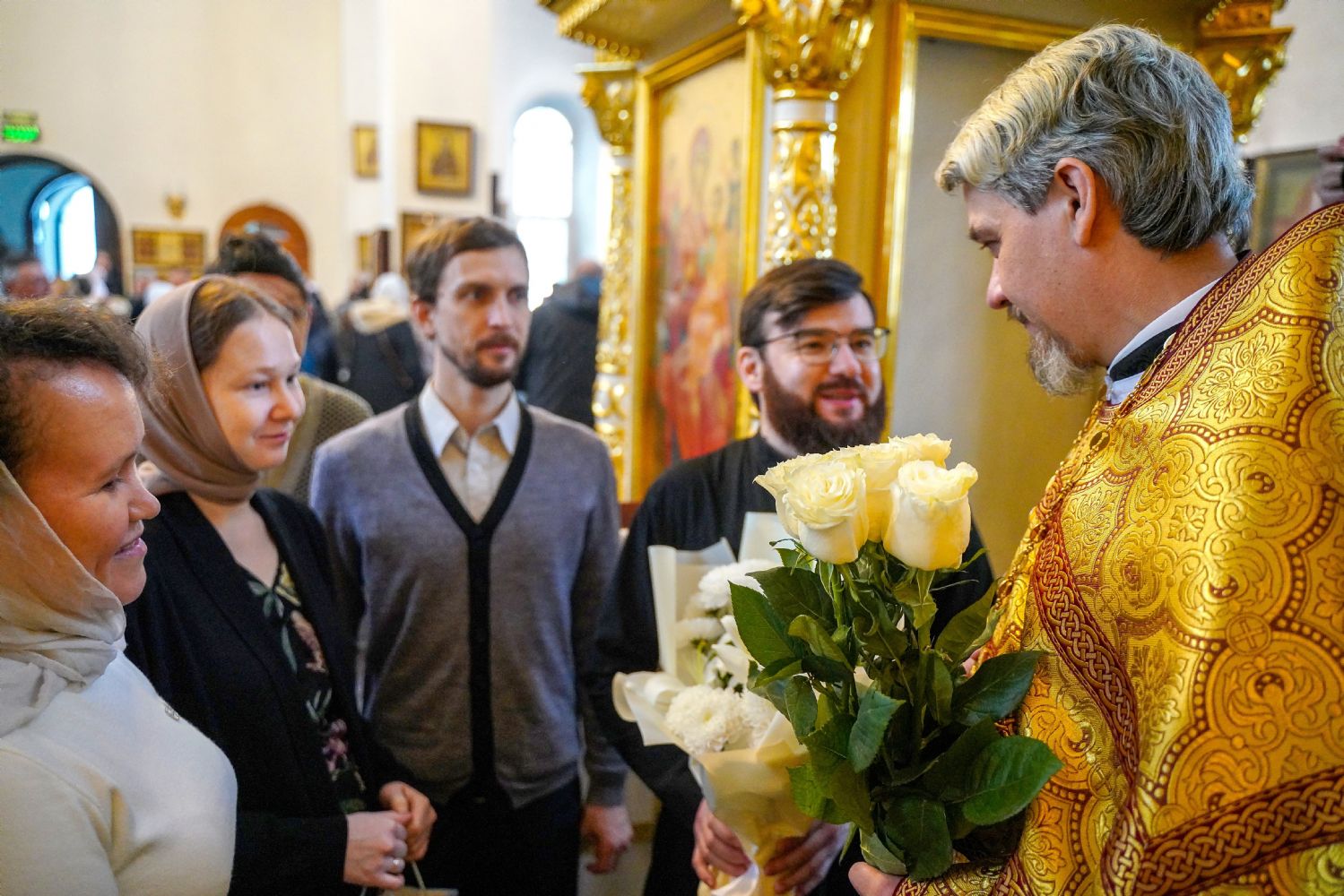 По окончании Литургии с 10-летием храма его настоятеля тепло поздравили собратья по алтарю, прихожане, православные добровольцы.