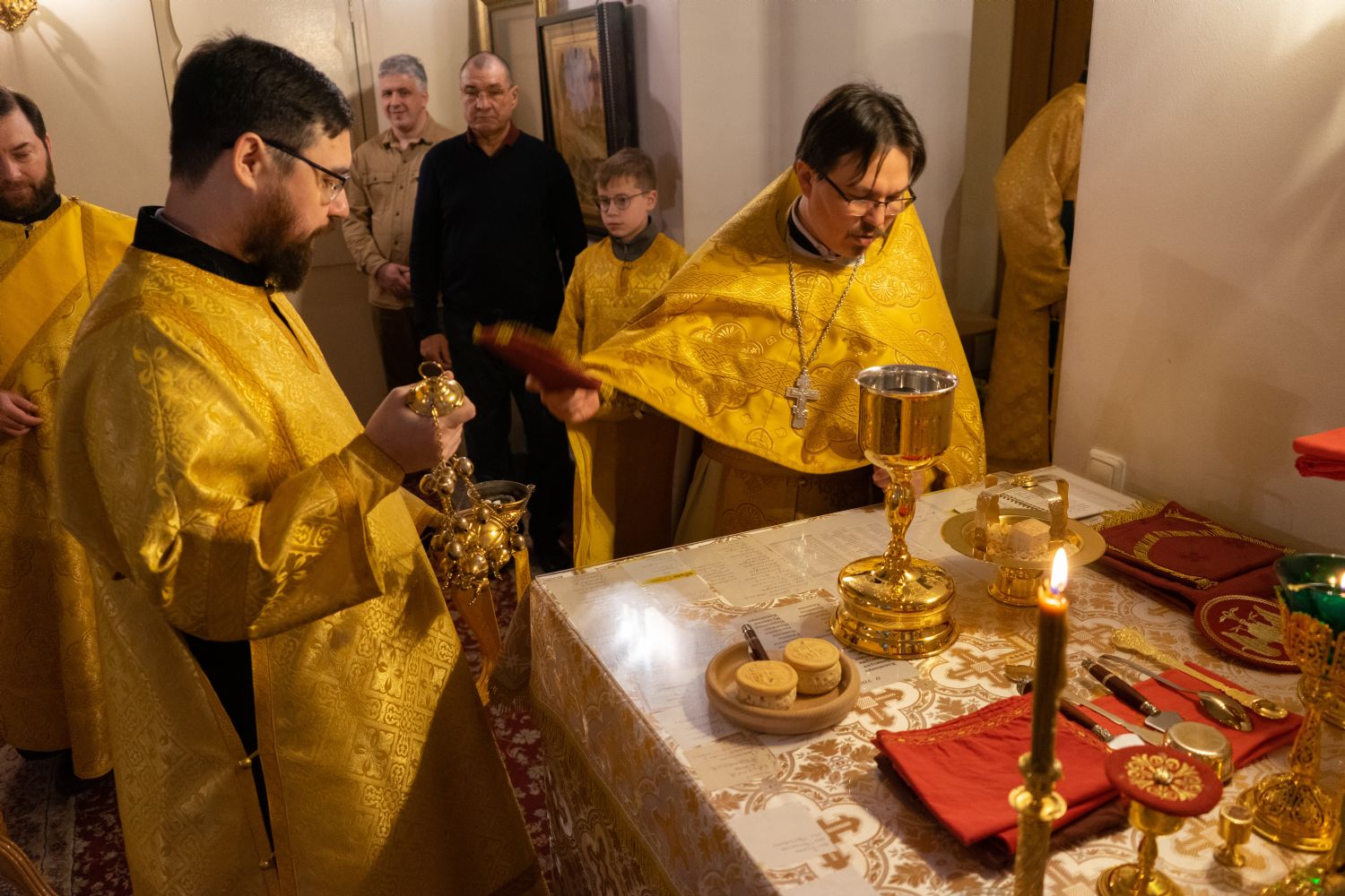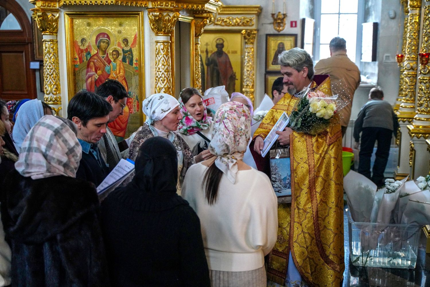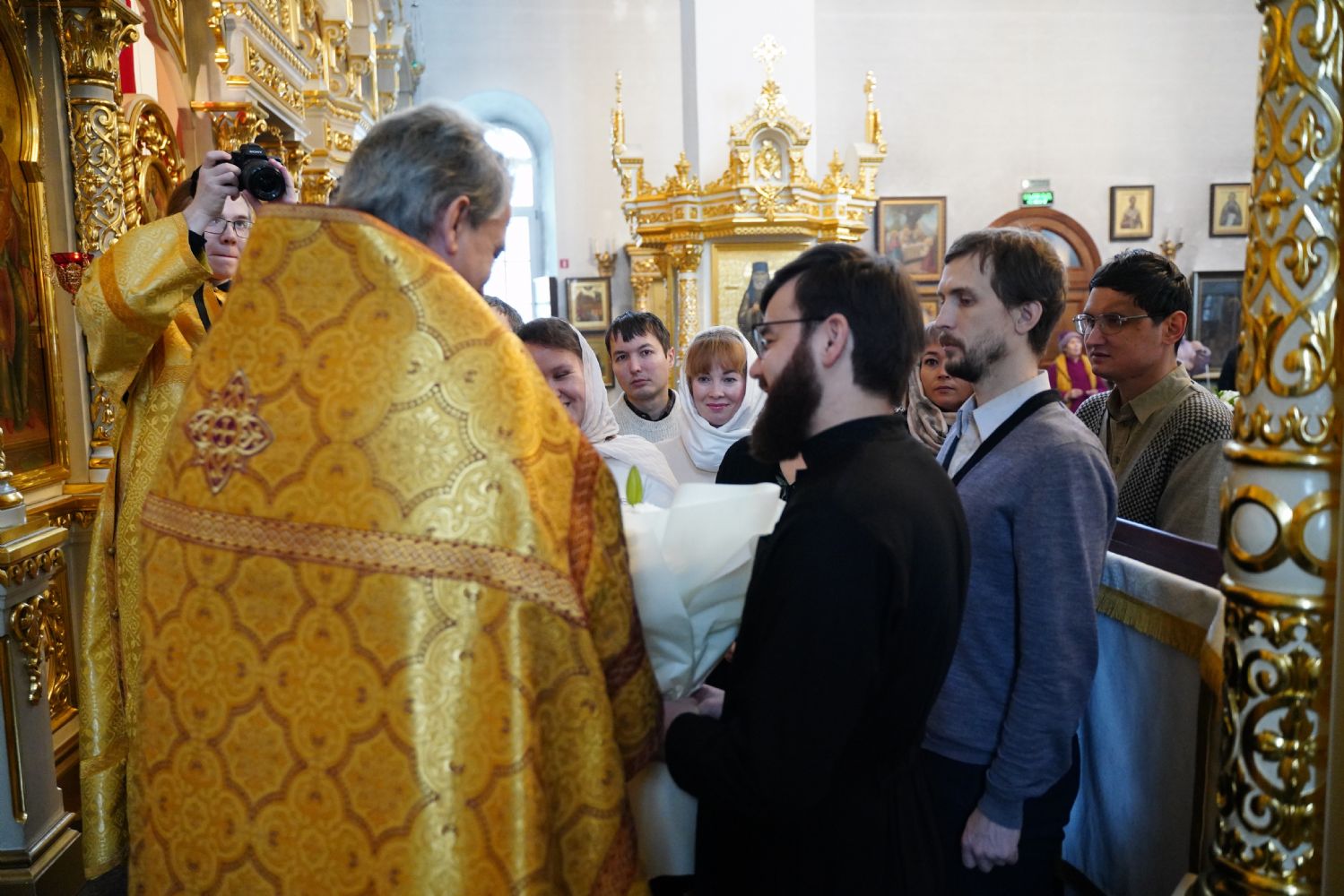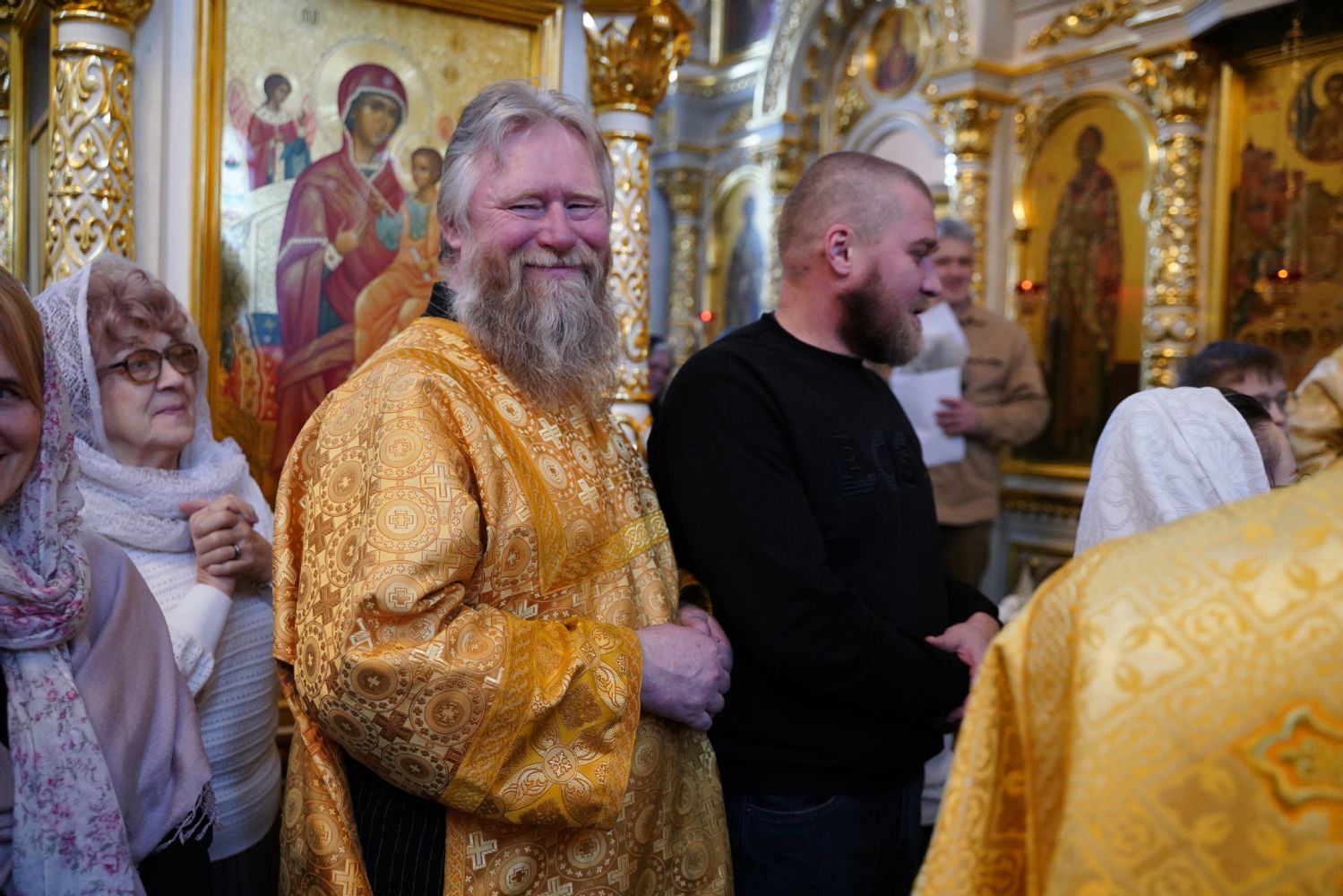 По окончании Литургии с 10-летием храма его настоятеля тепло поздравили собратья по алтарю, прихожане, православные добровольцы.