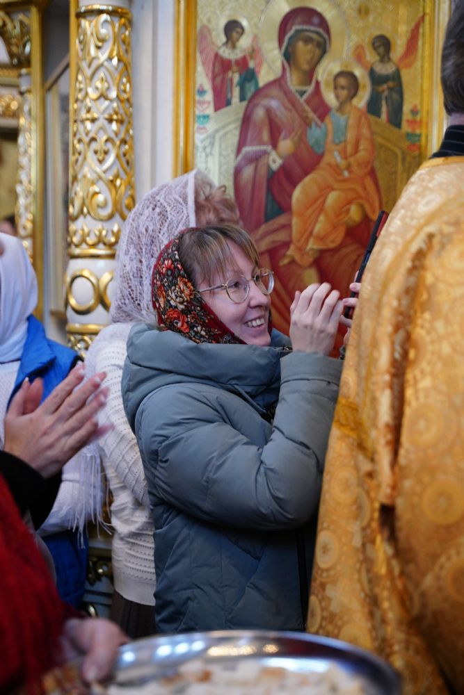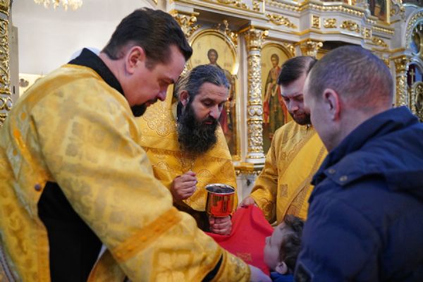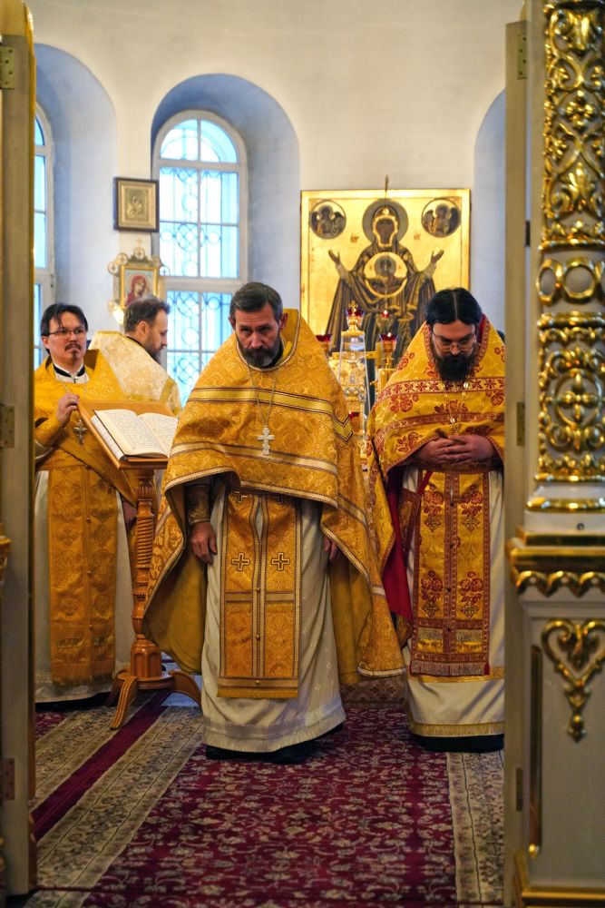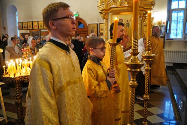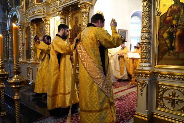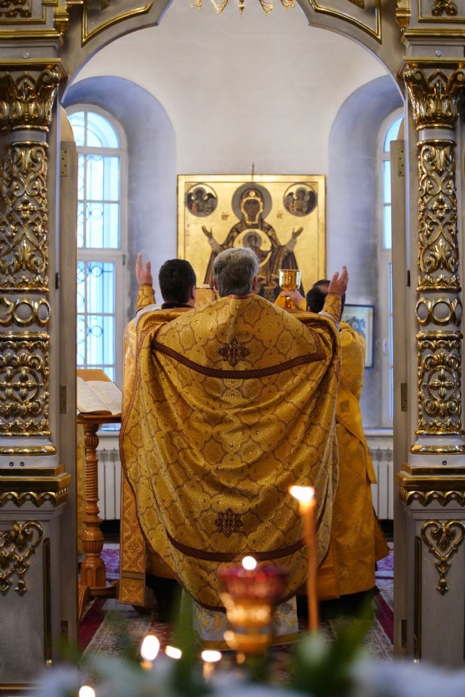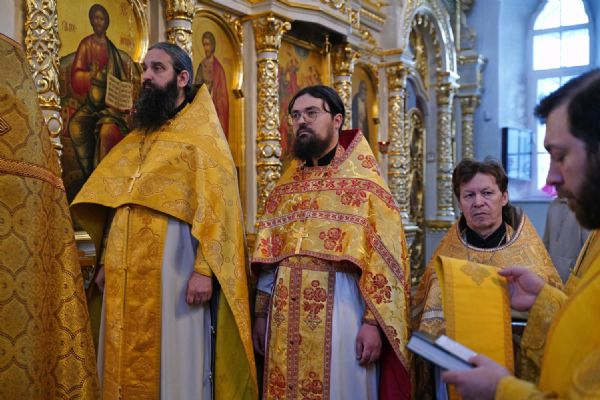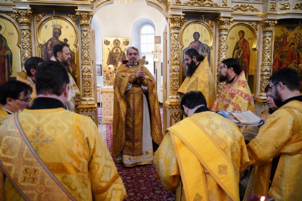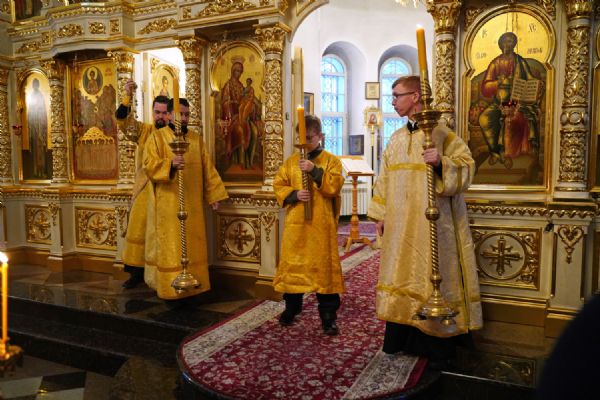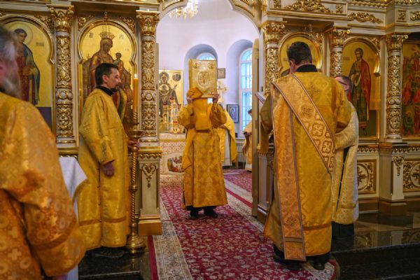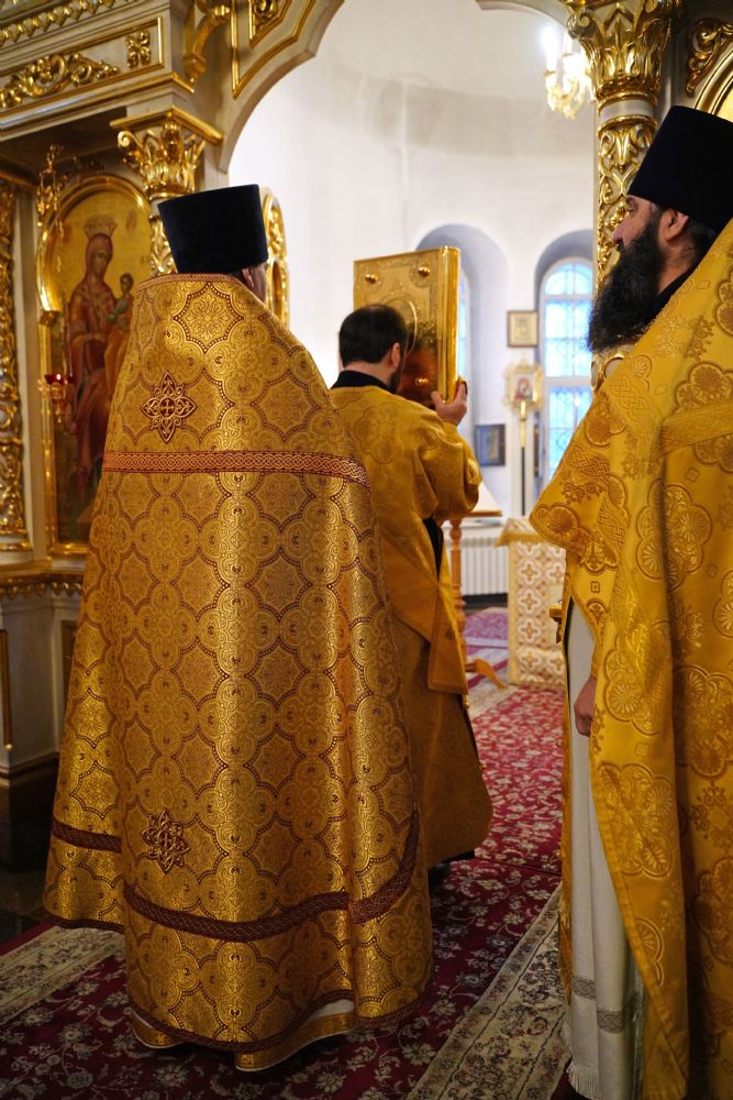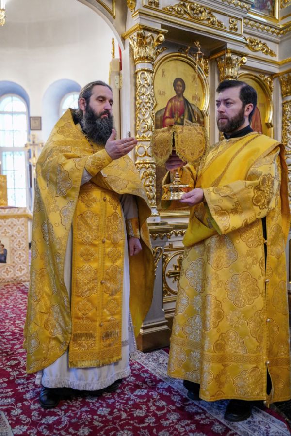 В праздничный день в храме была совершена соборная Божественная литургия, возглавил которую настоятель храма иерей Александр Лоскутов. Ему сослужили клирики храма иерей Никита Смирнов, иерей Евгений Симаков и диакон Даниил Зорин, а также клирик храма Державной иконы Божией Матери п. Медведево иерей Алексий Добиков, настоятель Петропавловского храма с. Верх-Ушнур иерей Алексий Тарасов, настоятель Богоявленского храма с. Великополье иерей Олег Михайлов, клирик храма Всех святых в земле Российской просиявших п. Советский иерей Димитрий Кудряшов, клирик Воскресенского собора диакон Алексий Кузнецов и клирик Благовещенского кафедрального собора диакон Артемий Бобоч. Песнопения исполнял хор храма под управлением регента Натальи Поповой.