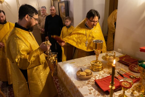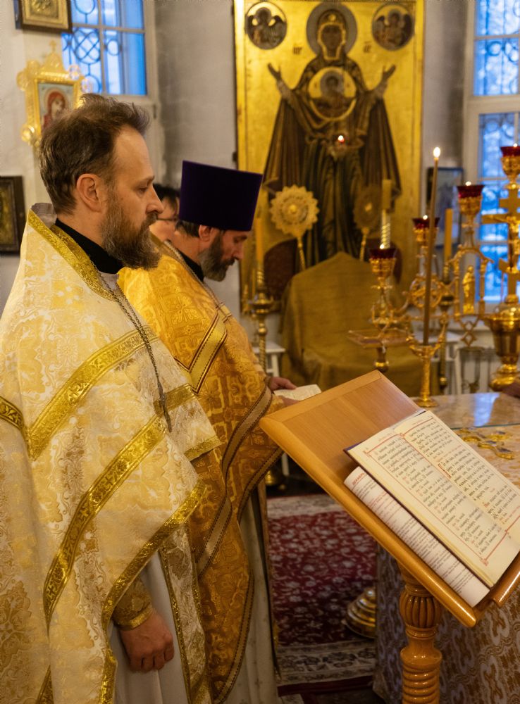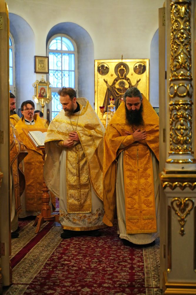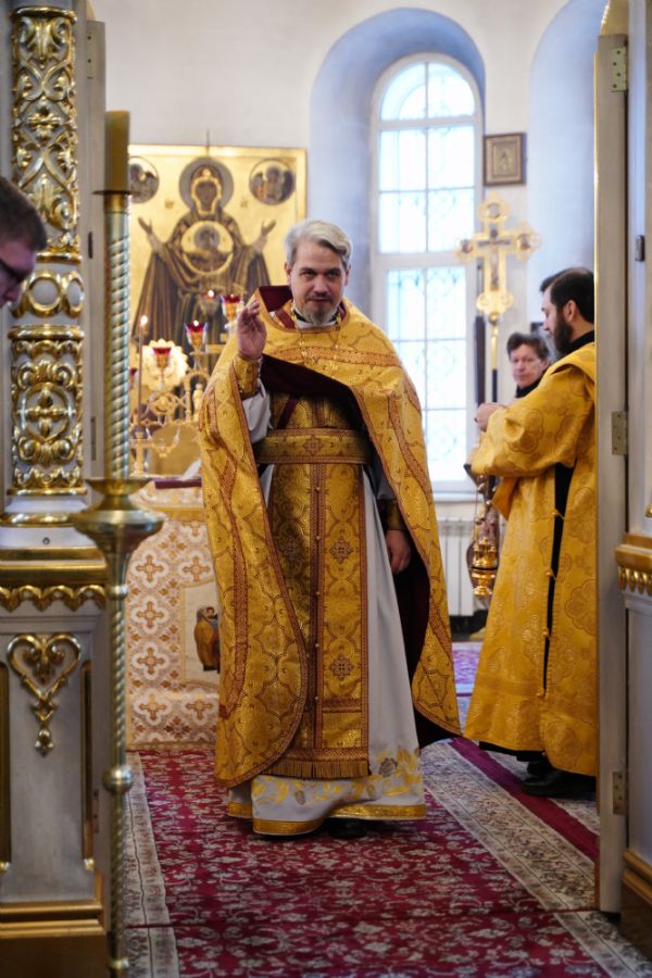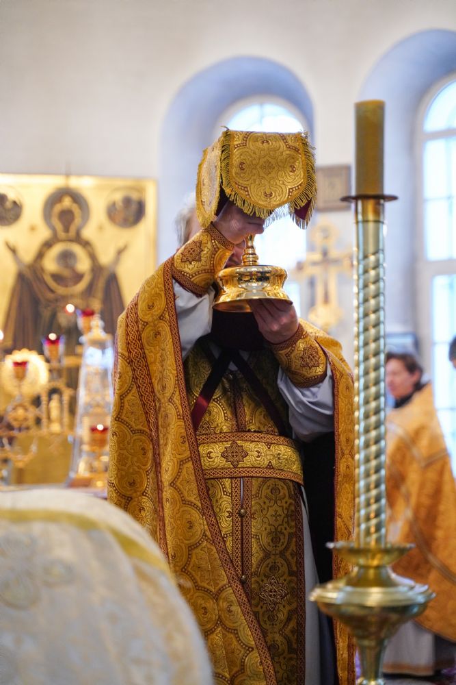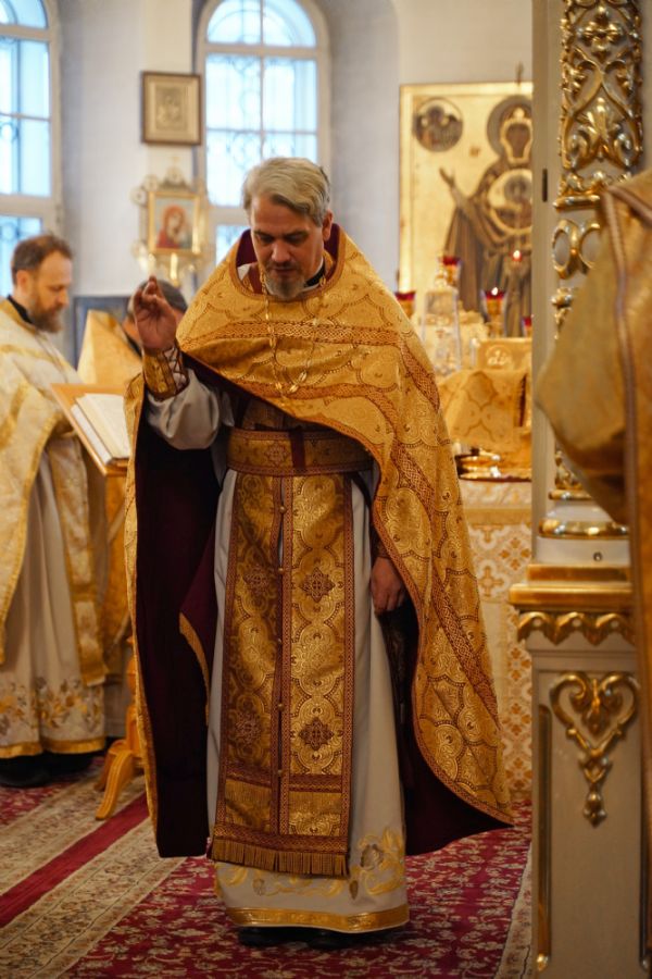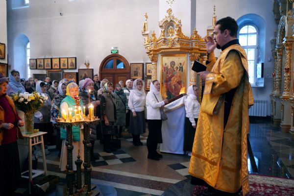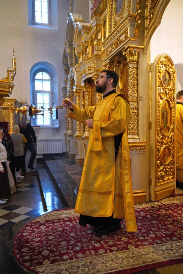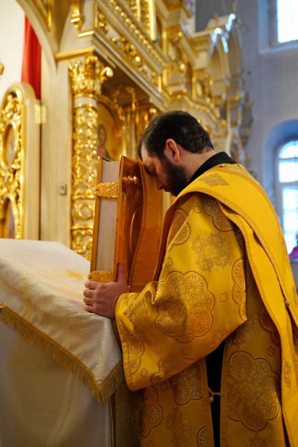 В праздничный день в храме была совершена соборная Божественная литургия, возглавил которую настоятель храма иерей Александр Лоскутов. Ему сослужили клирики храма иерей Никита Смирнов, иерей Евгений Симаков и диакон Даниил Зорин, а также клирик храма Державной иконы Божией Матери п. Медведево иерей Алексий Добиков, настоятель Петропавловского храма с. Верх-Ушнур иерей Алексий Тарасов, настоятель Богоявленского храма с. Великополье иерей Олег Михайлов, клирик храма Всех святых в земле Российской просиявших п. Советский иерей Димитрий Кудряшов, клирик Воскресенского собора диакон Алексий Кузнецов и клирик Благовещенского кафедрального собора диакон Артемий Бобоч. Песнопения исполнял хор храма под управлением регента Натальи Поповой.