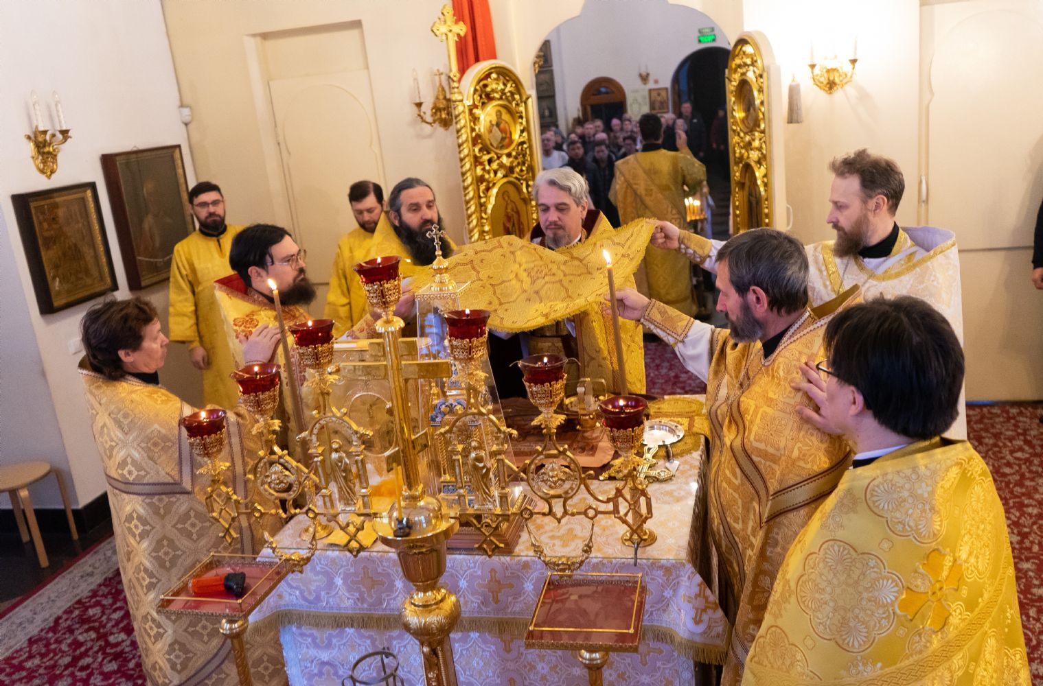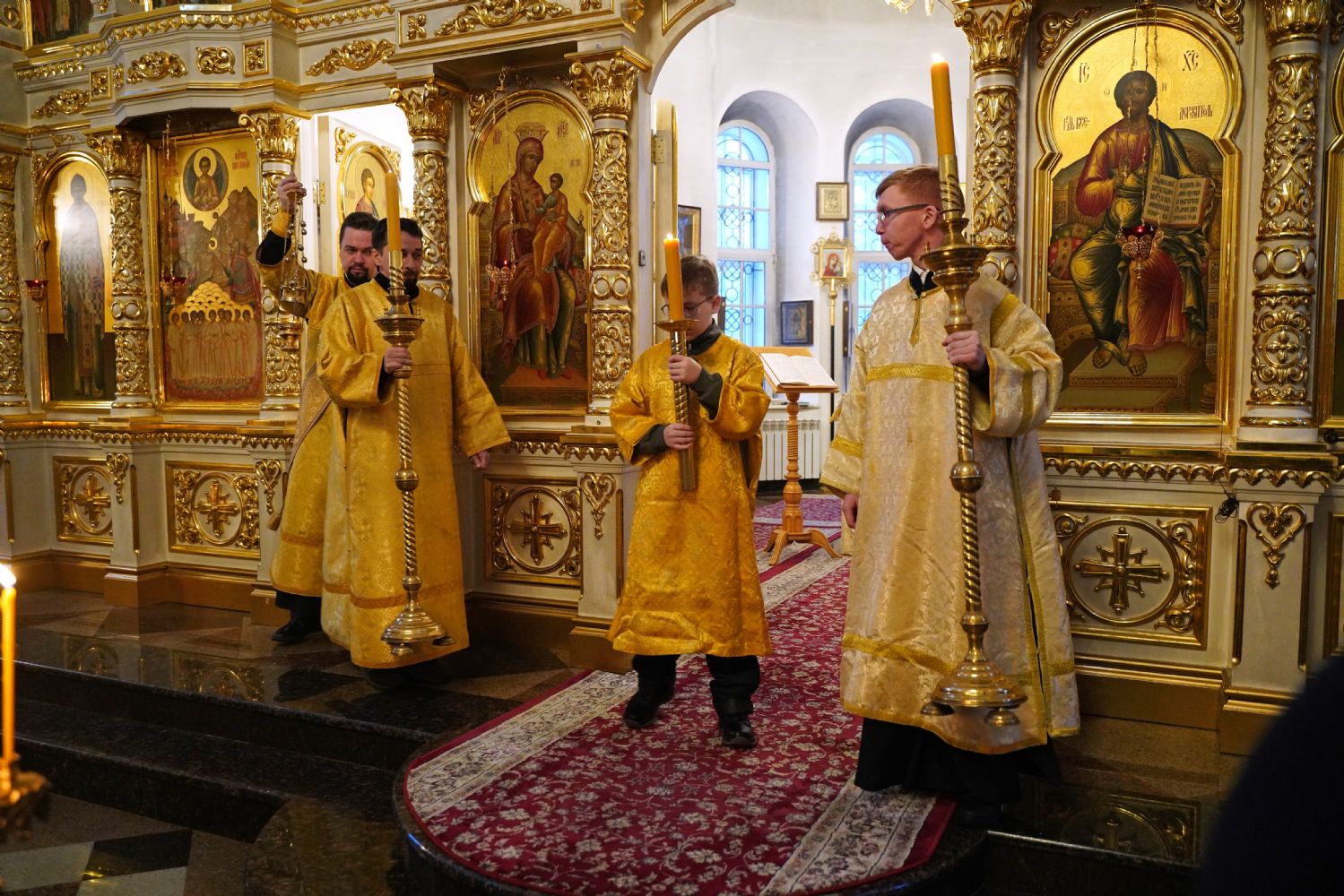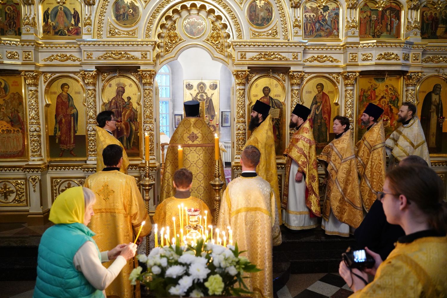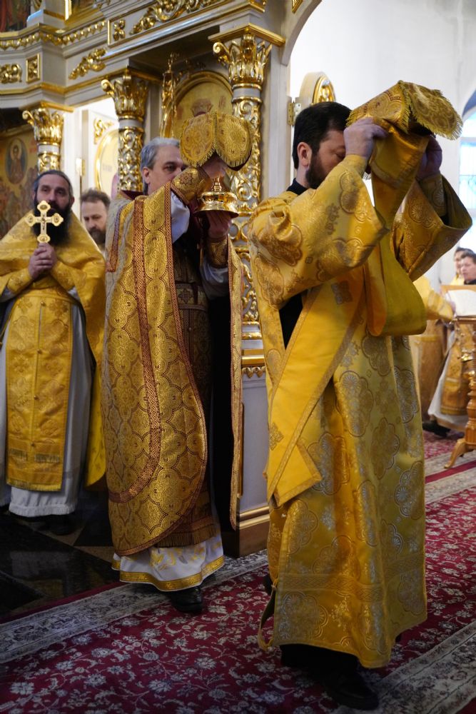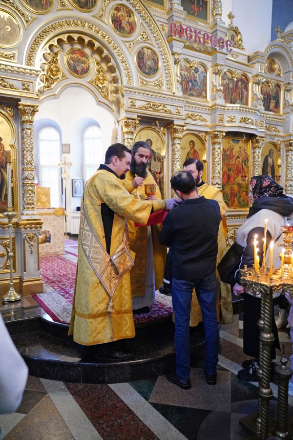 В праздничный день в храме была совершена соборная Божественная литургия, возглавил которую настоятель храма иерей Александр Лоскутов. Ему сослужили клирики храма иерей Никита Смирнов, иерей Евгений Симаков и диакон Даниил Зорин, а также клирик храма Державной иконы Божией Матери п. Медведево иерей Алексий Добиков, настоятель Петропавловского храма с. Верх-Ушнур иерей Алексий Тарасов, настоятель Богоявленского храма с. Великополье иерей Олег Михайлов, клирик храма Всех святых в земле Российской просиявших п. Советский иерей Димитрий Кудряшов, клирик Воскресенского собора диакон Алексий Кузнецов и клирик Благовещенского кафедрального собора диакон Артемий Бобоч. Песнопения исполнял хор храма под управлением регента Натальи Поповой.