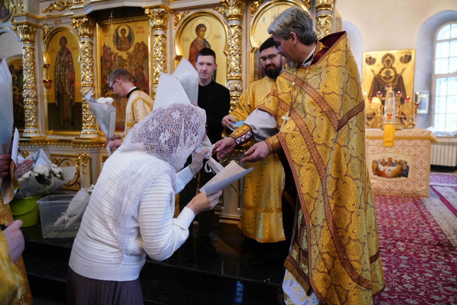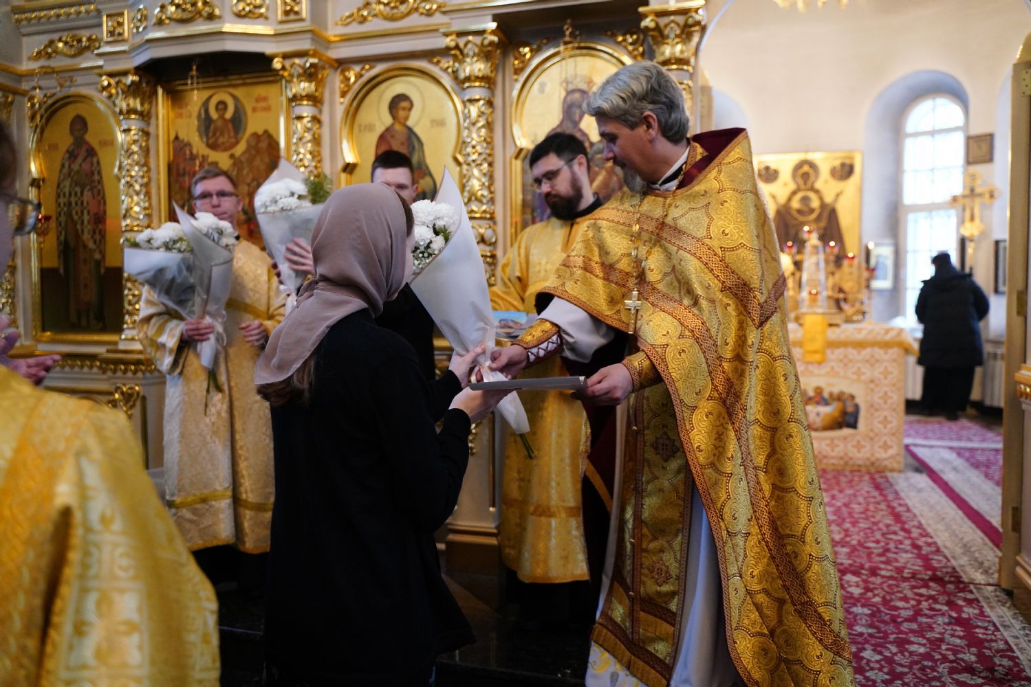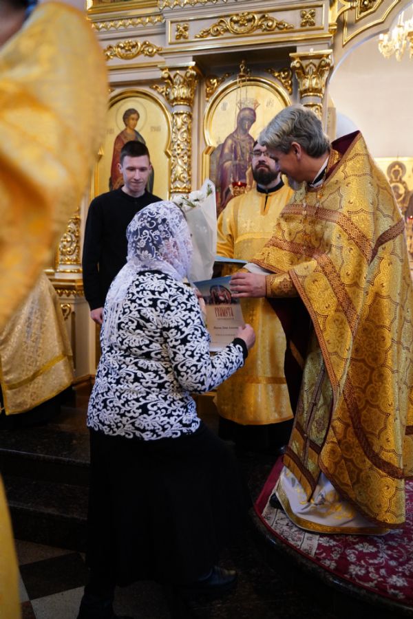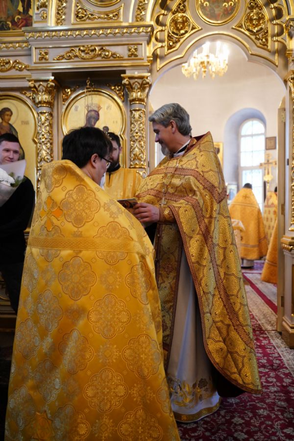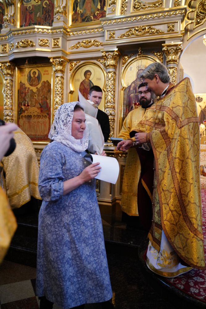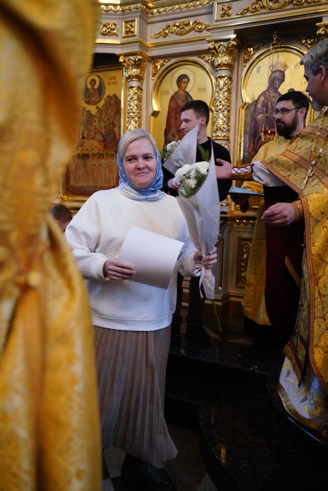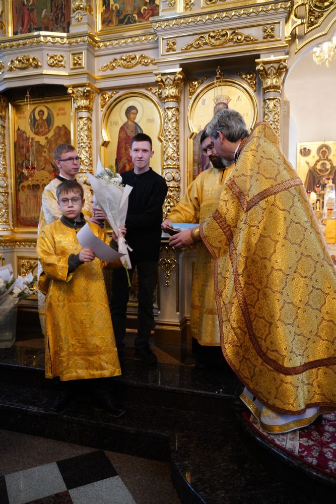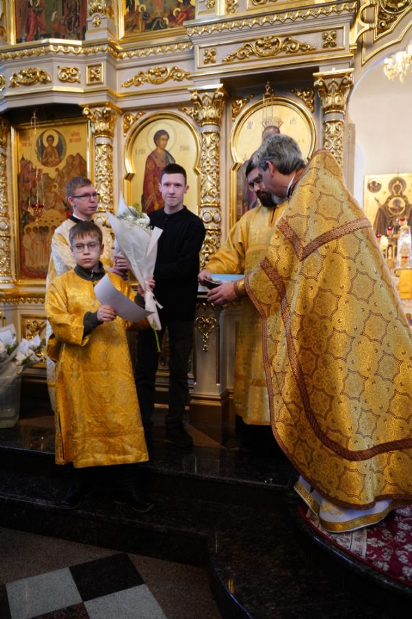 Отец Александр поблагодарил всех за радость совместной молитвы и вручил грамоты и благодарственные письма священно- и церковнослужителям, благотворителям и наиболее активным прихожанам храма.