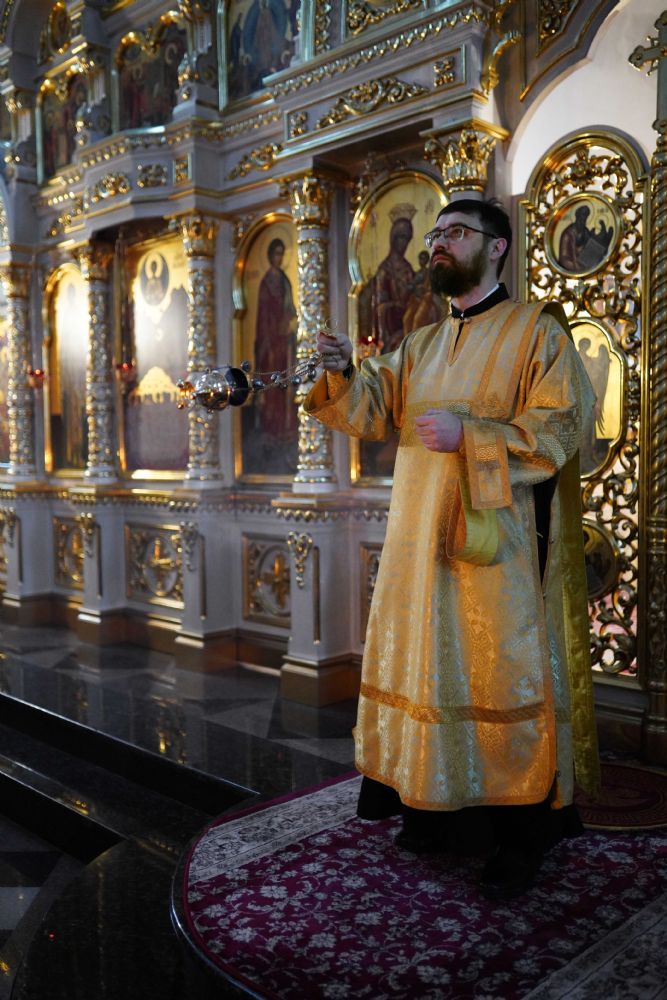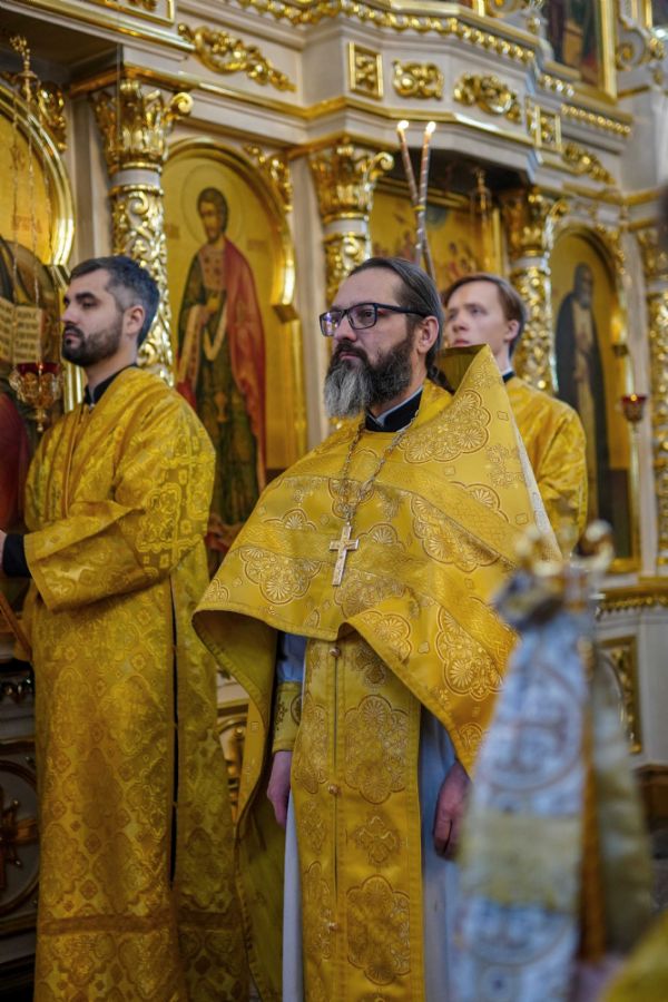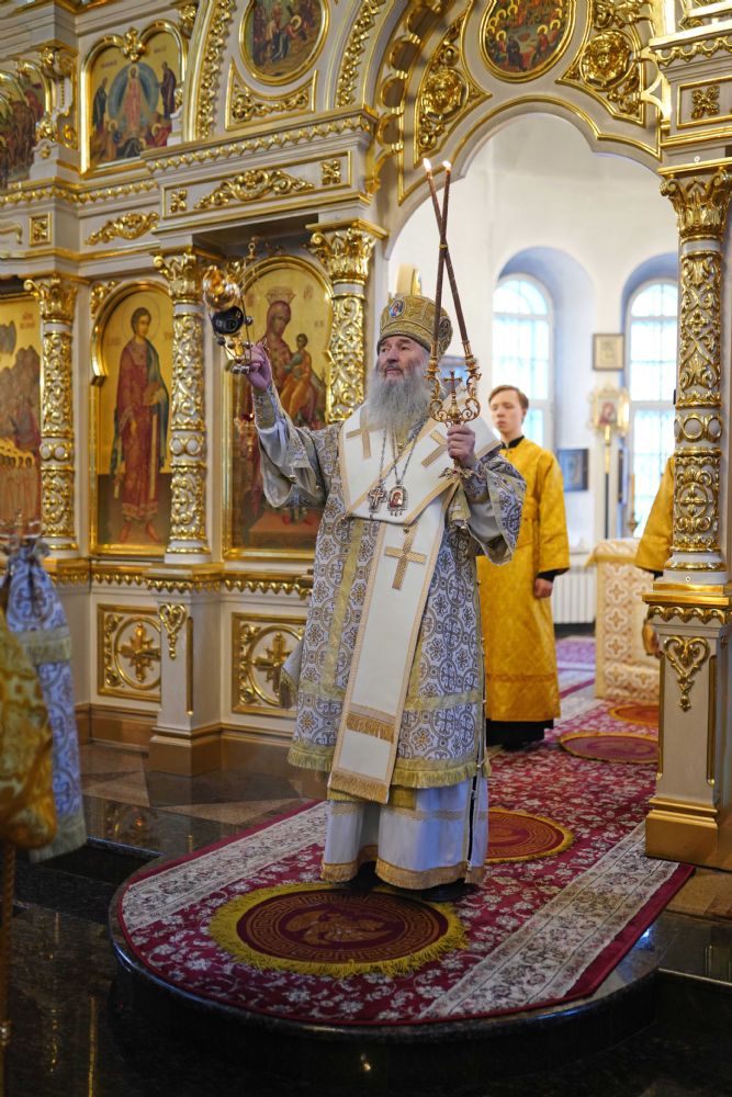 Архипастырю сослужили секретарь Йошкар-Олинского епархиального управления иерей Димитрий Дьяков, настоятель храма иерей Александр Лоскутов, клирик храма диакон Даниил Зорин, а также протодиакон Михаил Козловский. Песнопения исполнял хор храма под управлением Натальи Поповой.